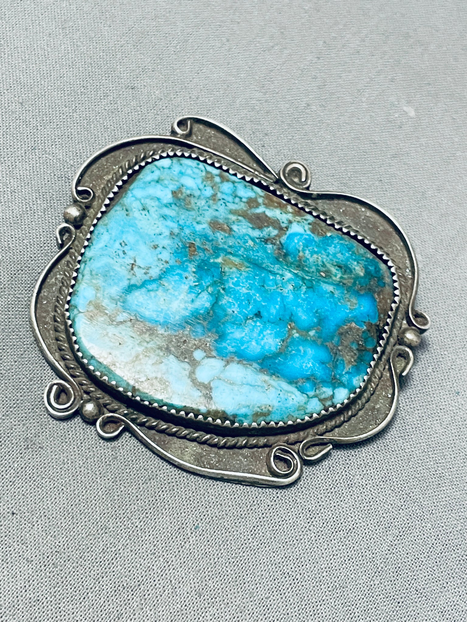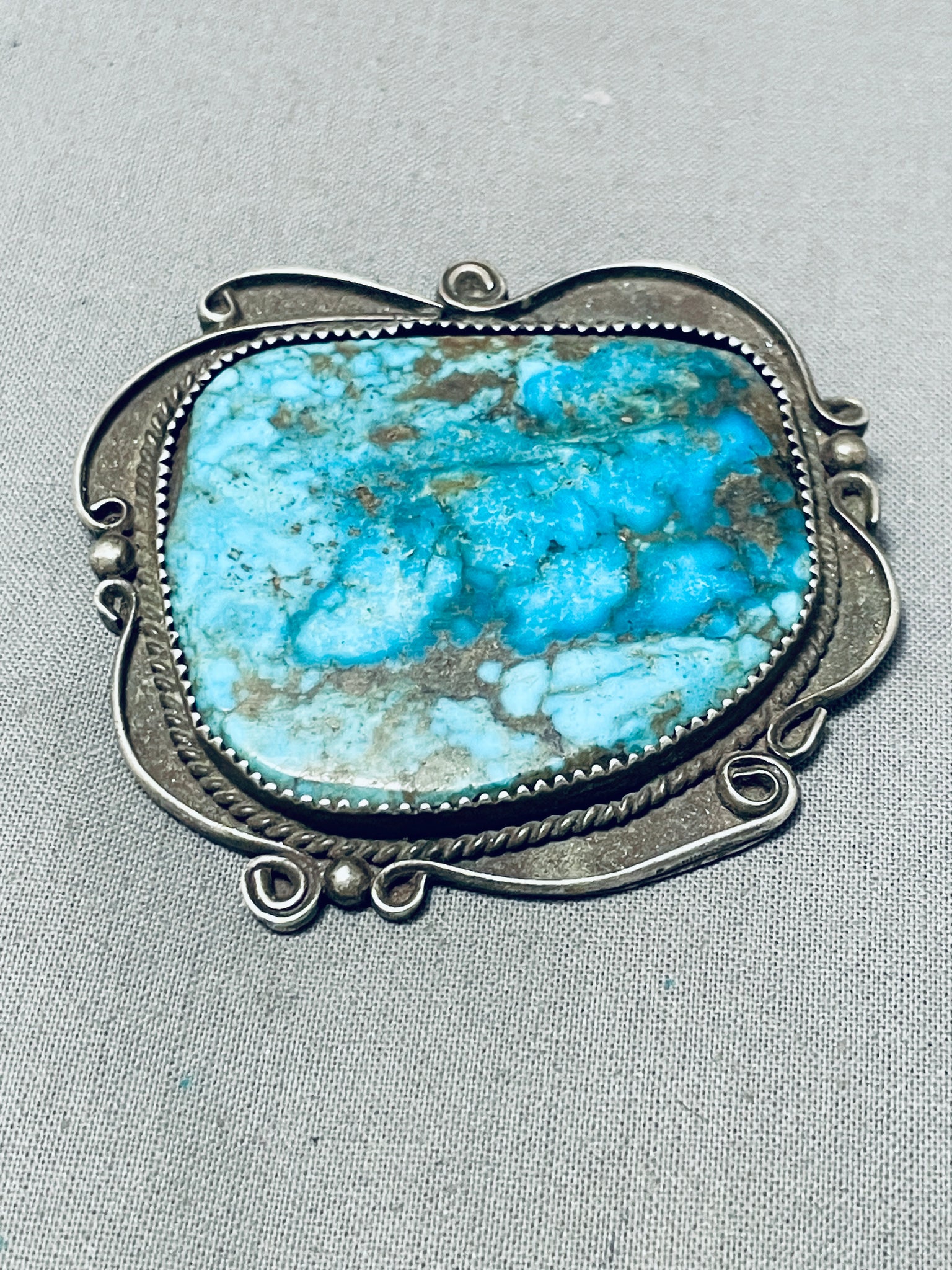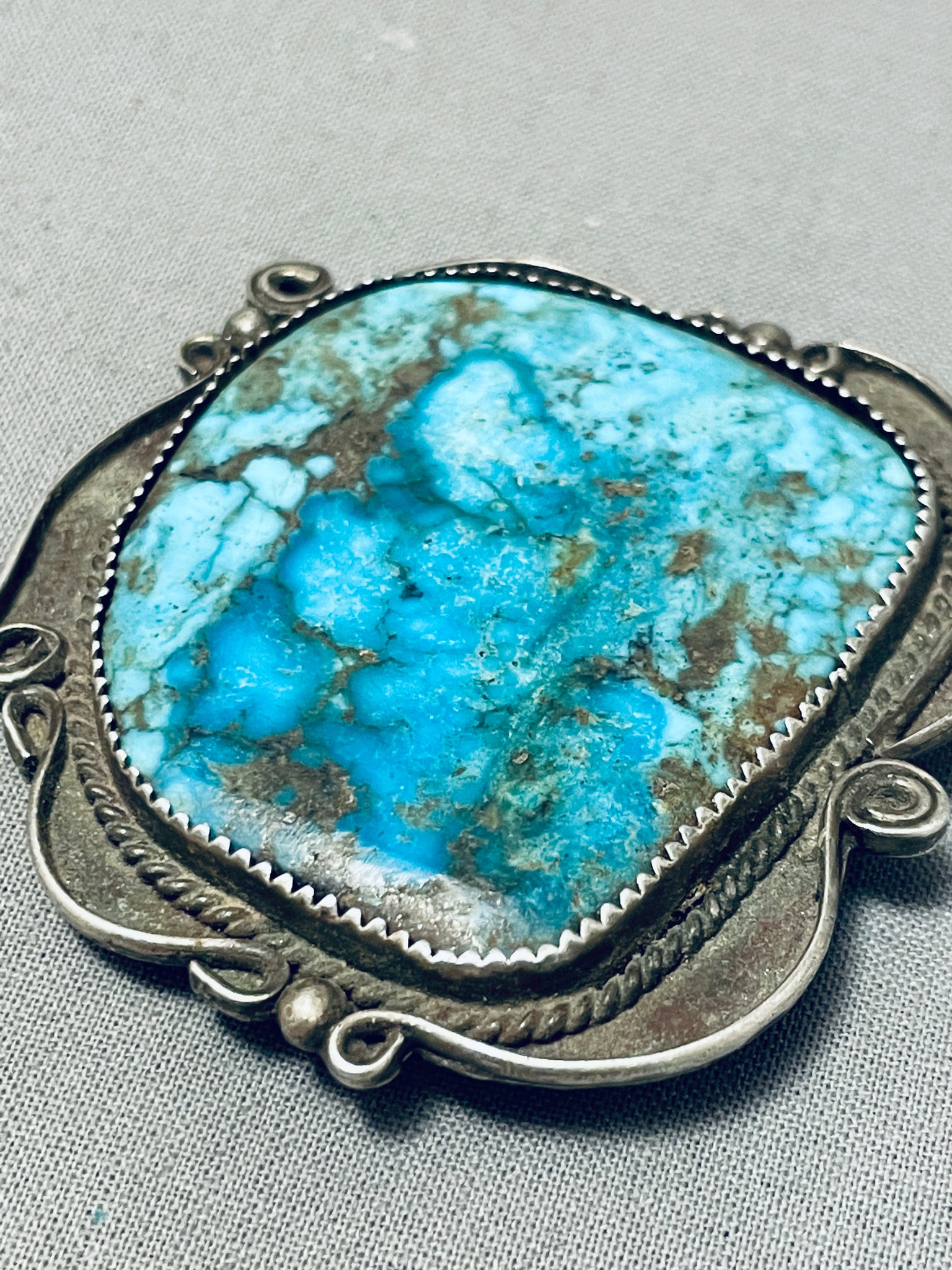 Colossal Vintage Native American Navajo Turquoise Mountain Sterling Silver Pin