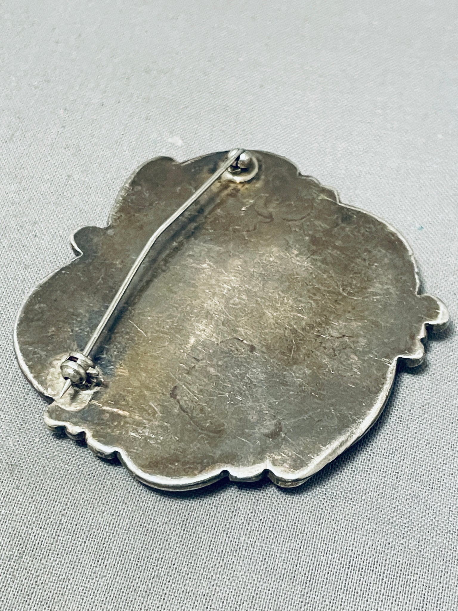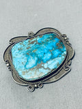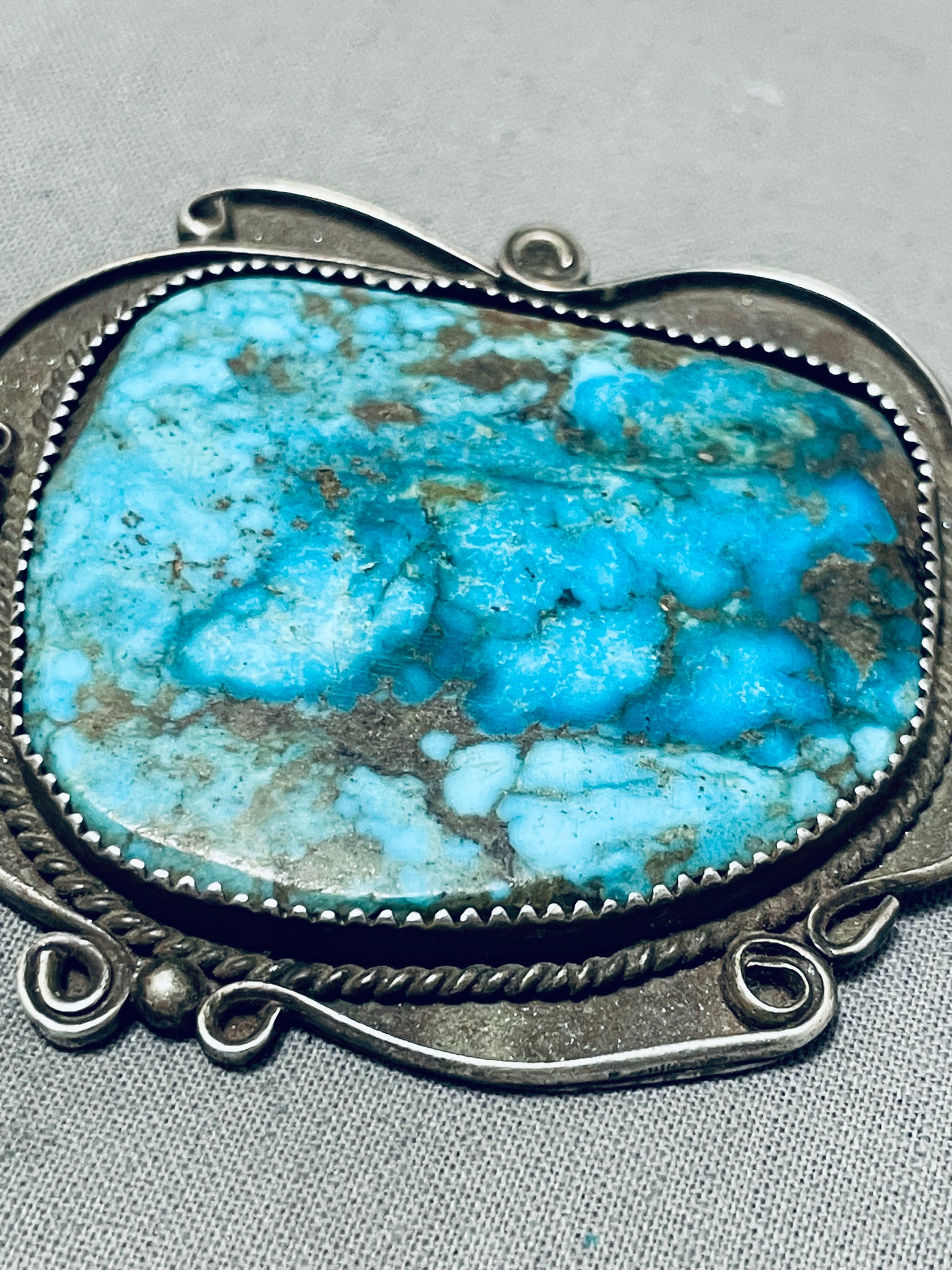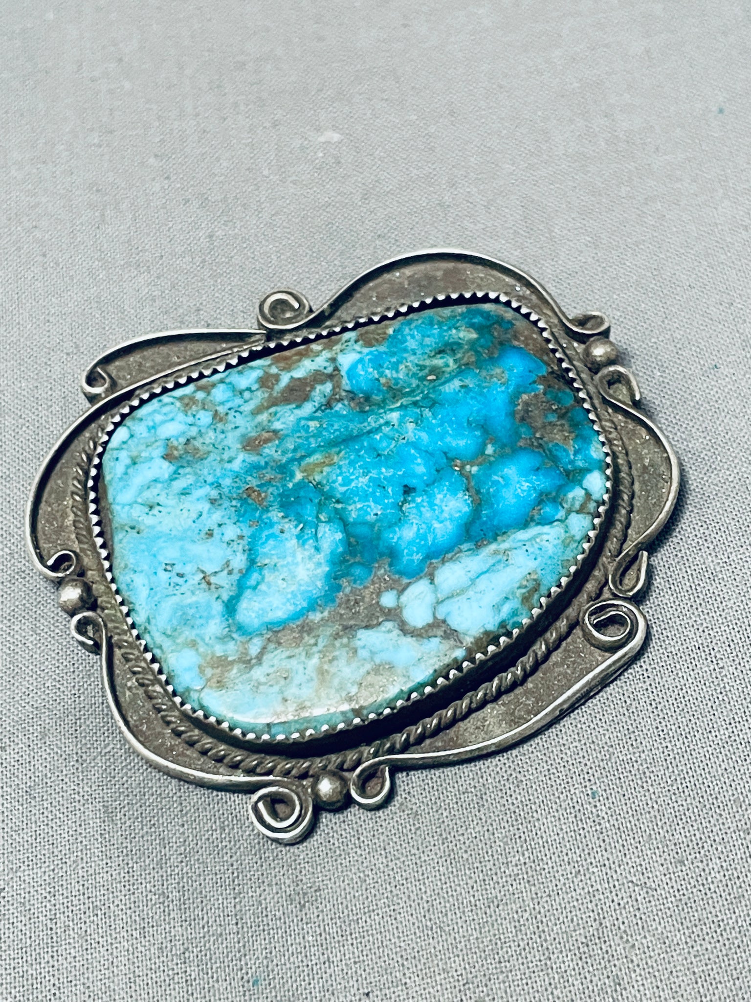 Colossal Vintage Native American Navajo Turquoise Mountain Sterling Silver Pin