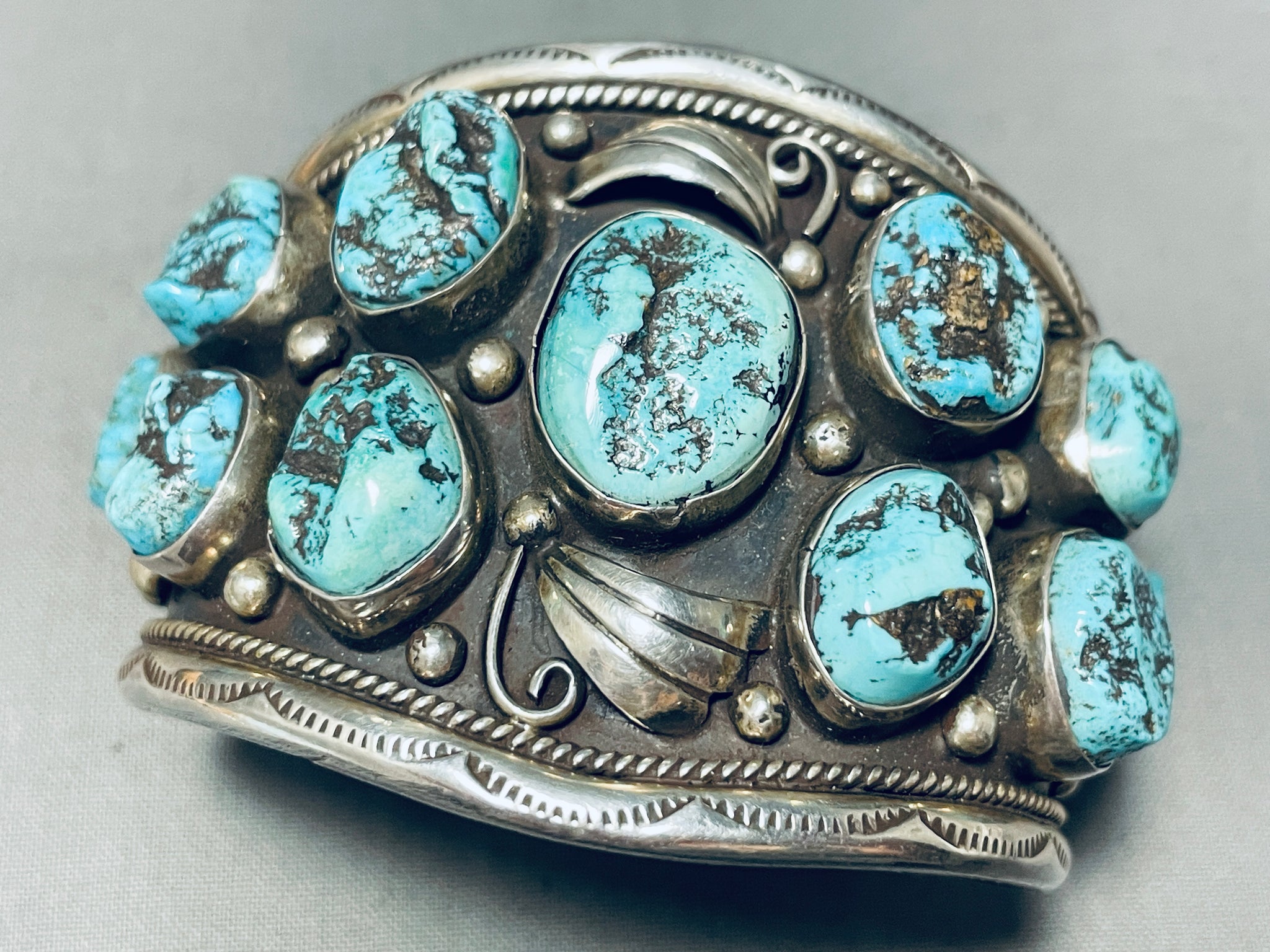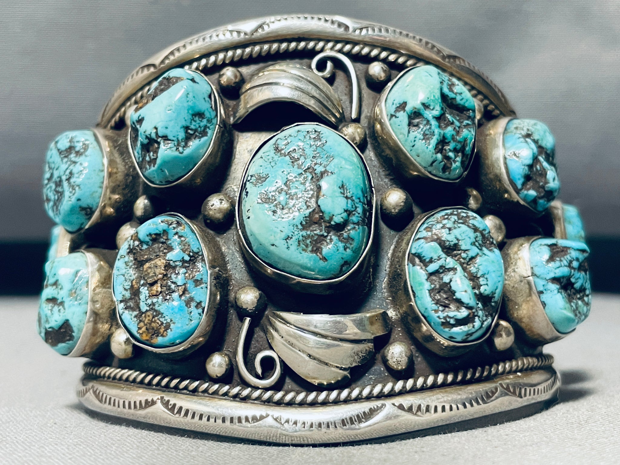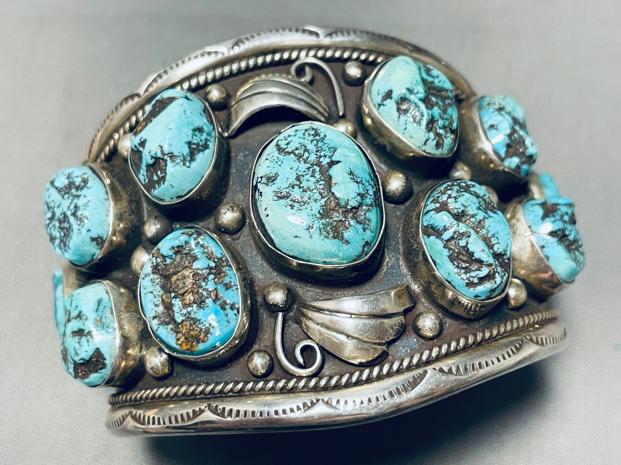 Colossal Vintage Native American Navajo Turquoise Sterling Silver Bracelet
