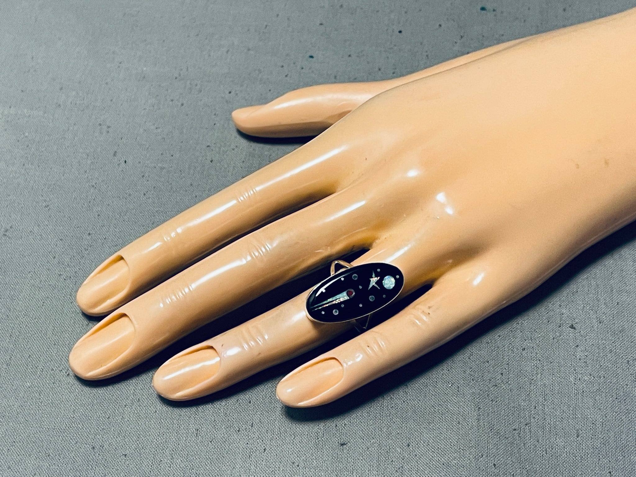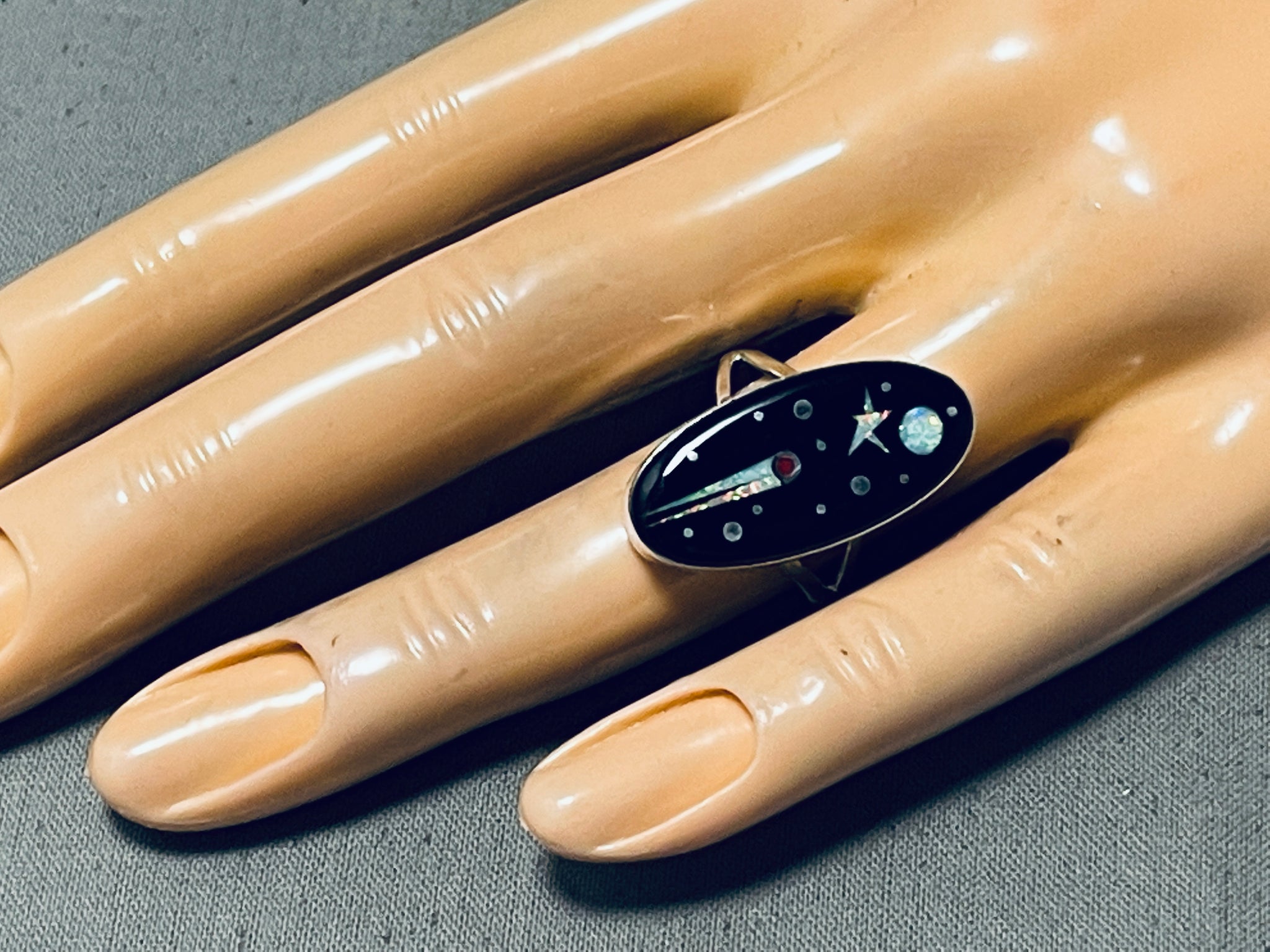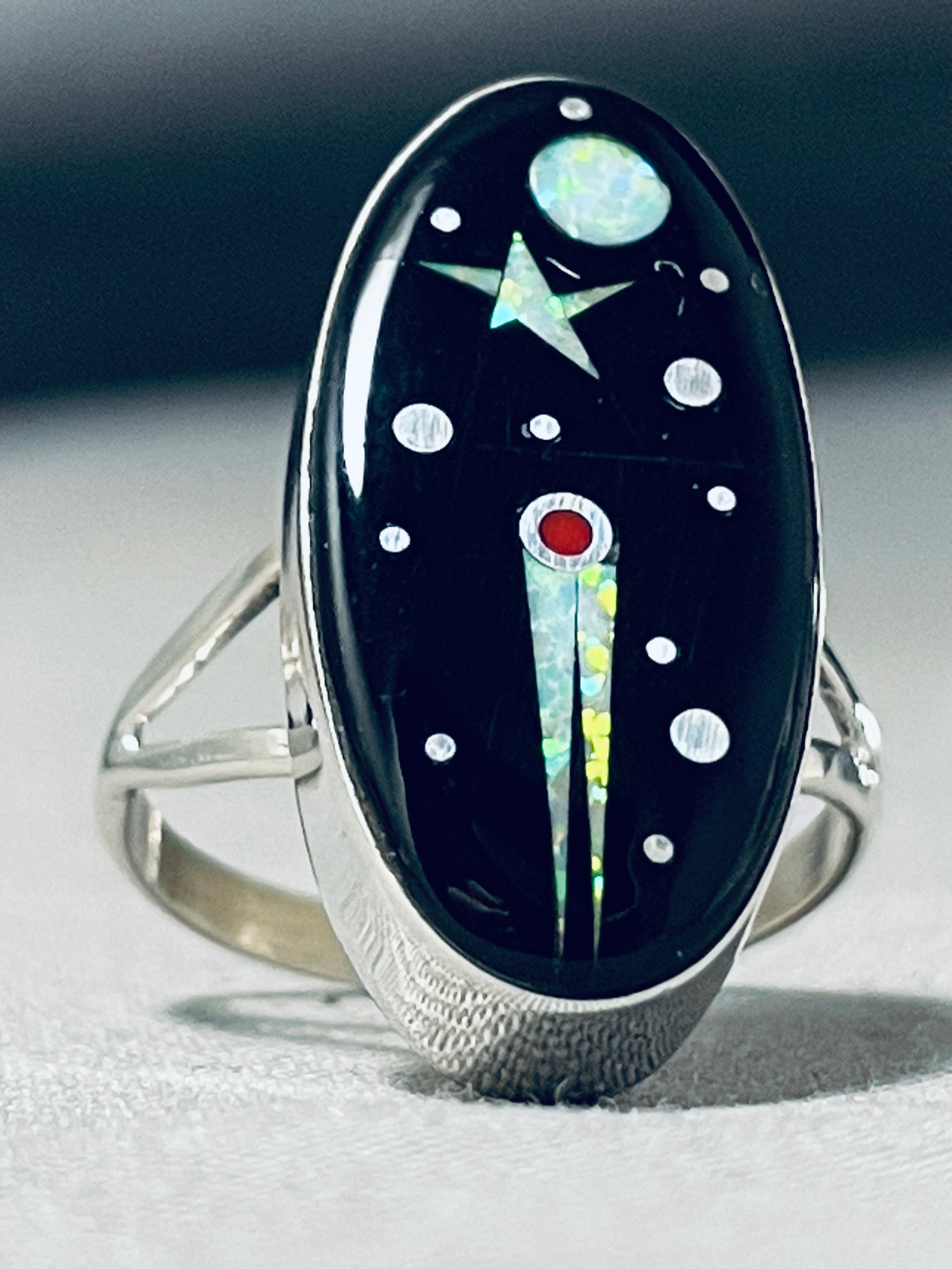 Comet Outer Space Native American Navajo Sterling Silver Opal Ring