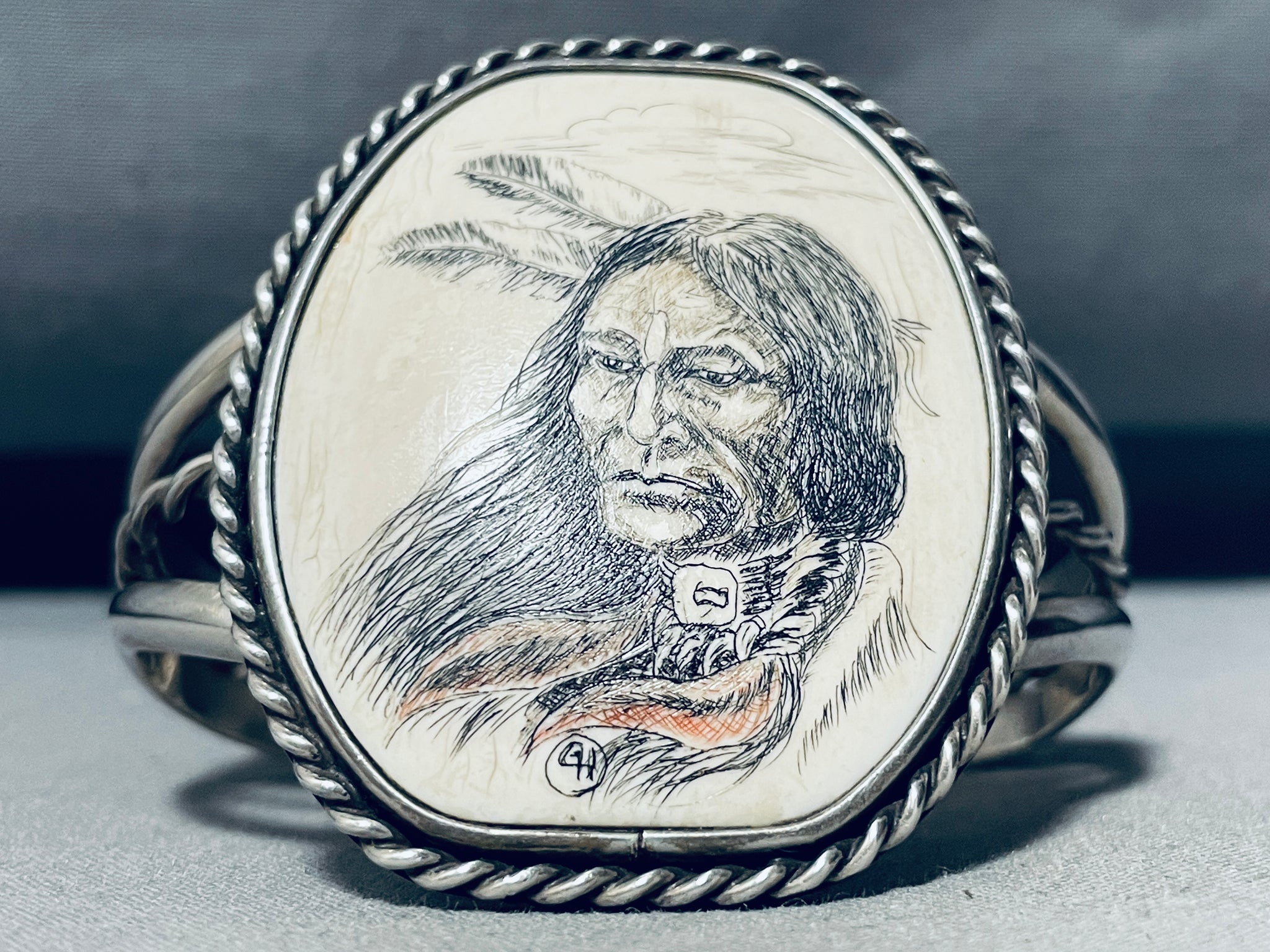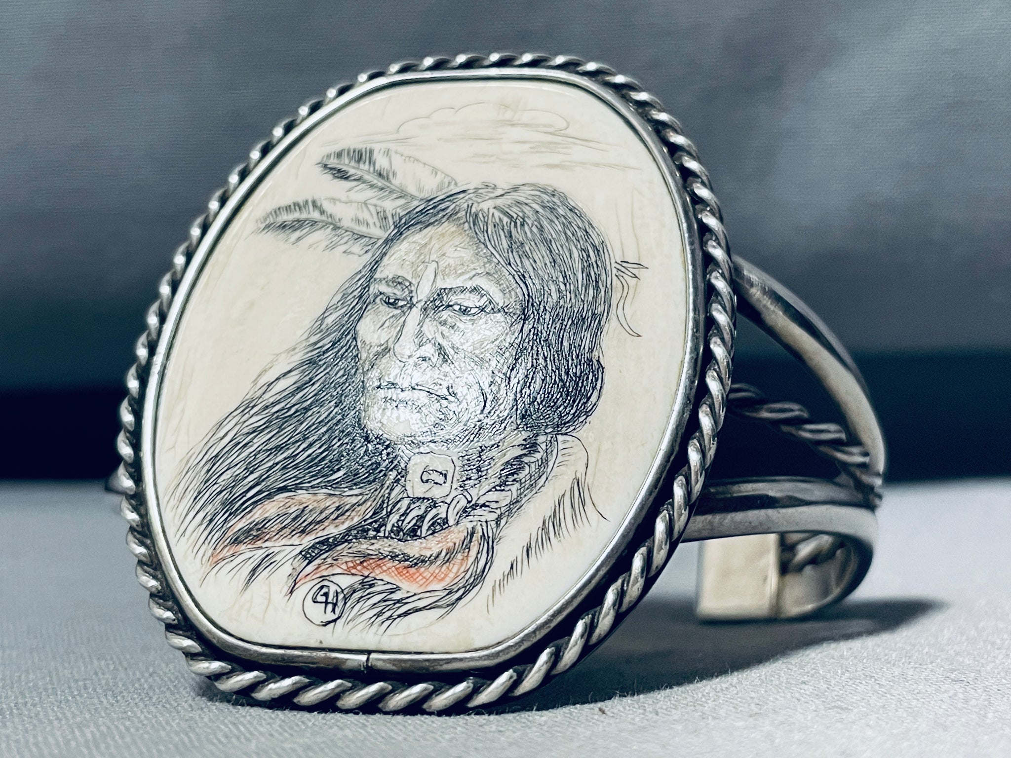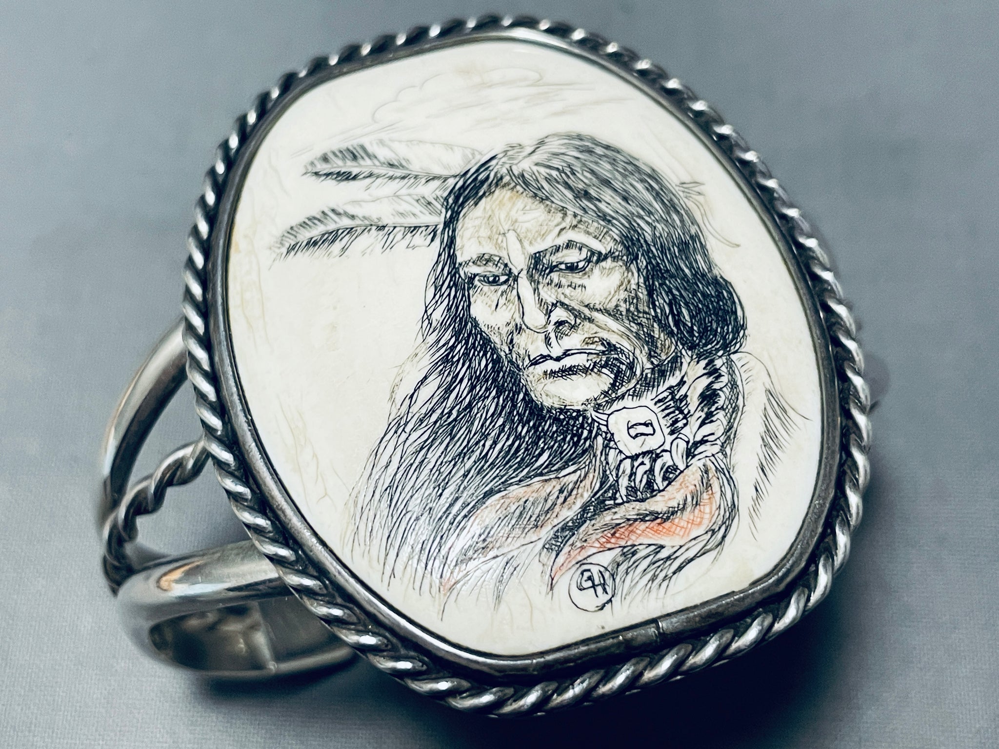 Completely Hand Carved Vintage Native American Navajo Sterling Silver Bracelet