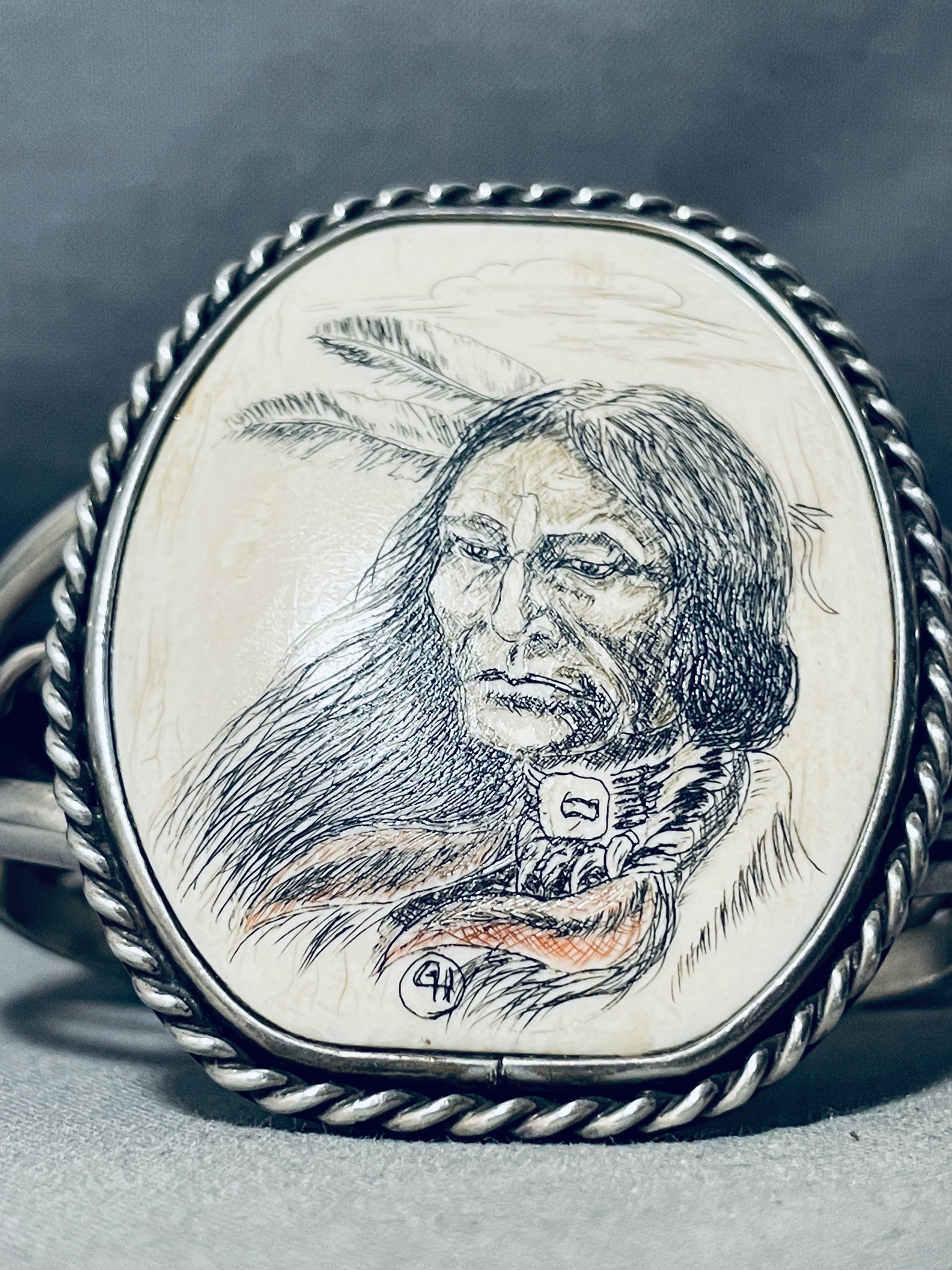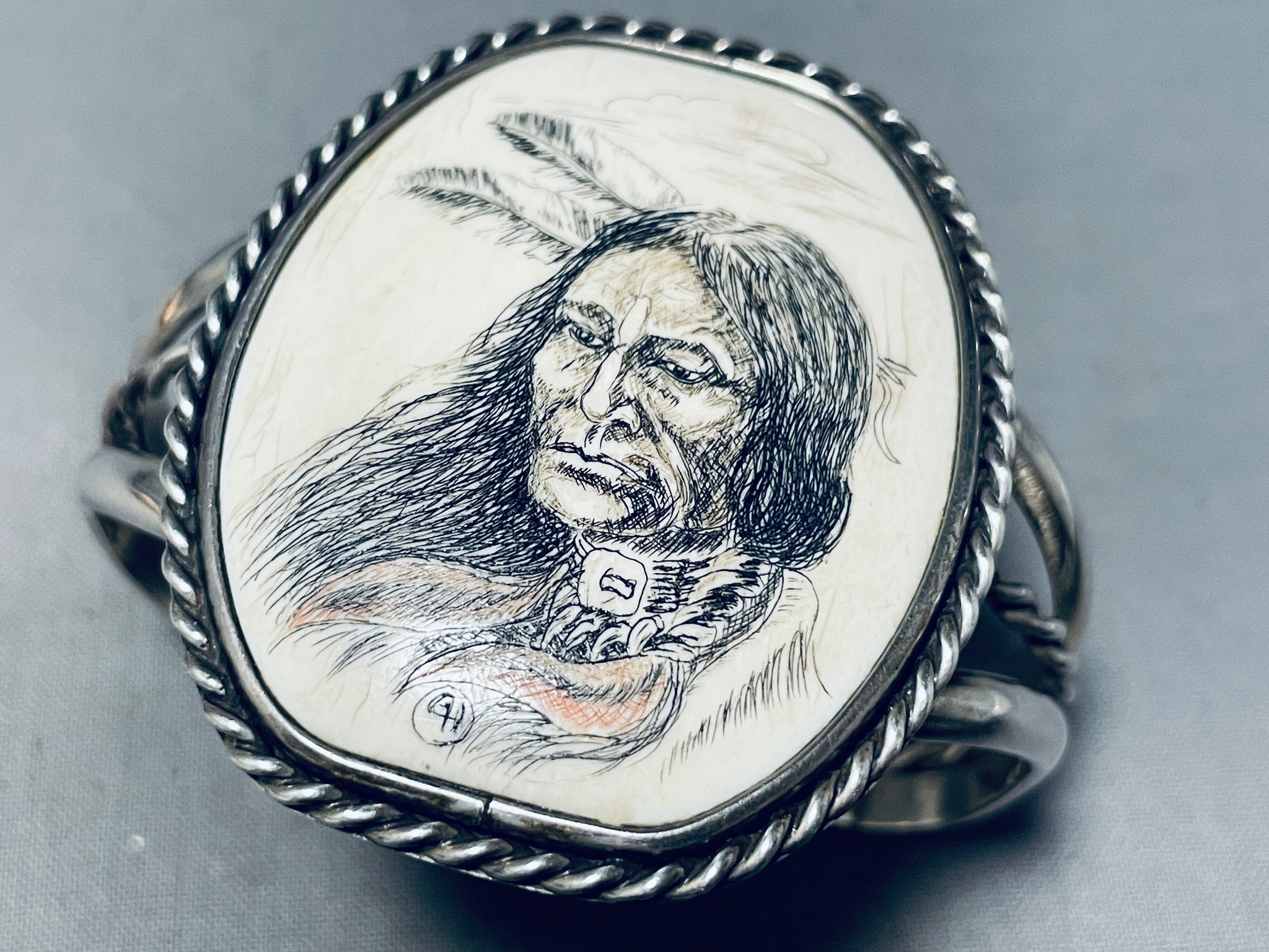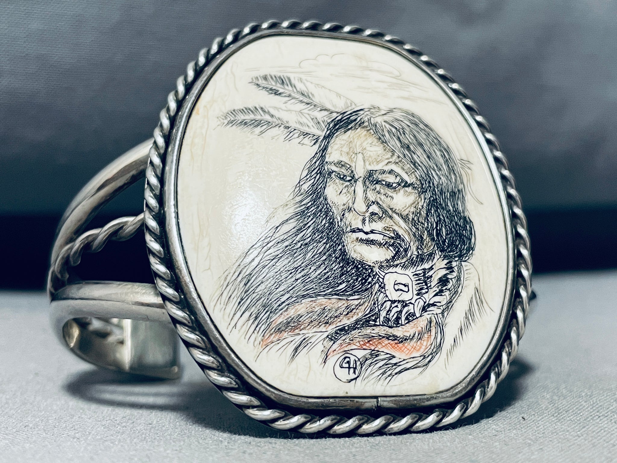Completely Hand Carved Vintage Native American Navajo Sterling Silver Bracelet