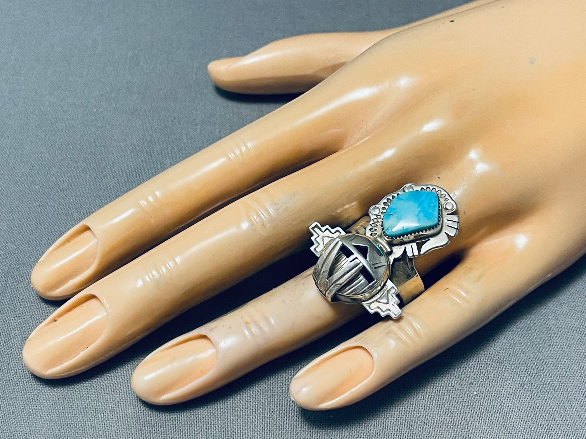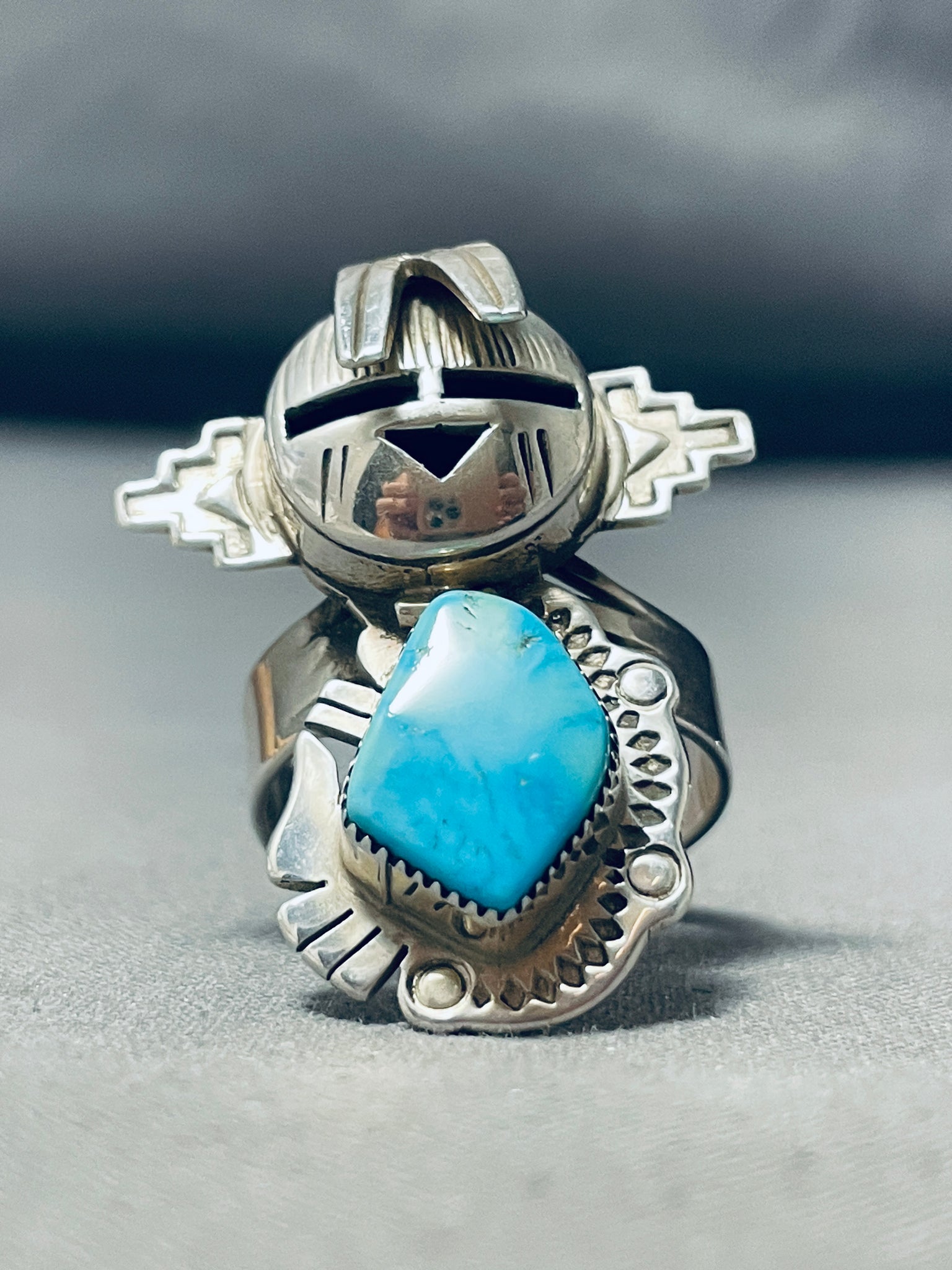Completely Handmade Kachina Native American Navajo Turquoise Sterling Silver Ring
