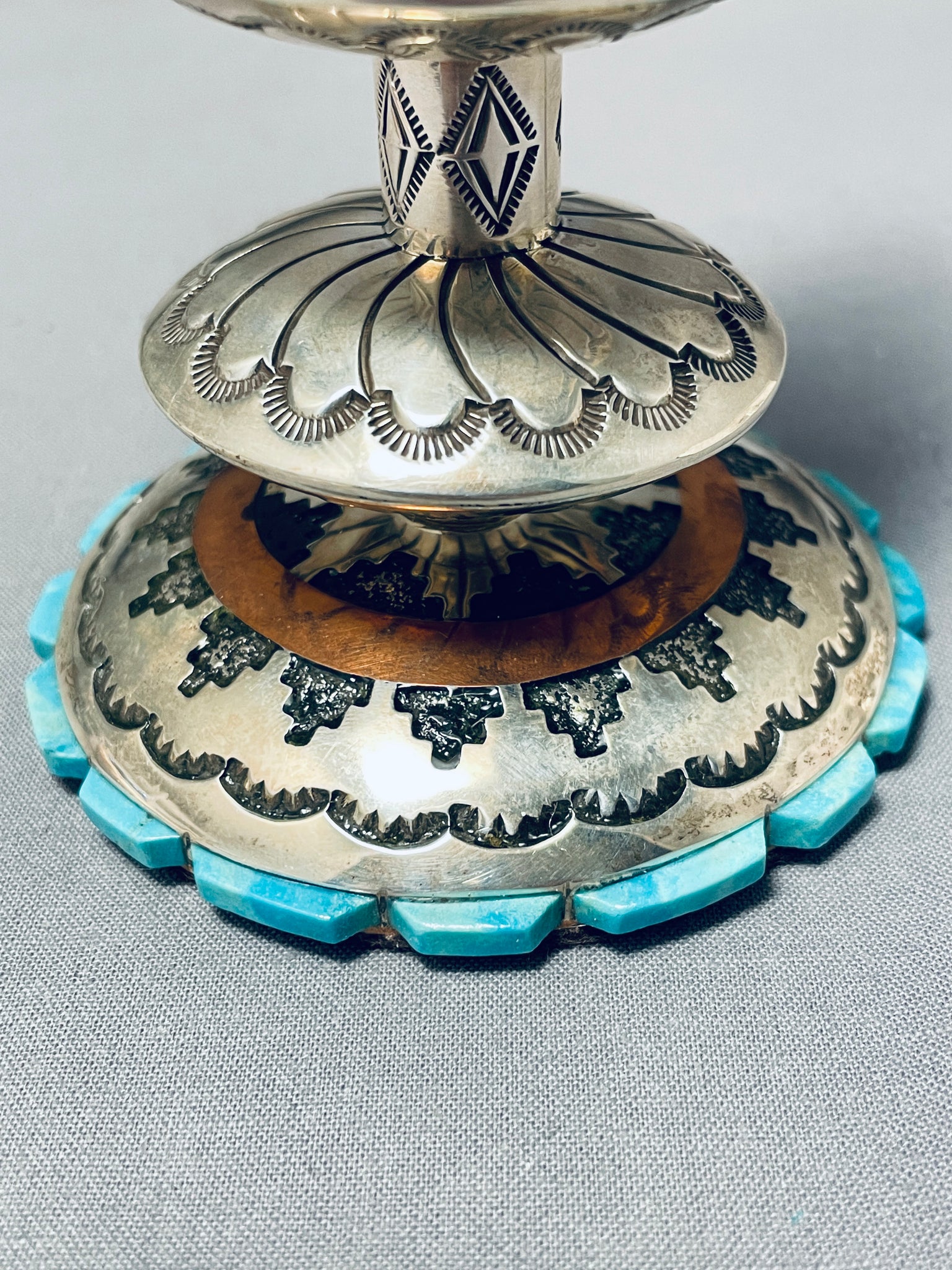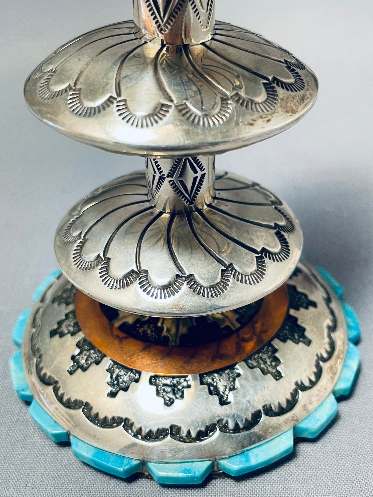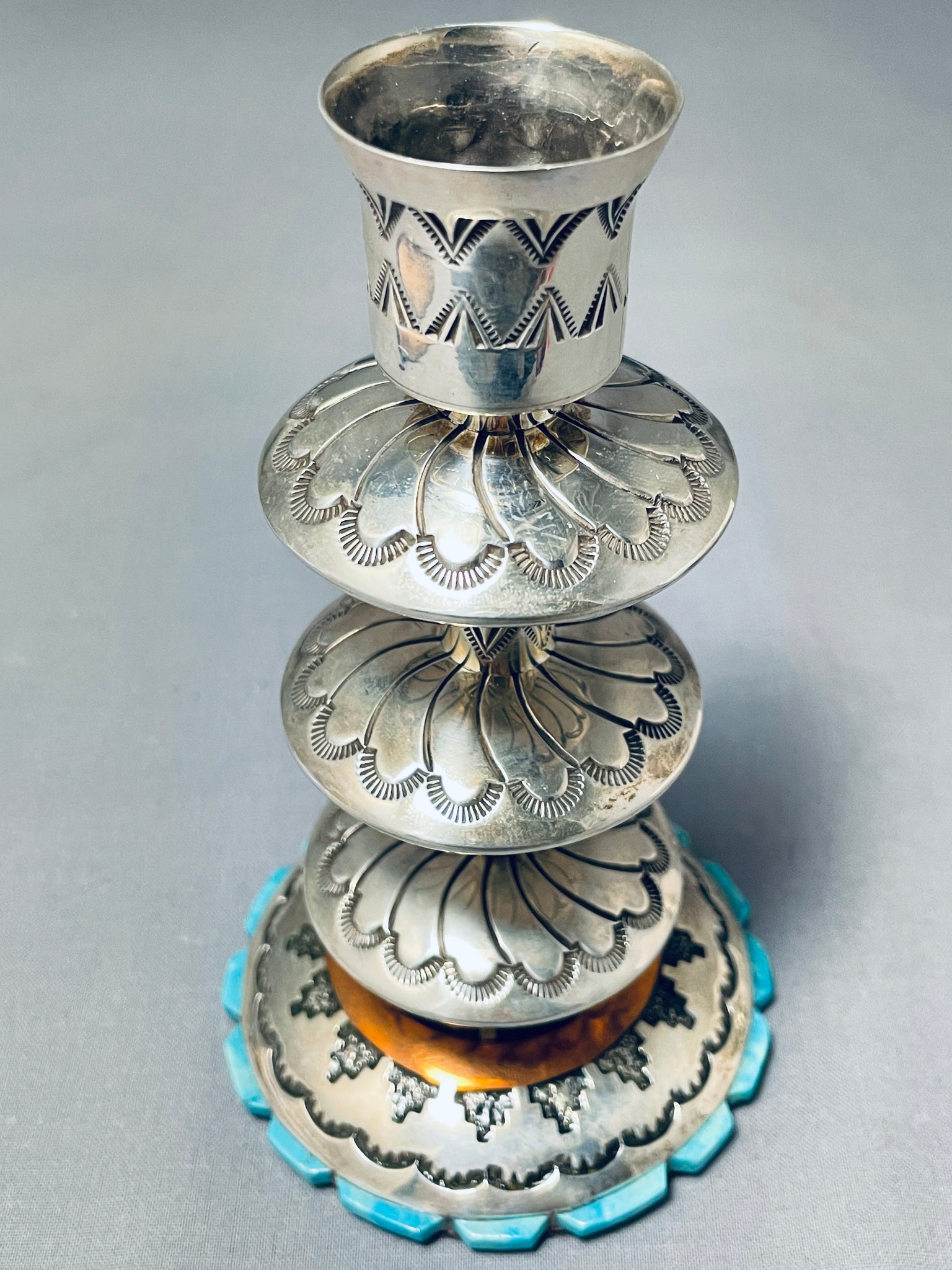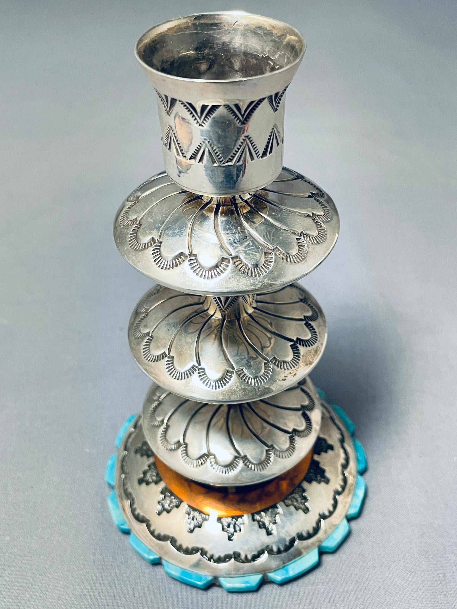 Completely Handmade Vintage Native American Navajo Candlestick Turquosie Sterling Silver Holder