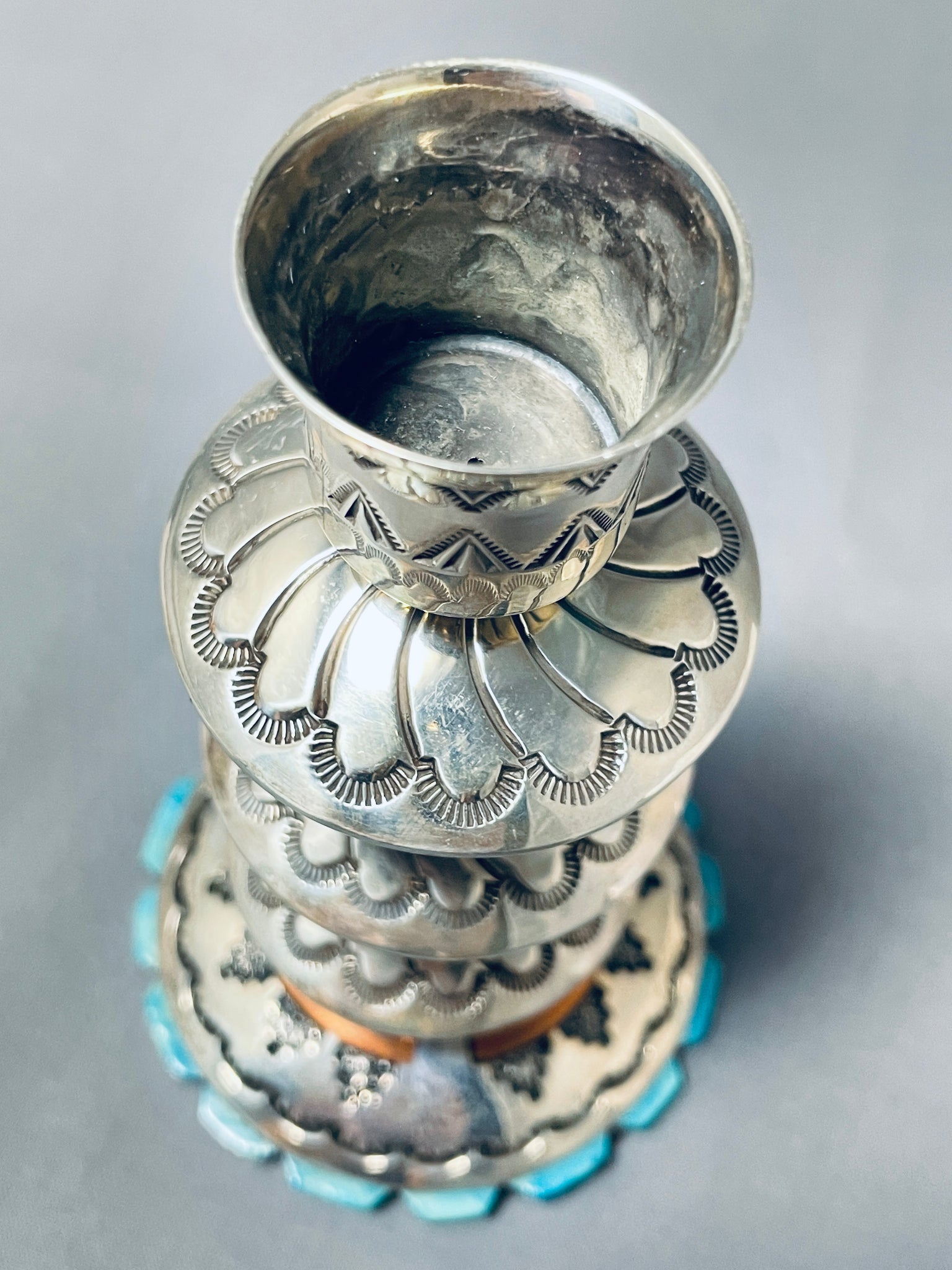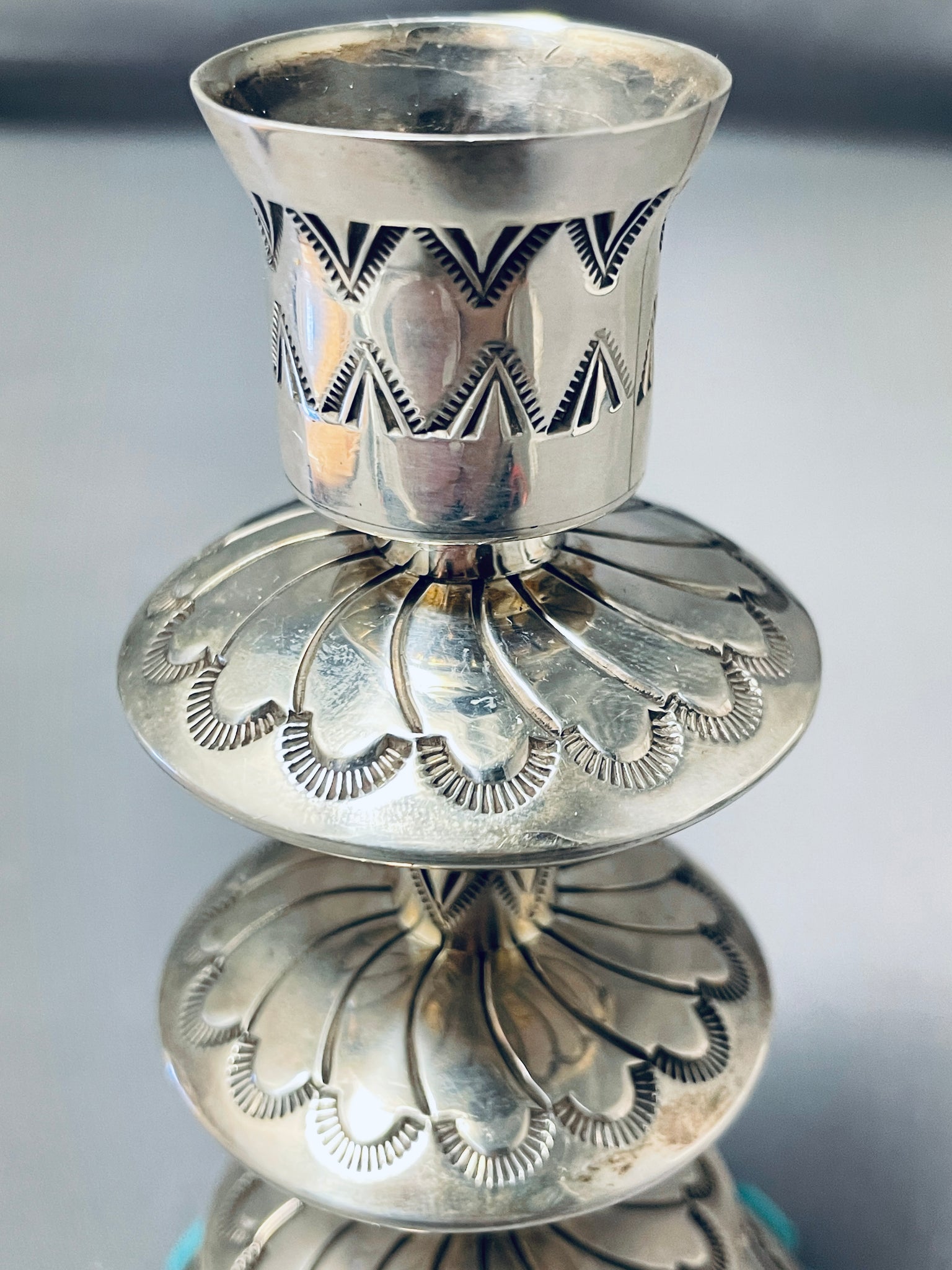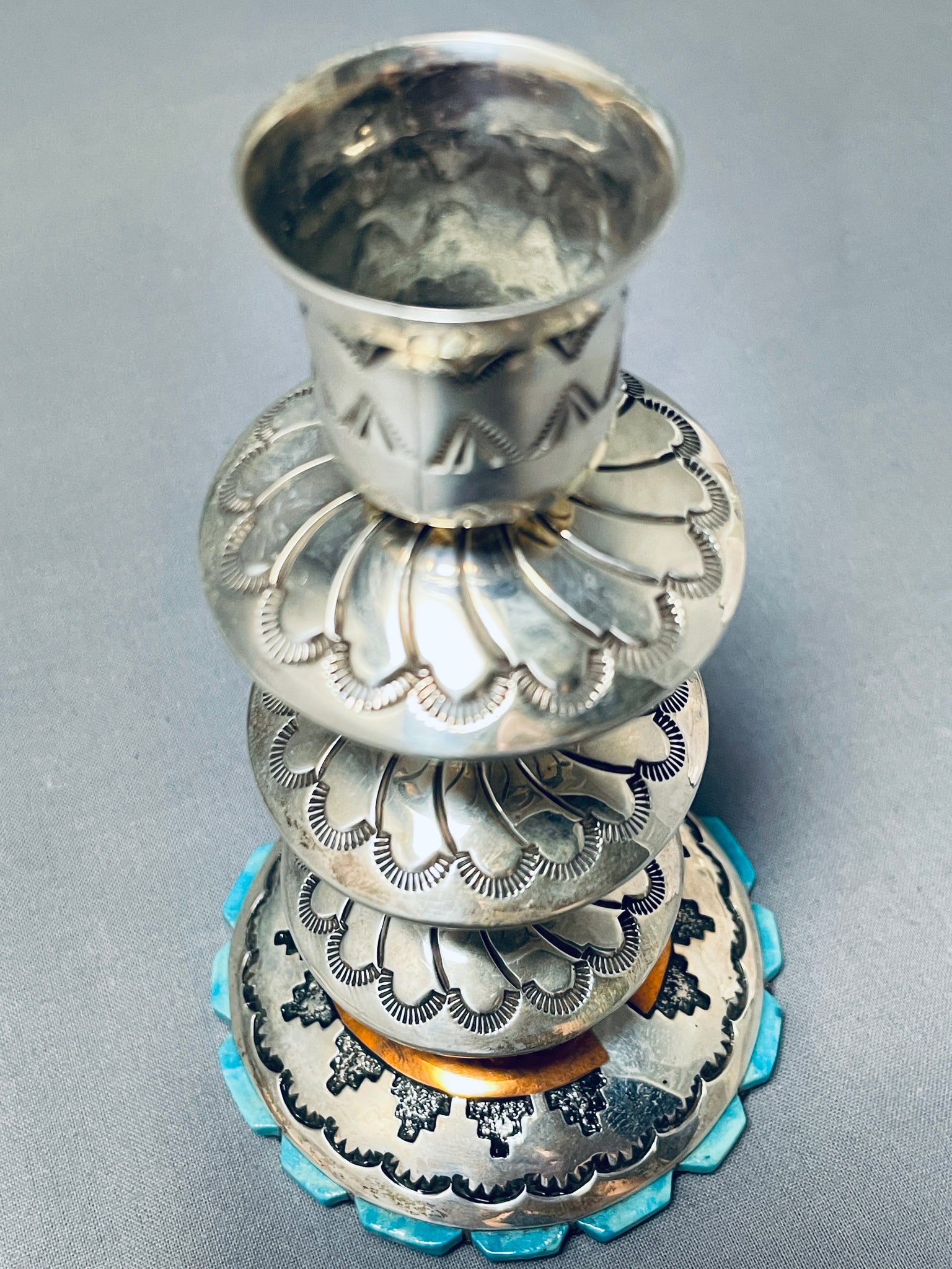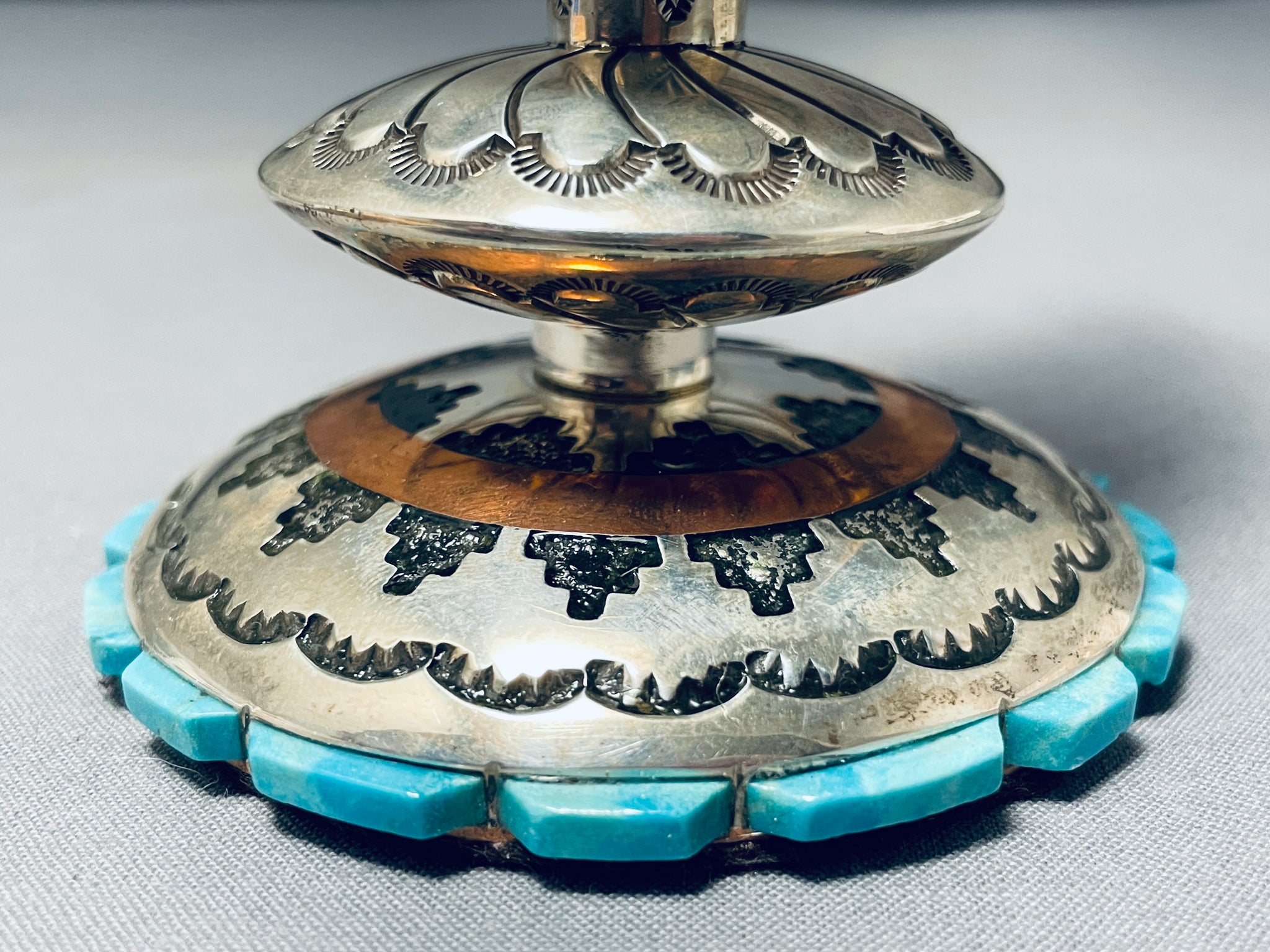 Completely Handmade Vintage Native American Navajo Candlestick Turquosie Sterling Silver Holder