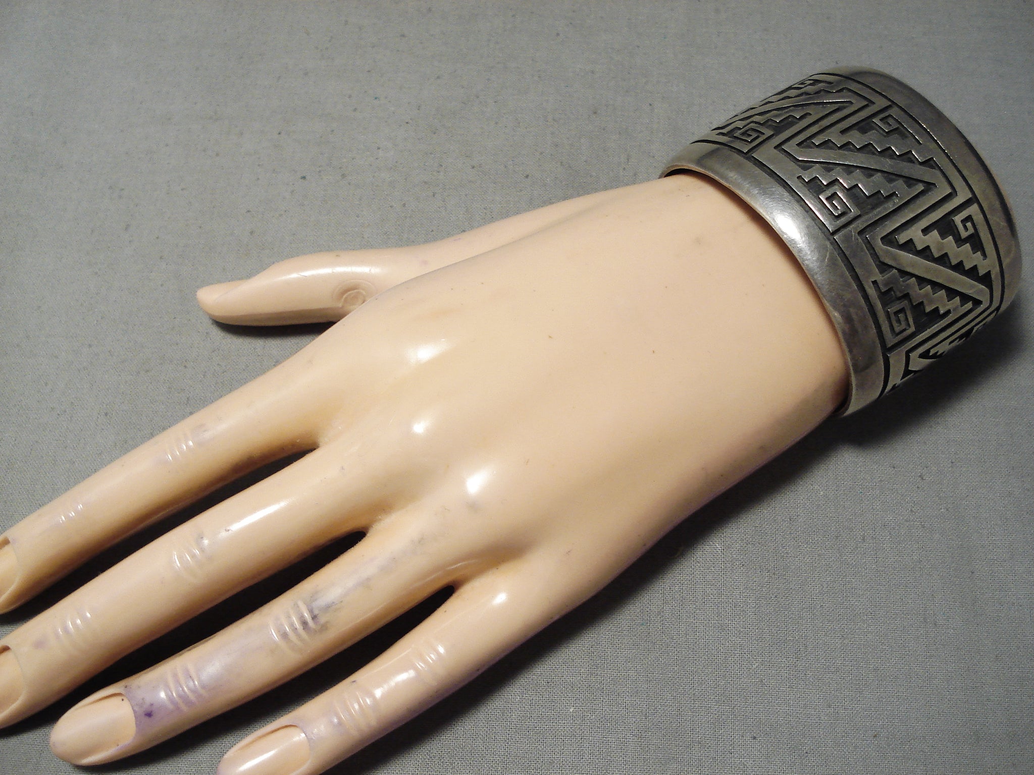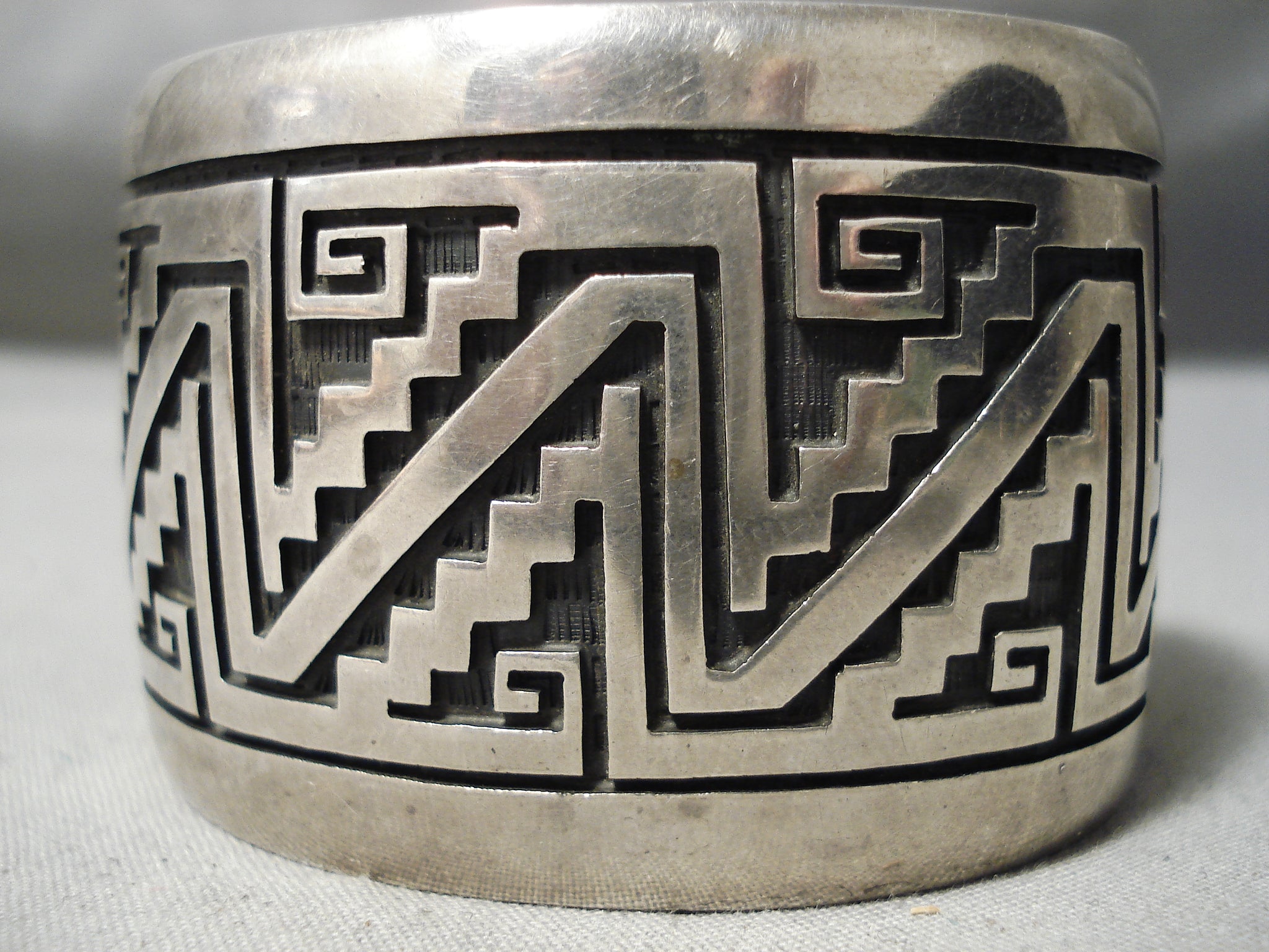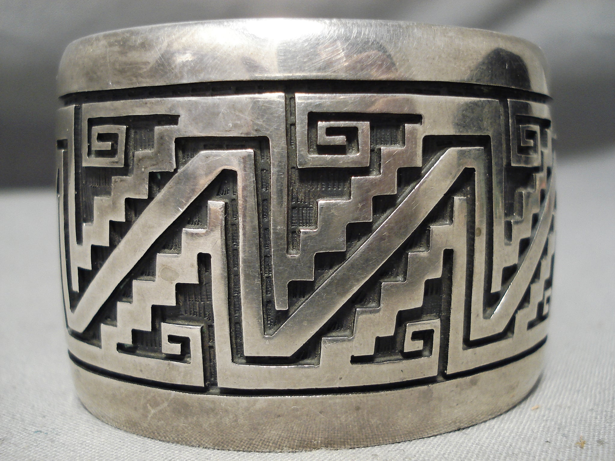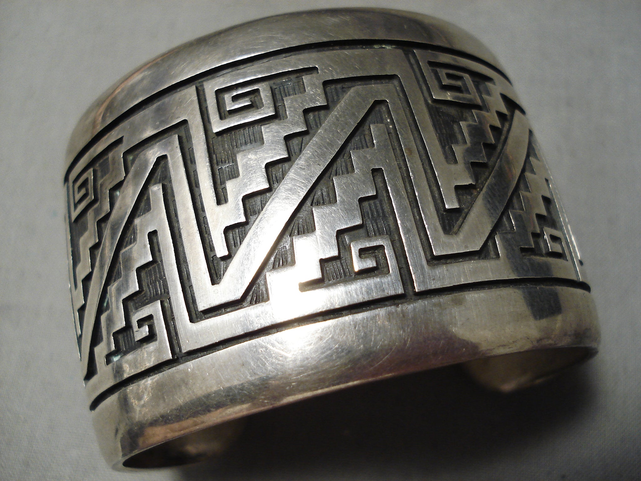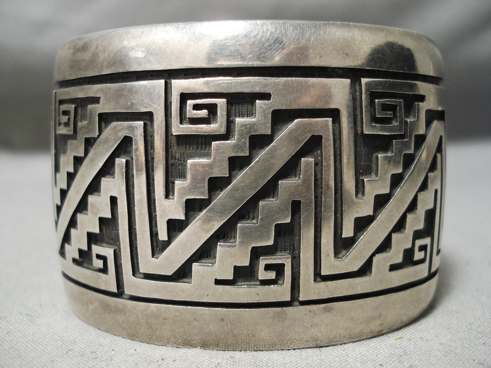 Complex Vintage Hopi Sterling Silver Bracelet Native American Old
