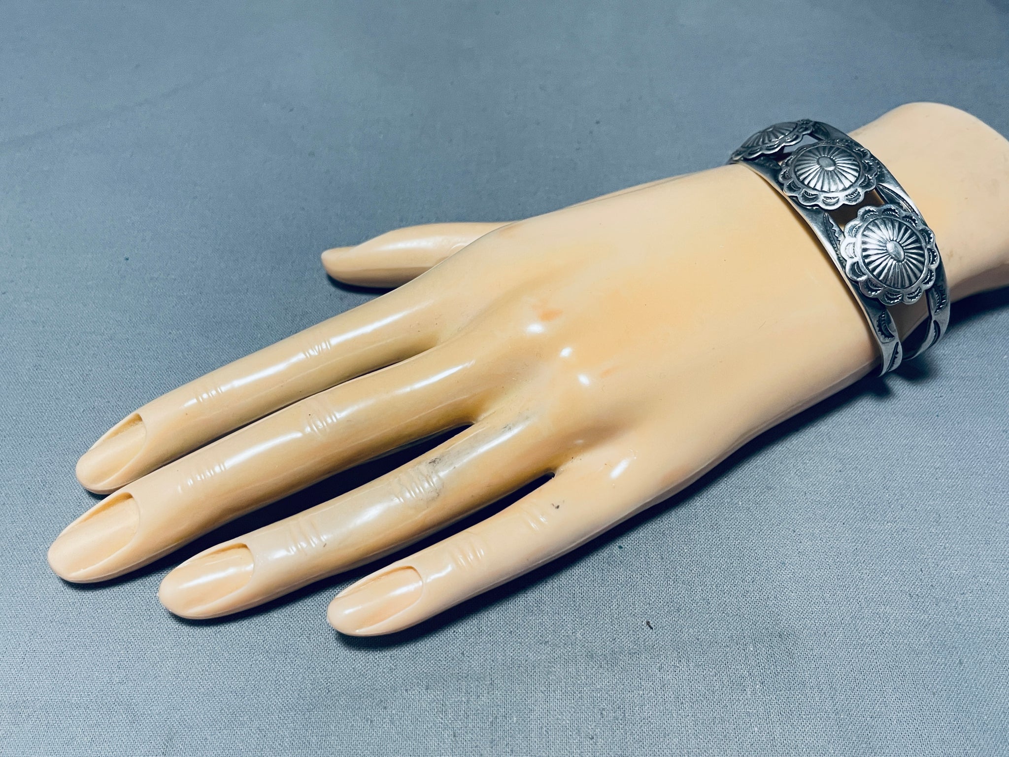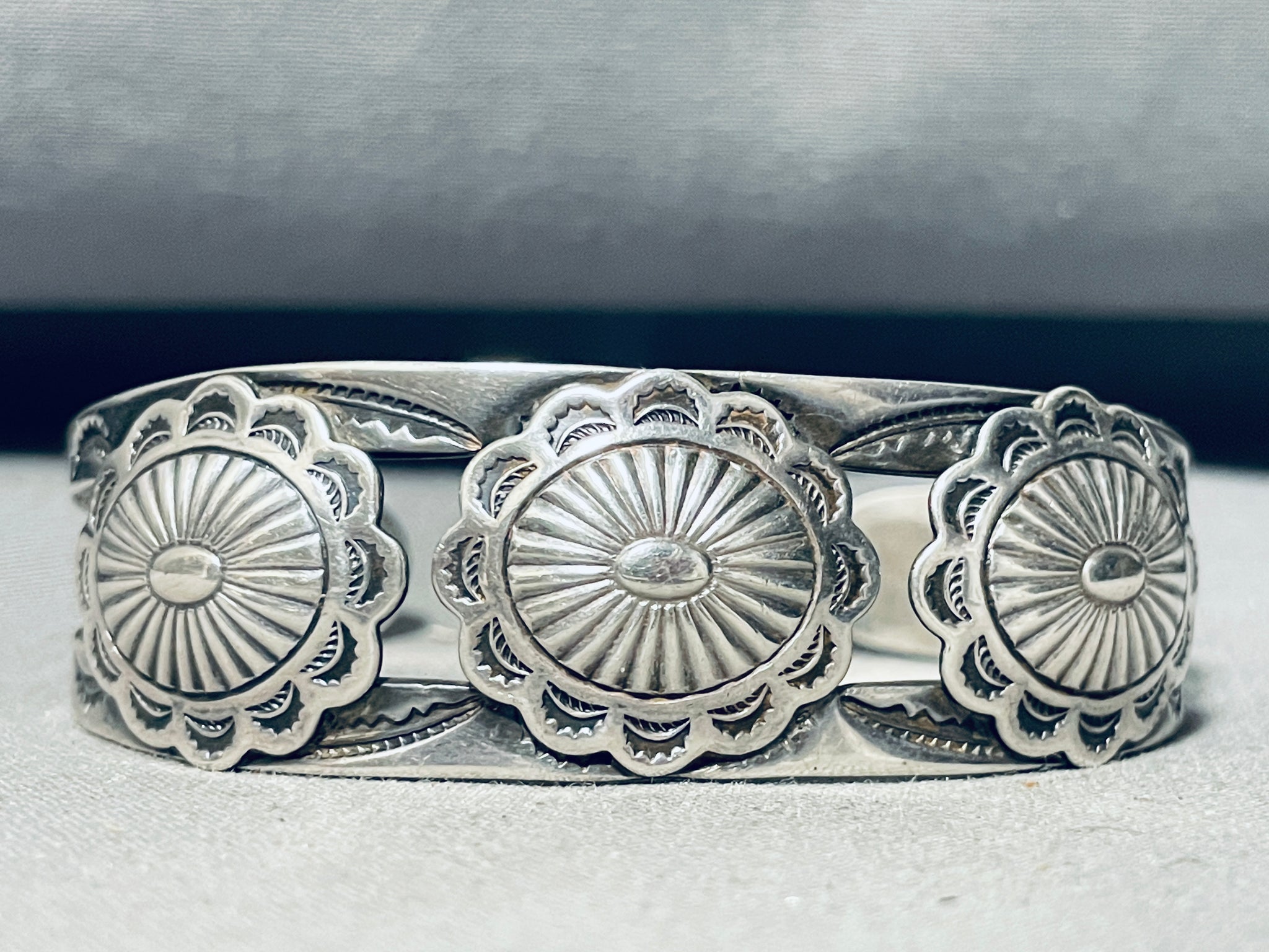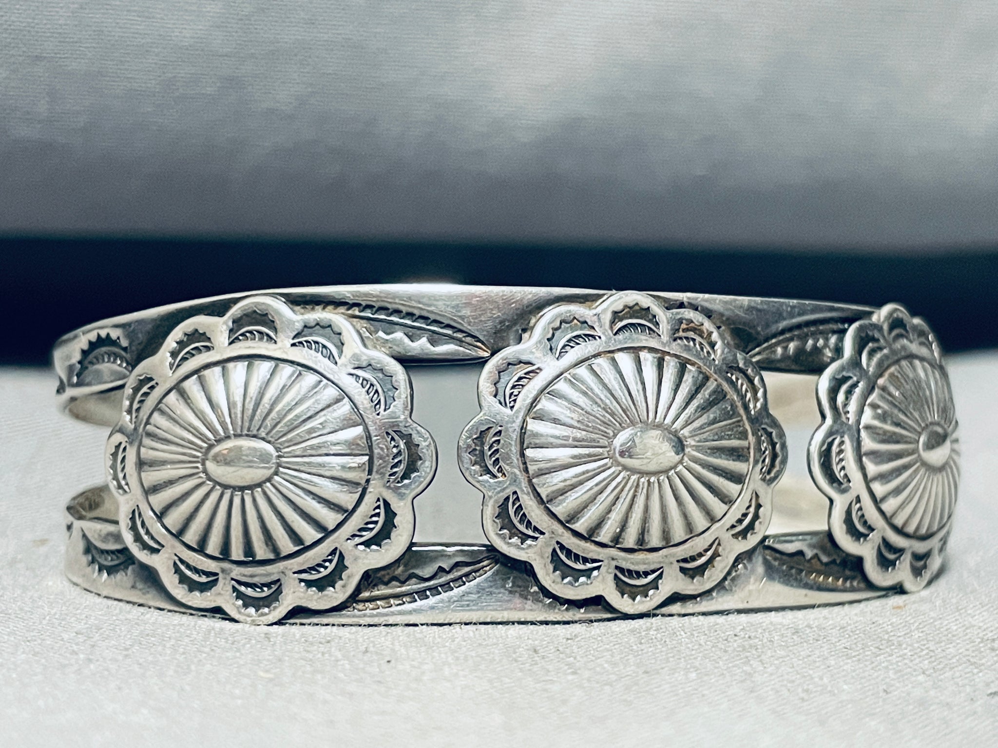 Conchos!! Very Early Vintage Native American Navajo Sterling Silver Bracelet Cuff