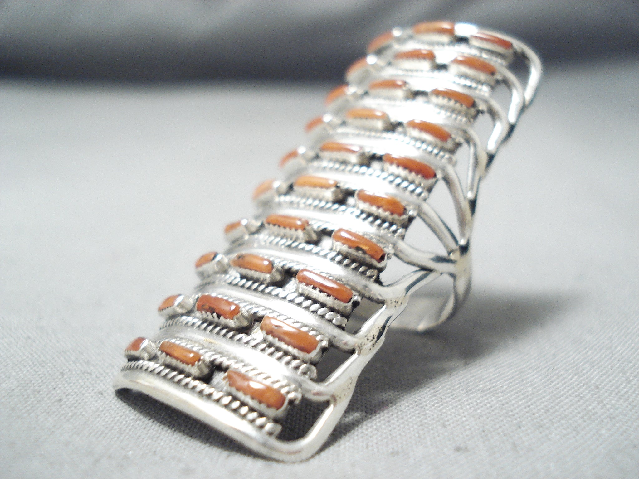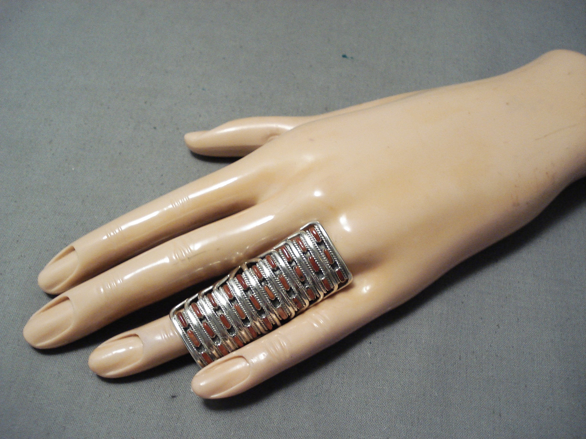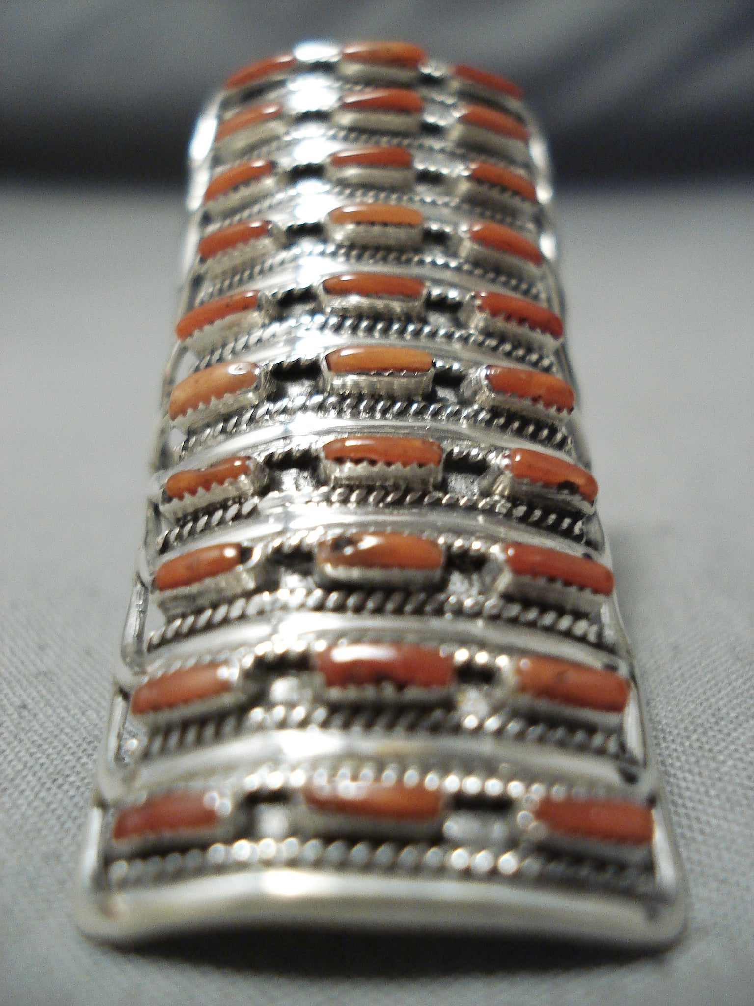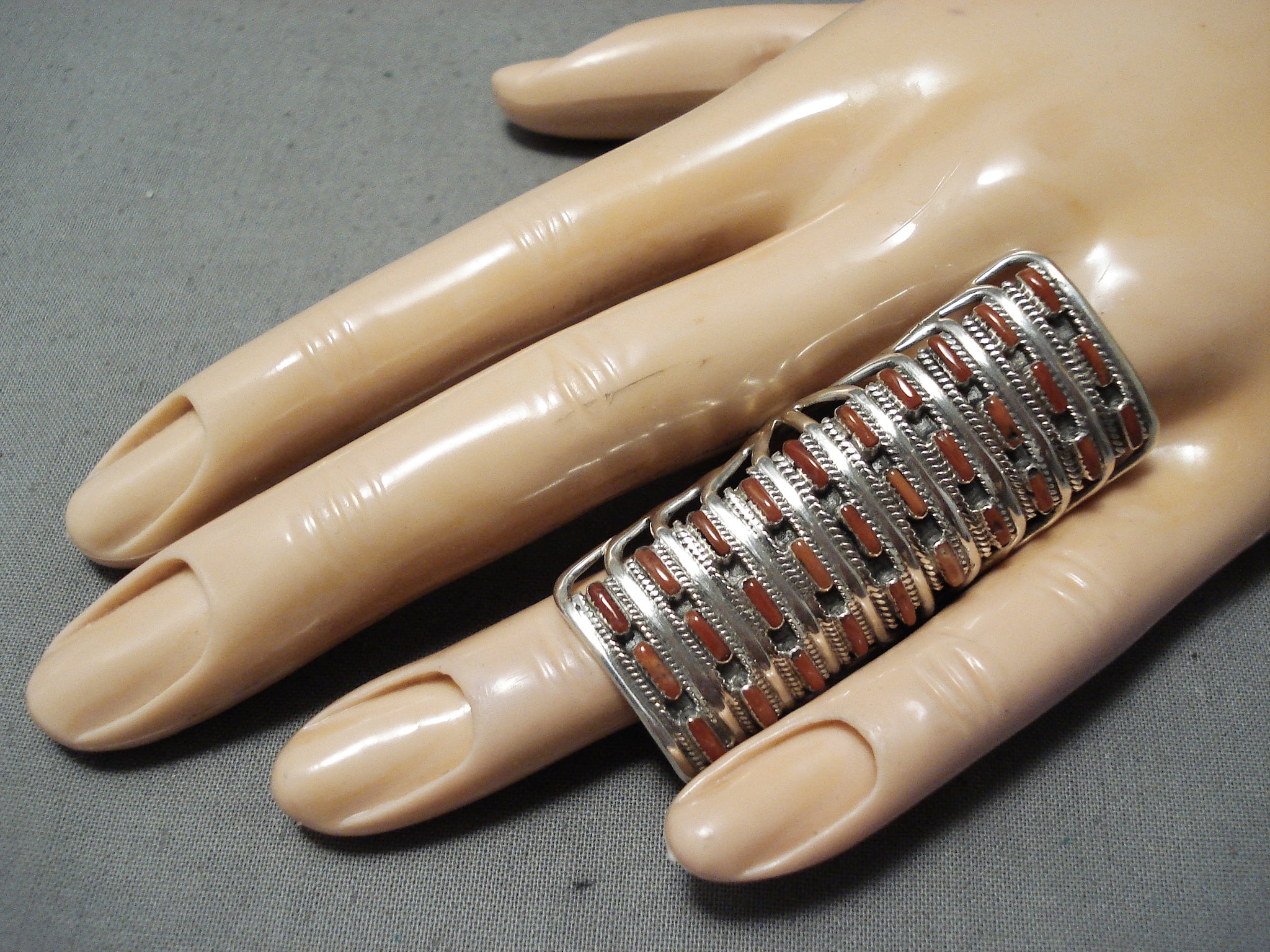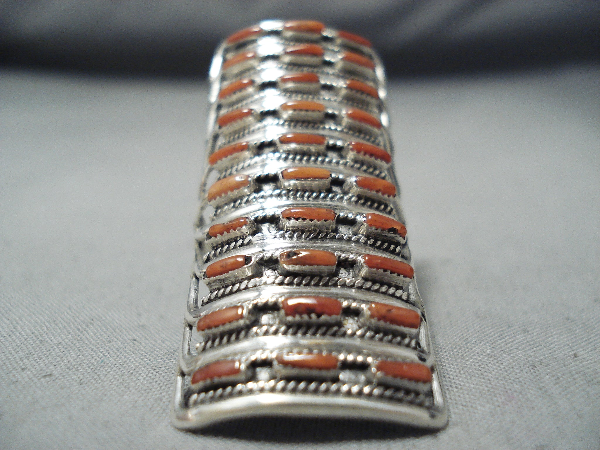 Conn Hattie Zuni Coral Sterling Silver Ring Native American Towering
