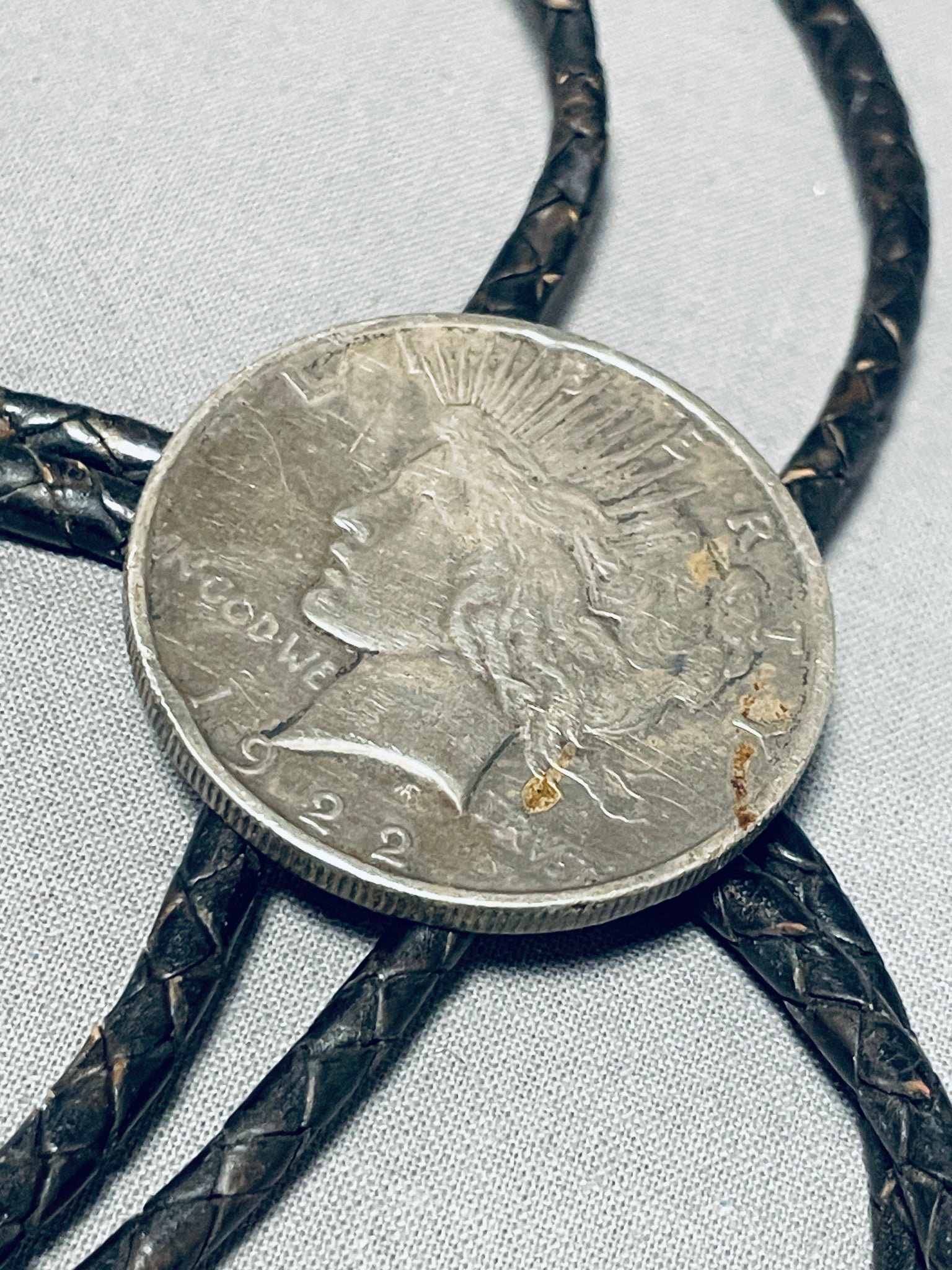 Cool Native American Navajo Silver Dollar Bolo Vintage Coin Sterling Silver Bolo Tie