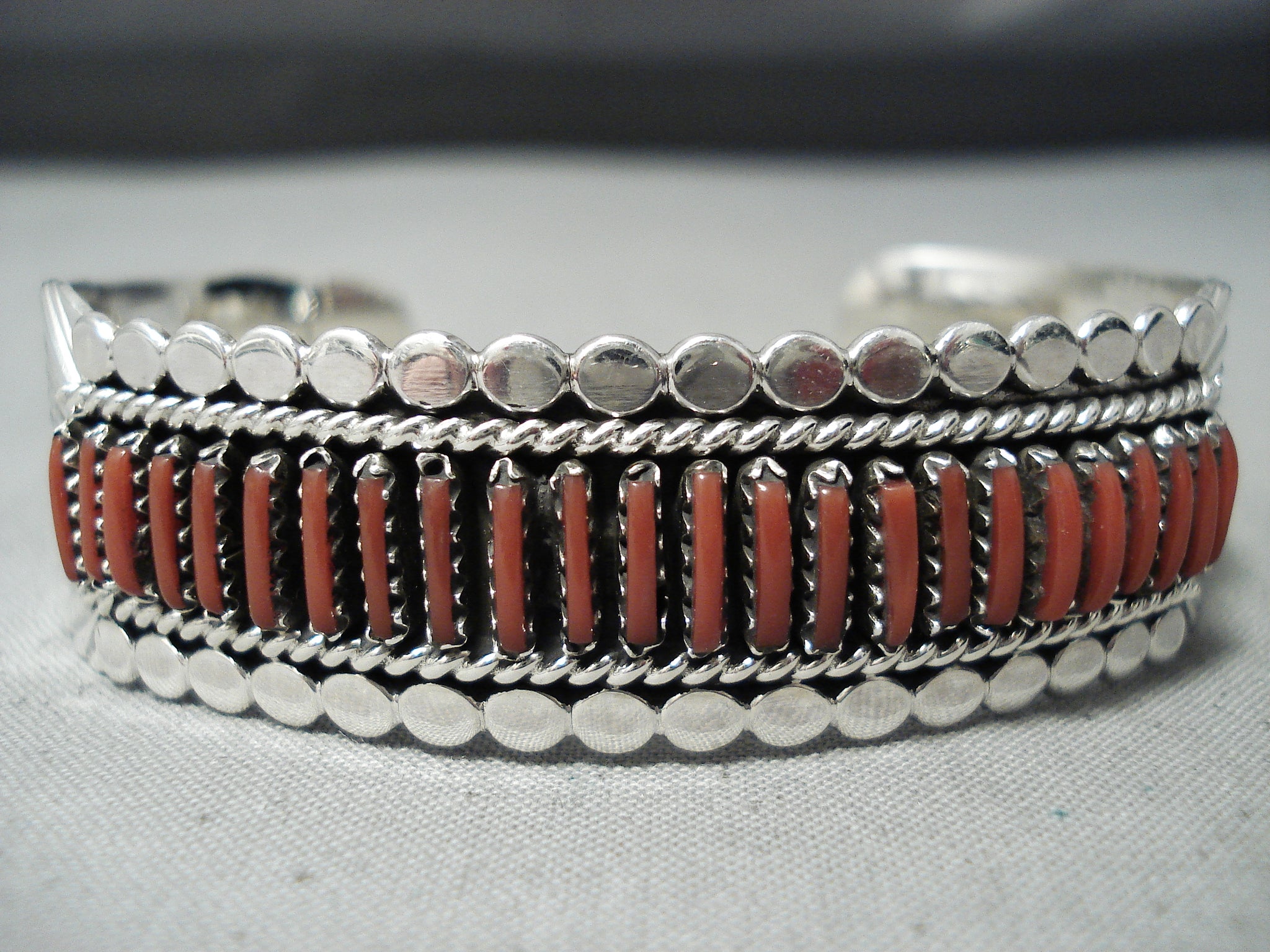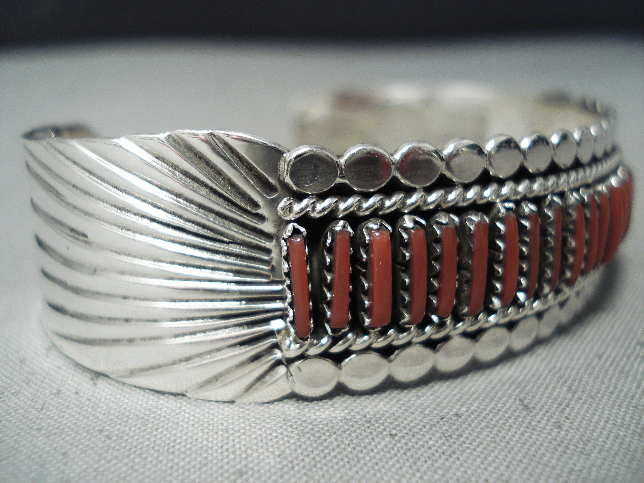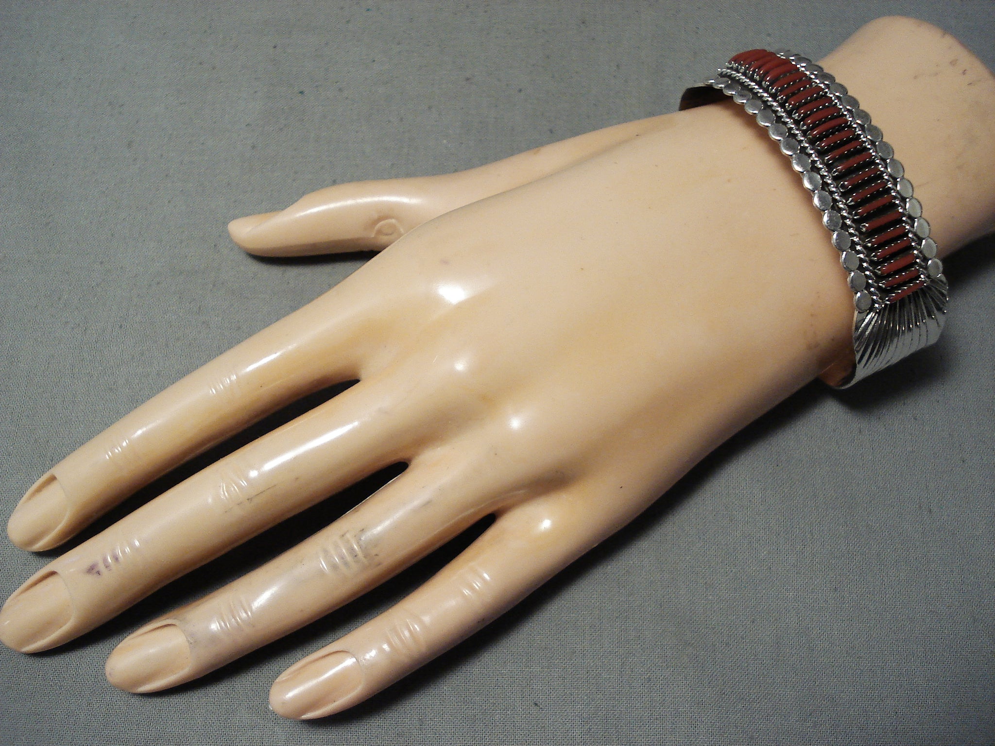 Coral Intricacy!! Contempoist Native American Navajo Sterling Silver Bracelet Cuff