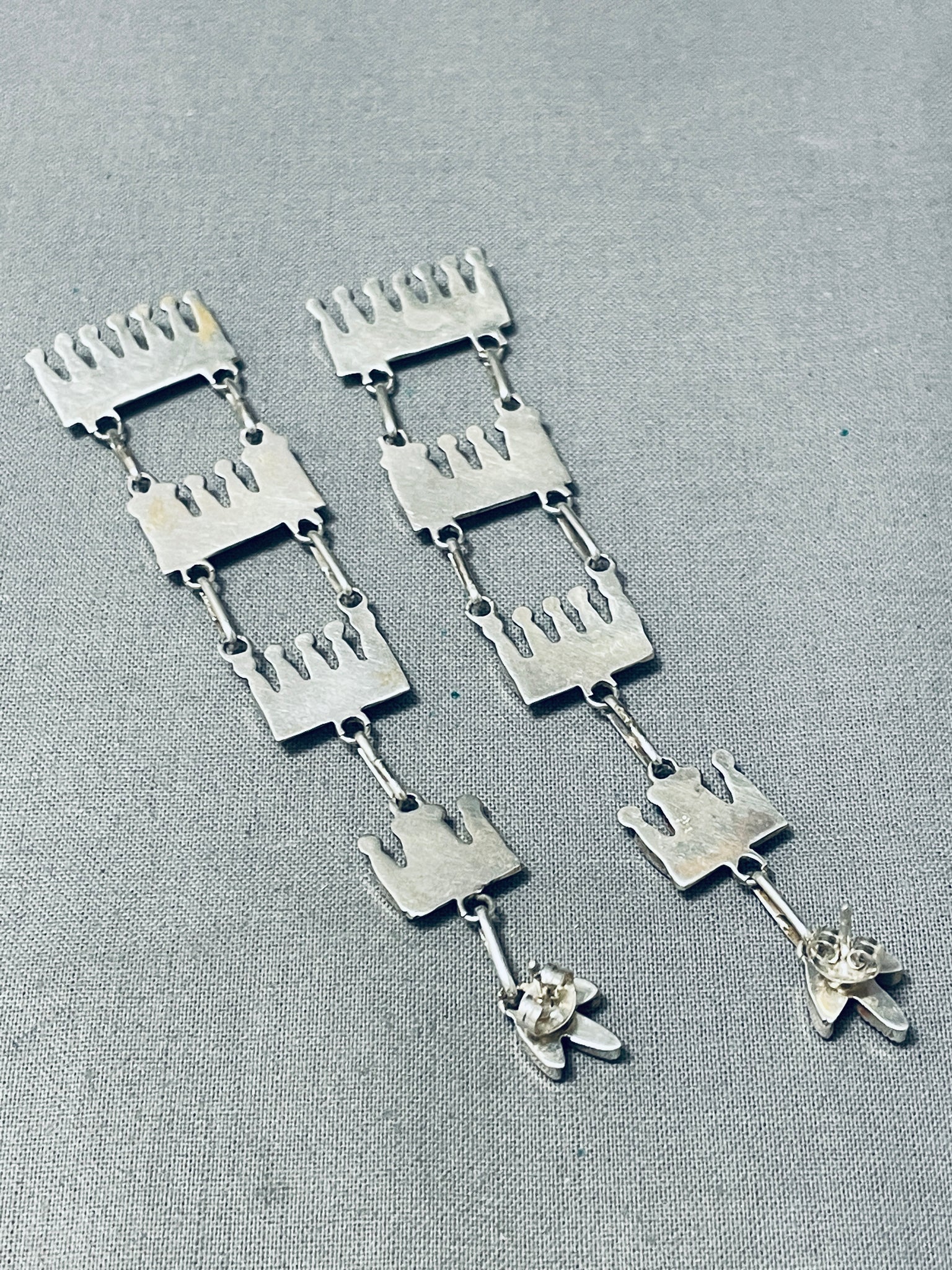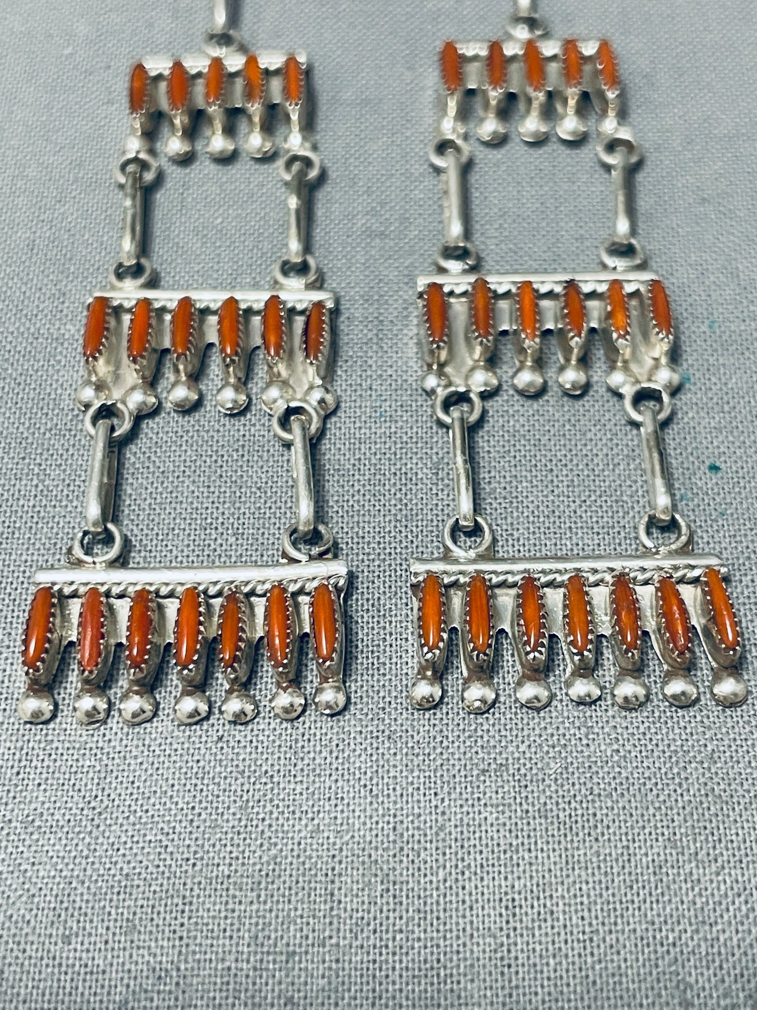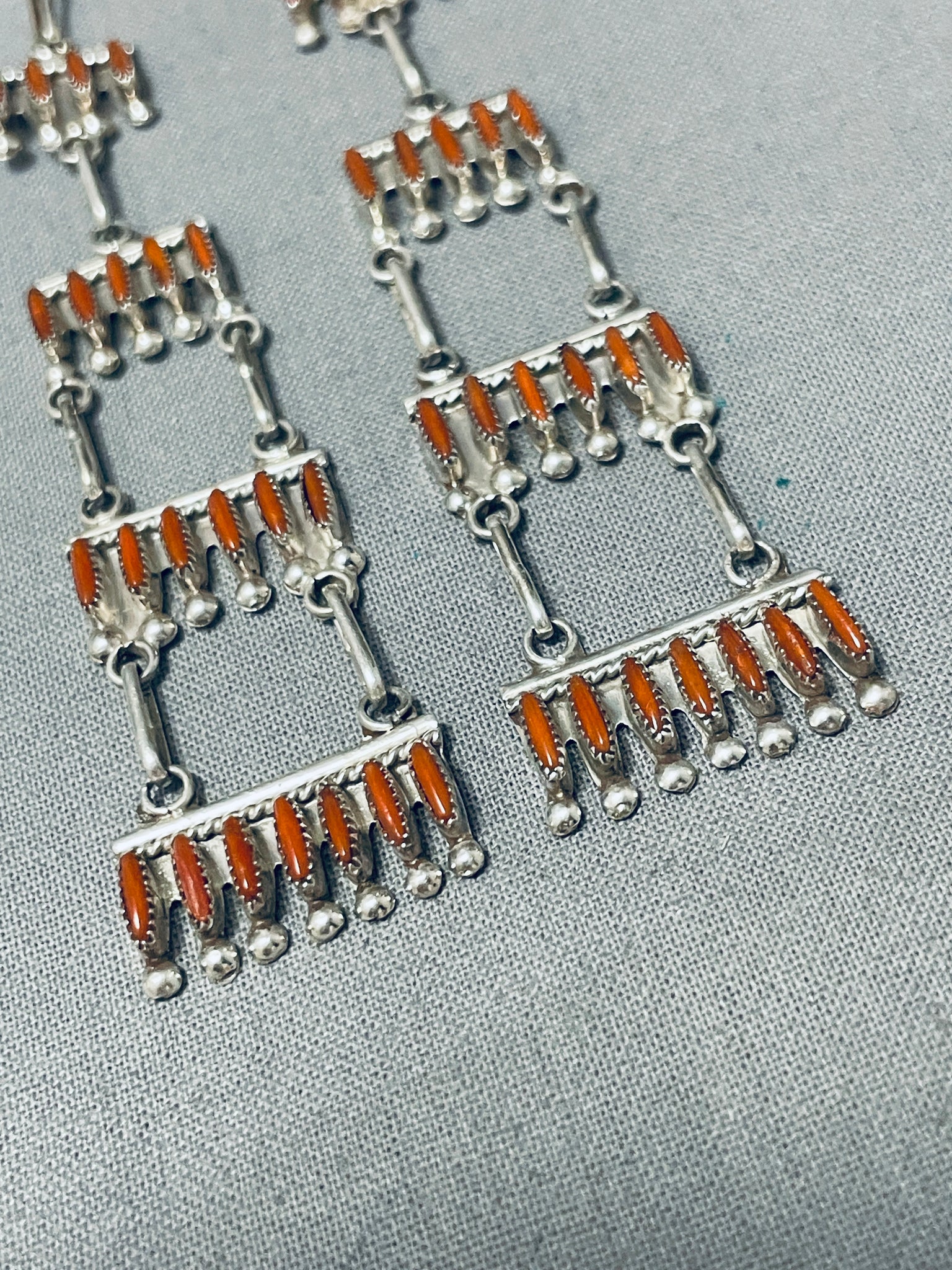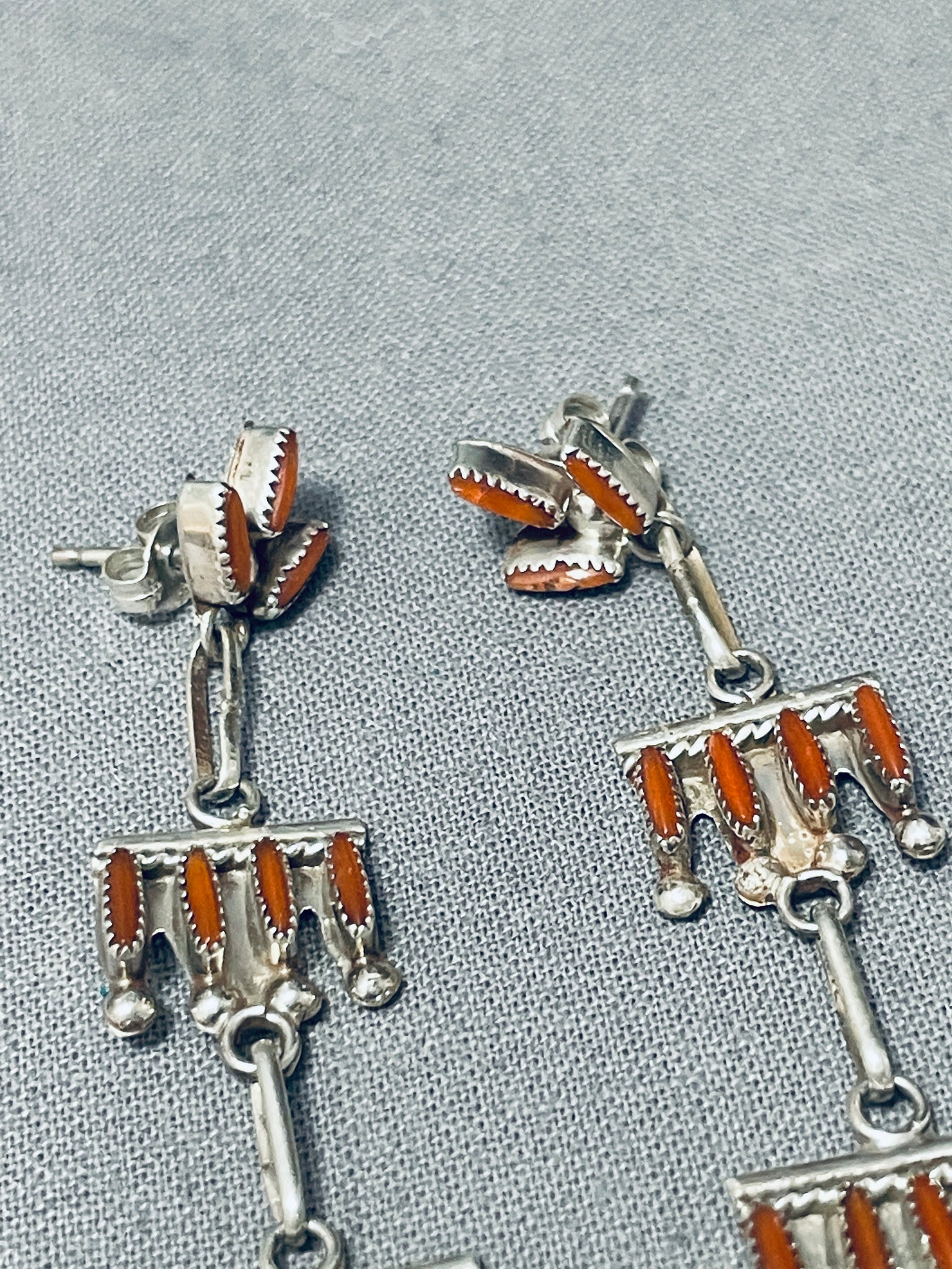 Coral Pueblo Ladder Native American Zuni Sterling Silver Earrings