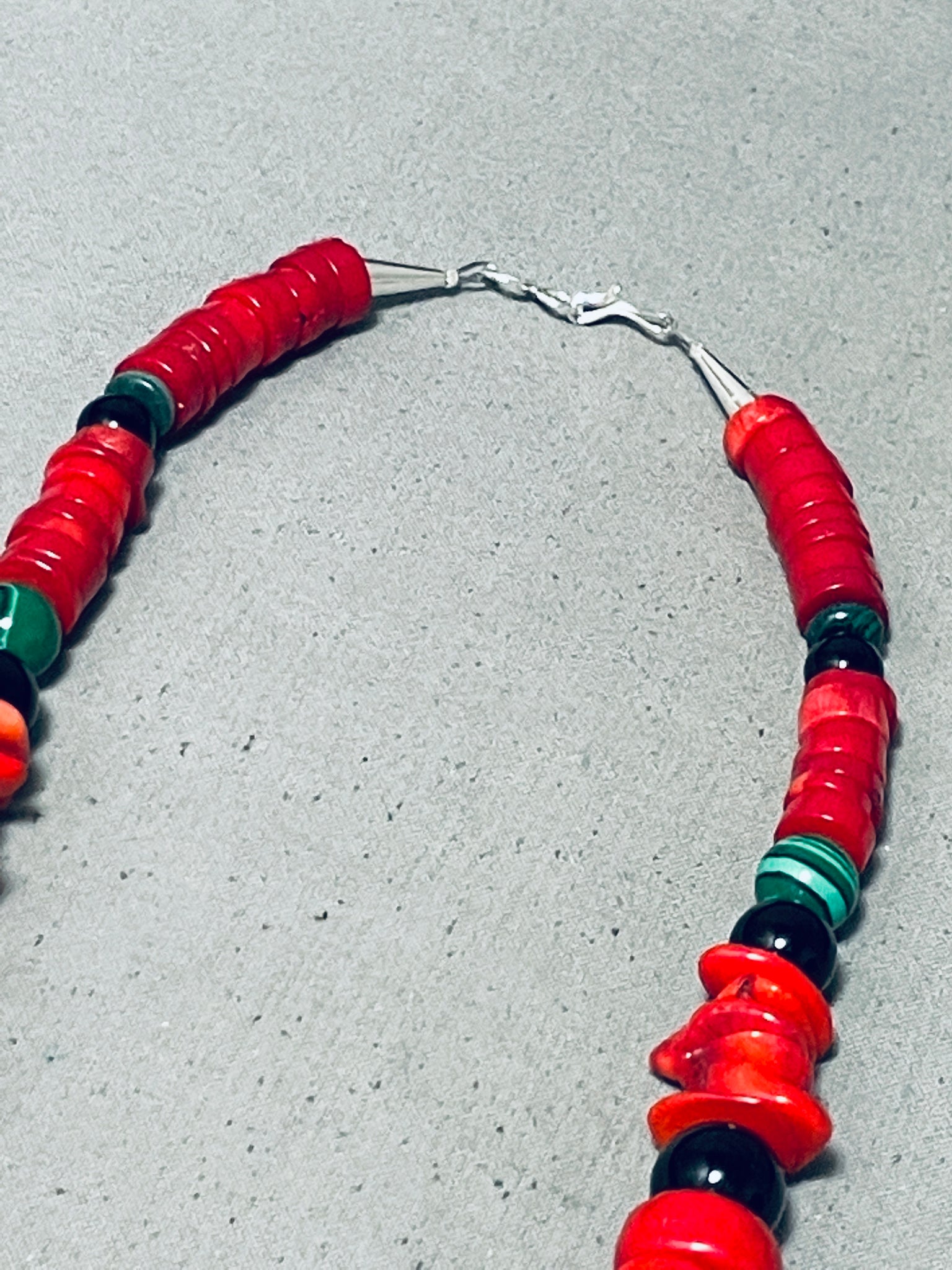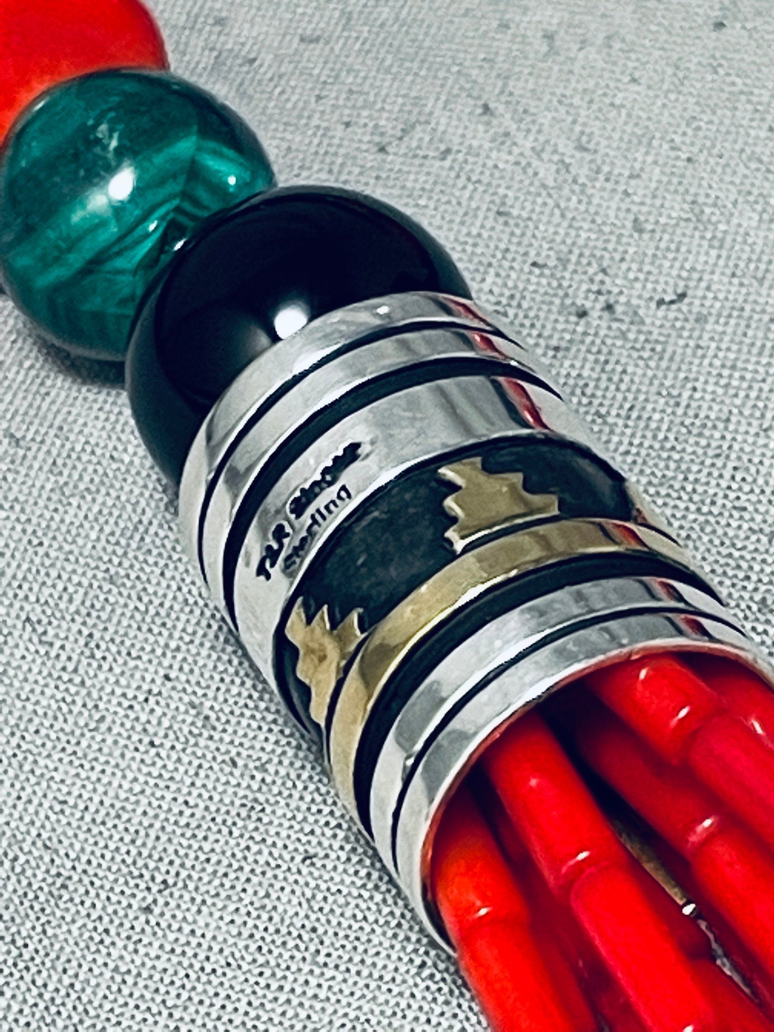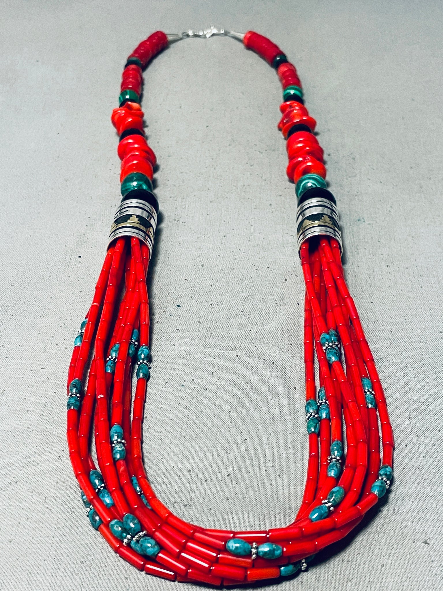 Coral Singer Native American Navajo Turquoise Sterling Silver Gold Necklace