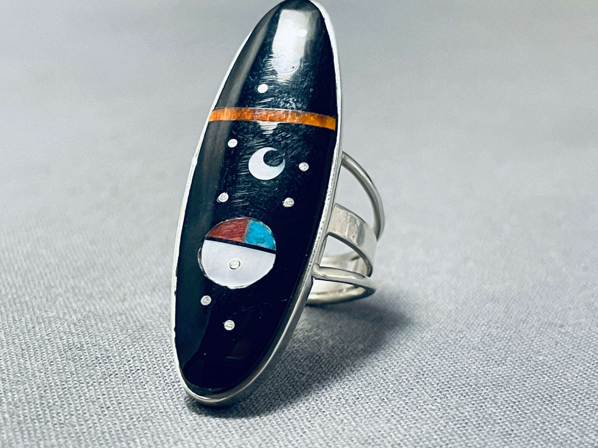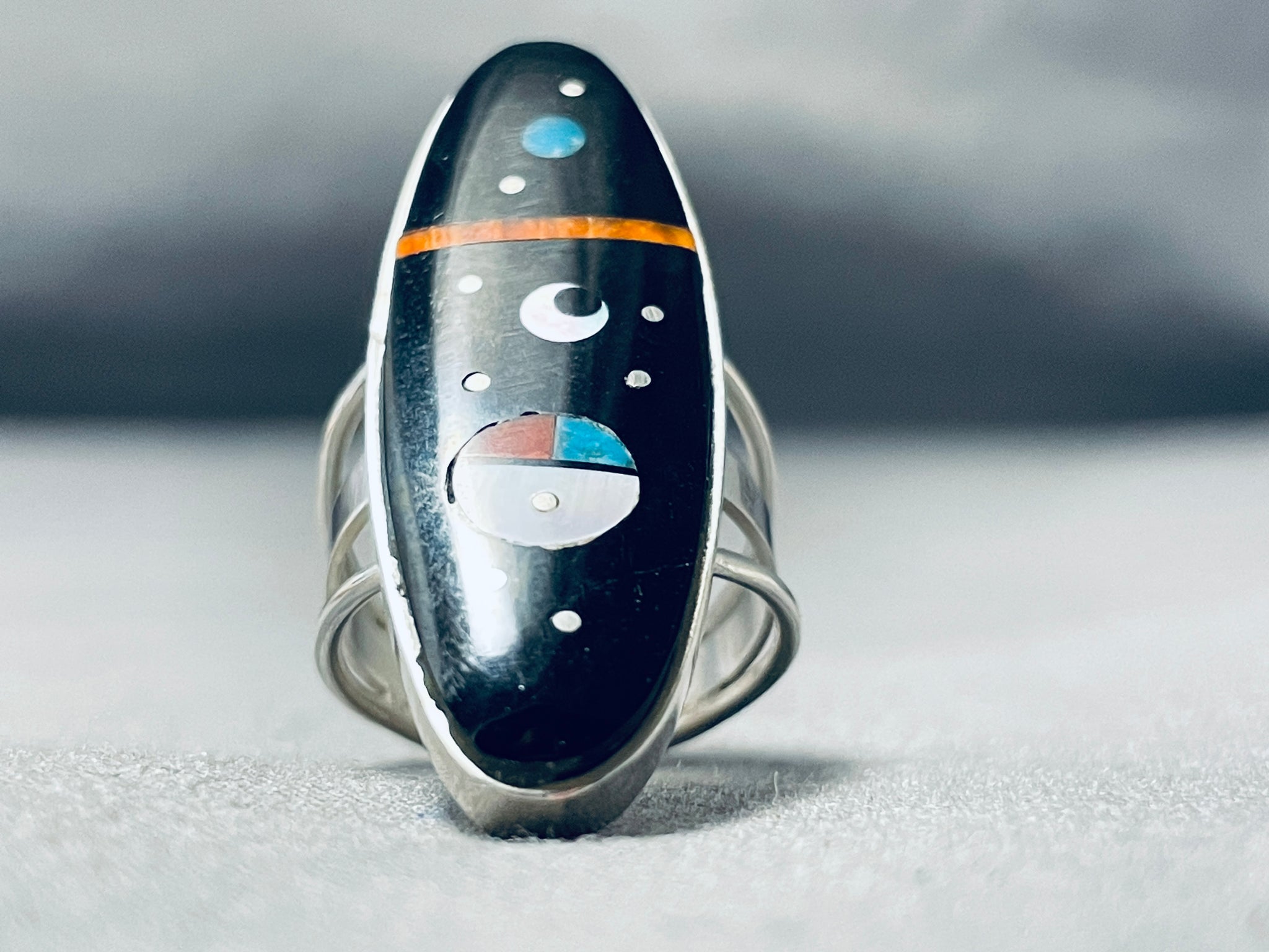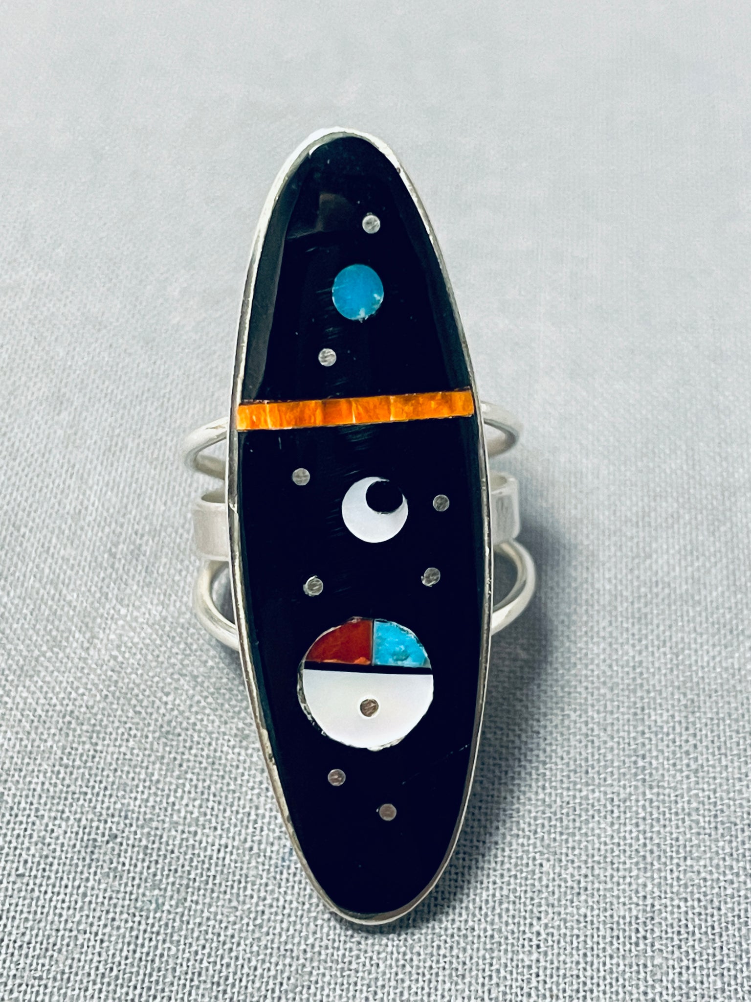 Cosmic Native American Navajo Turquoise Coral Sterling Silver Ring