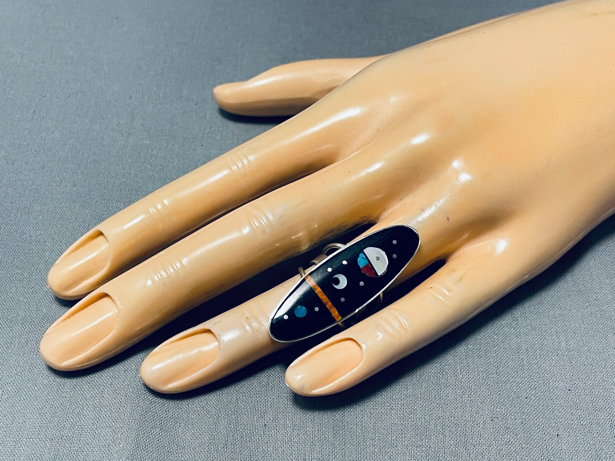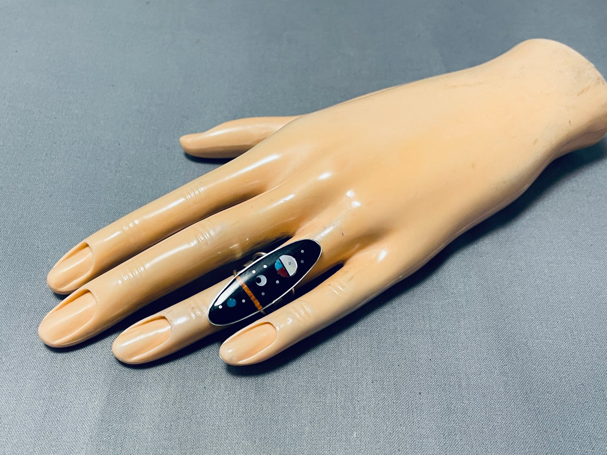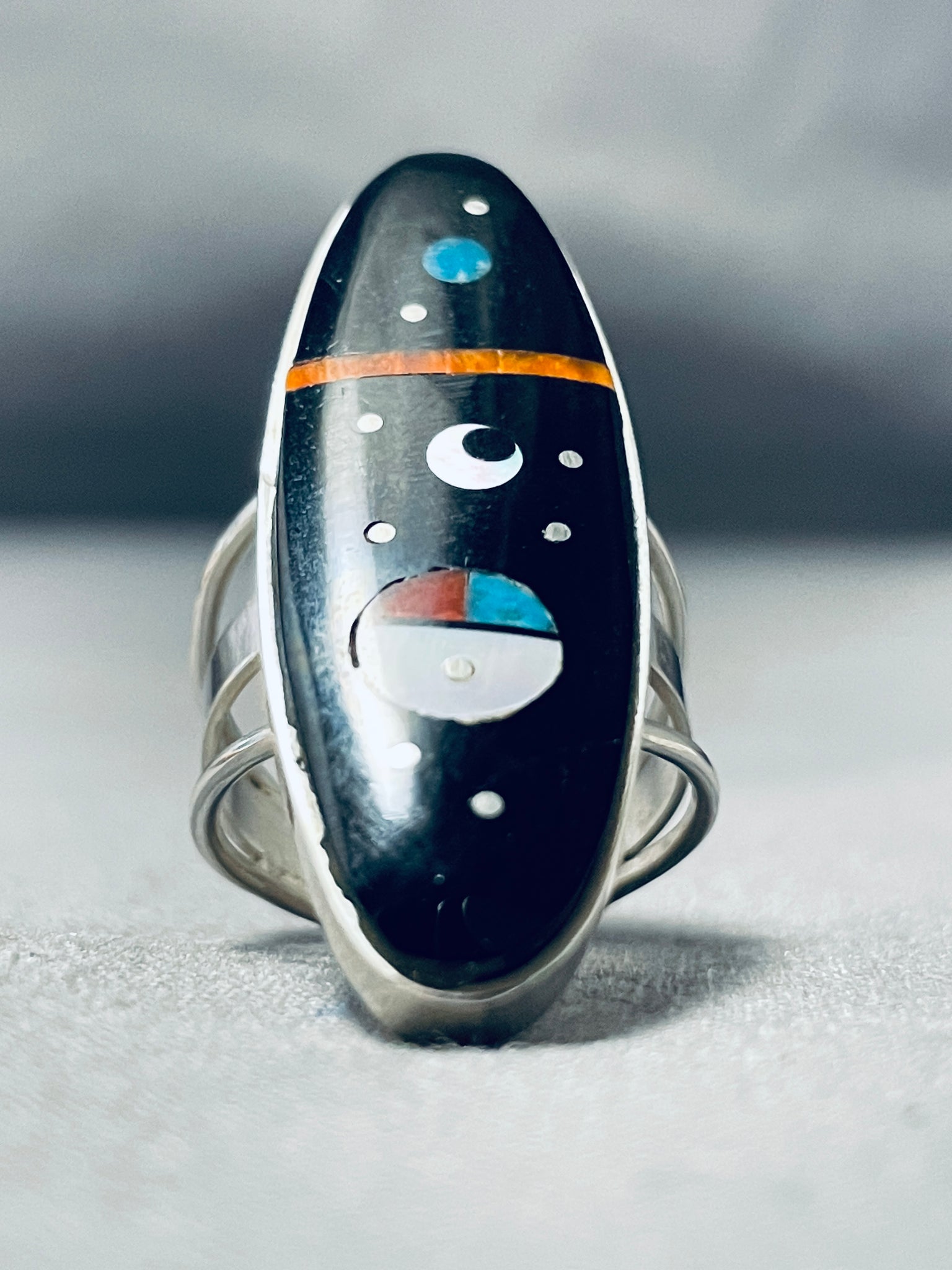 Cosmic Native American Navajo Turquoise Coral Sterling Silver Ring