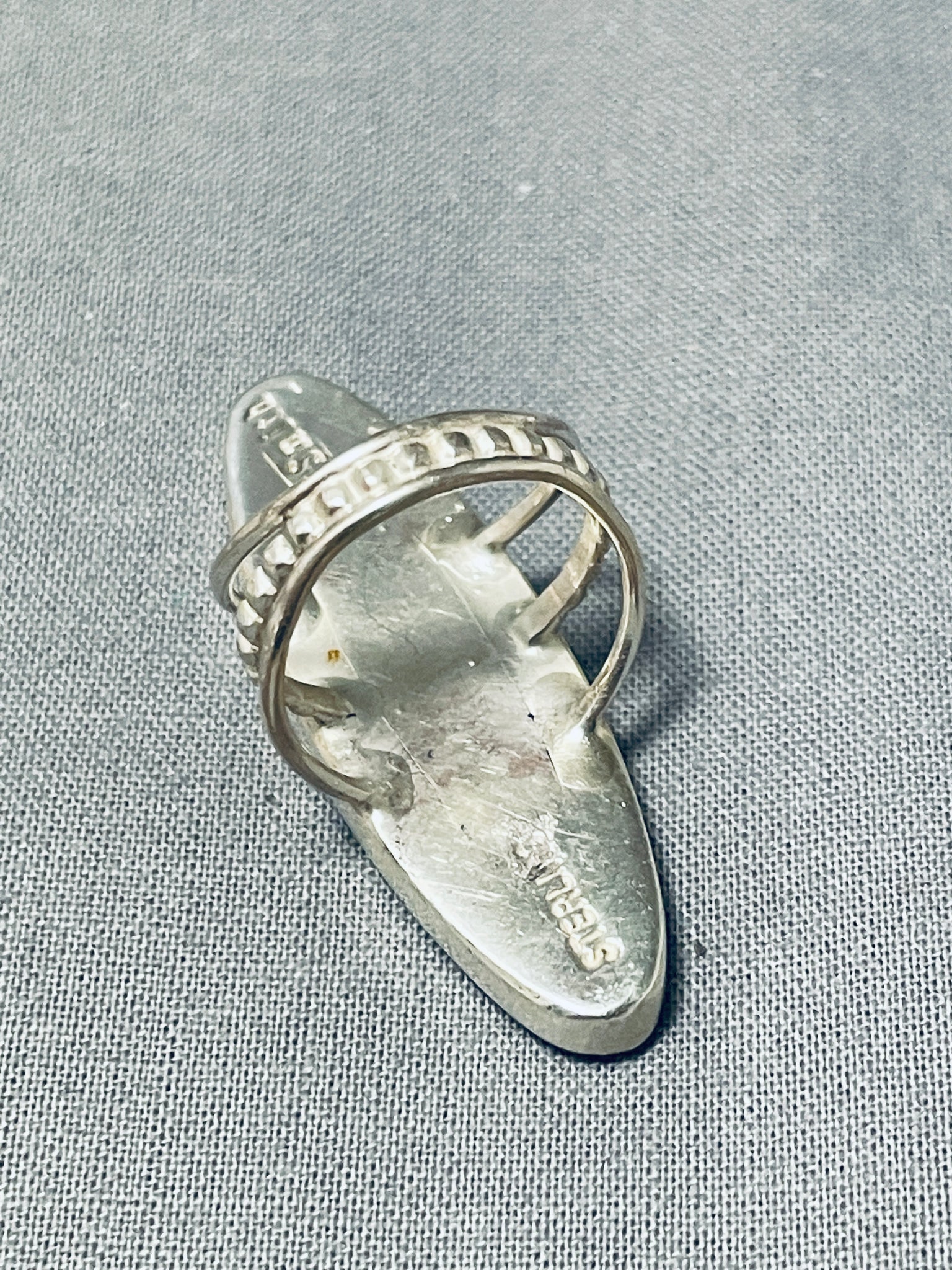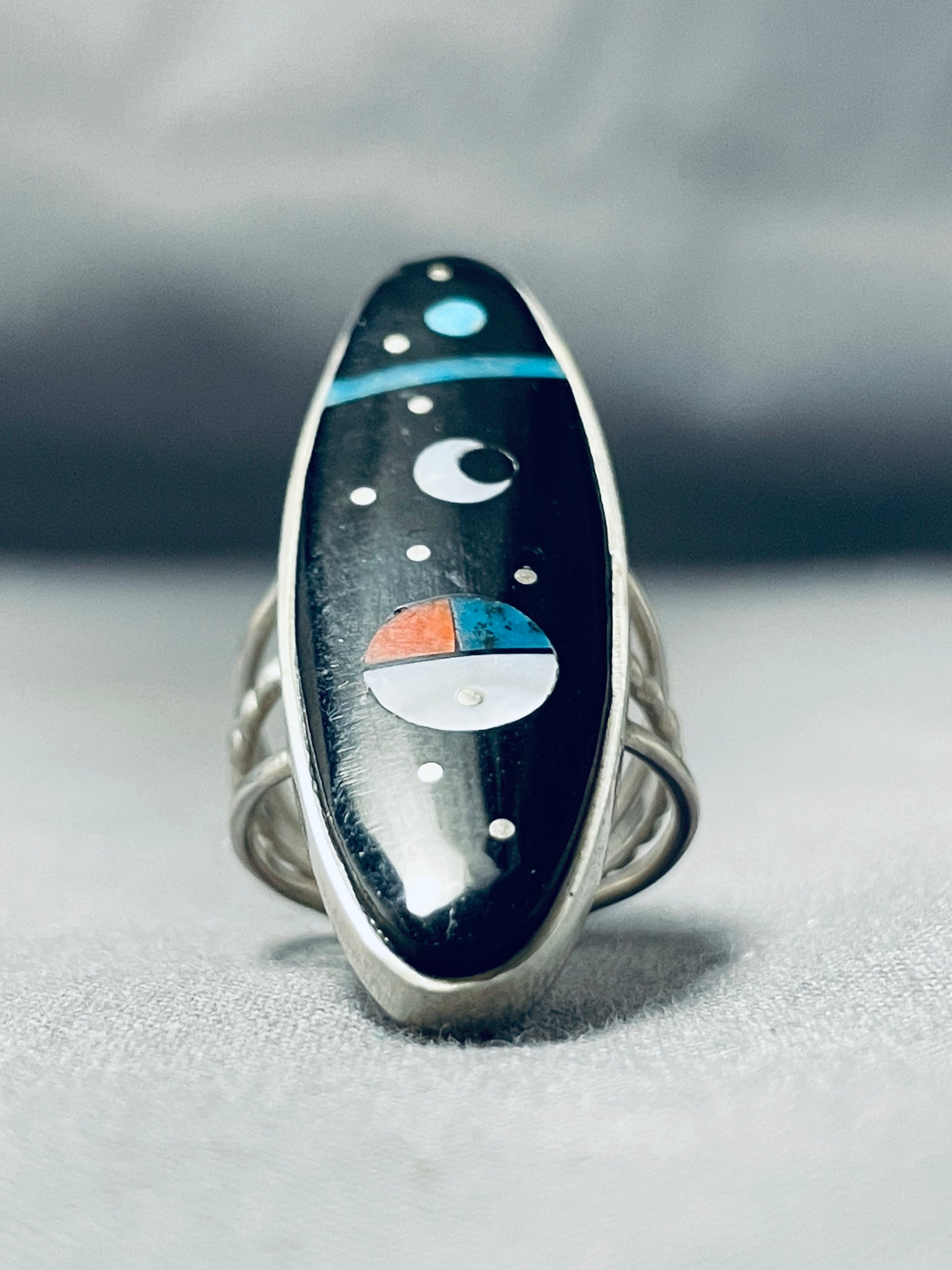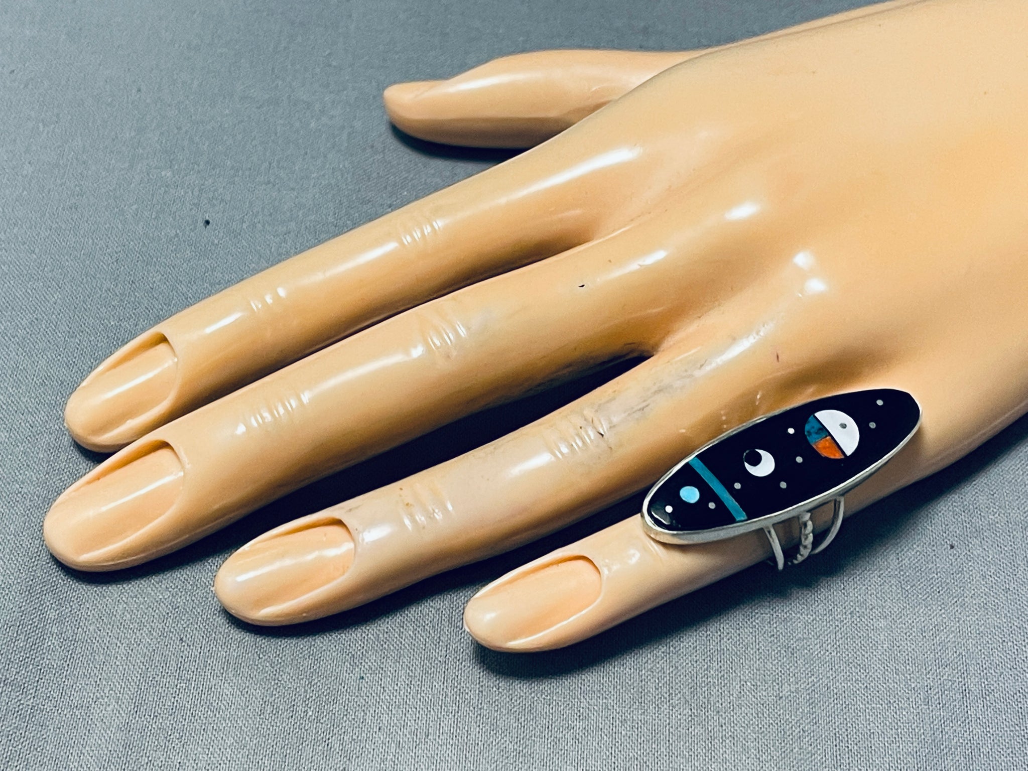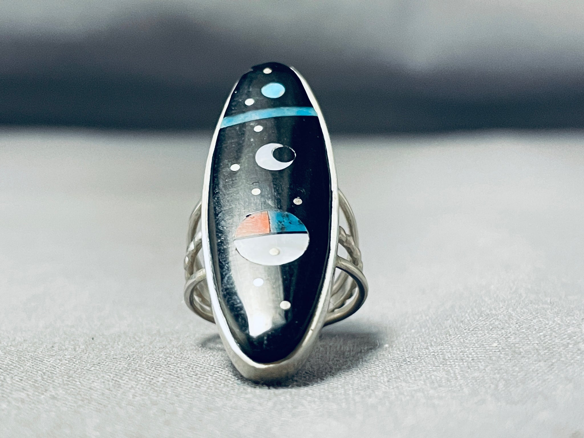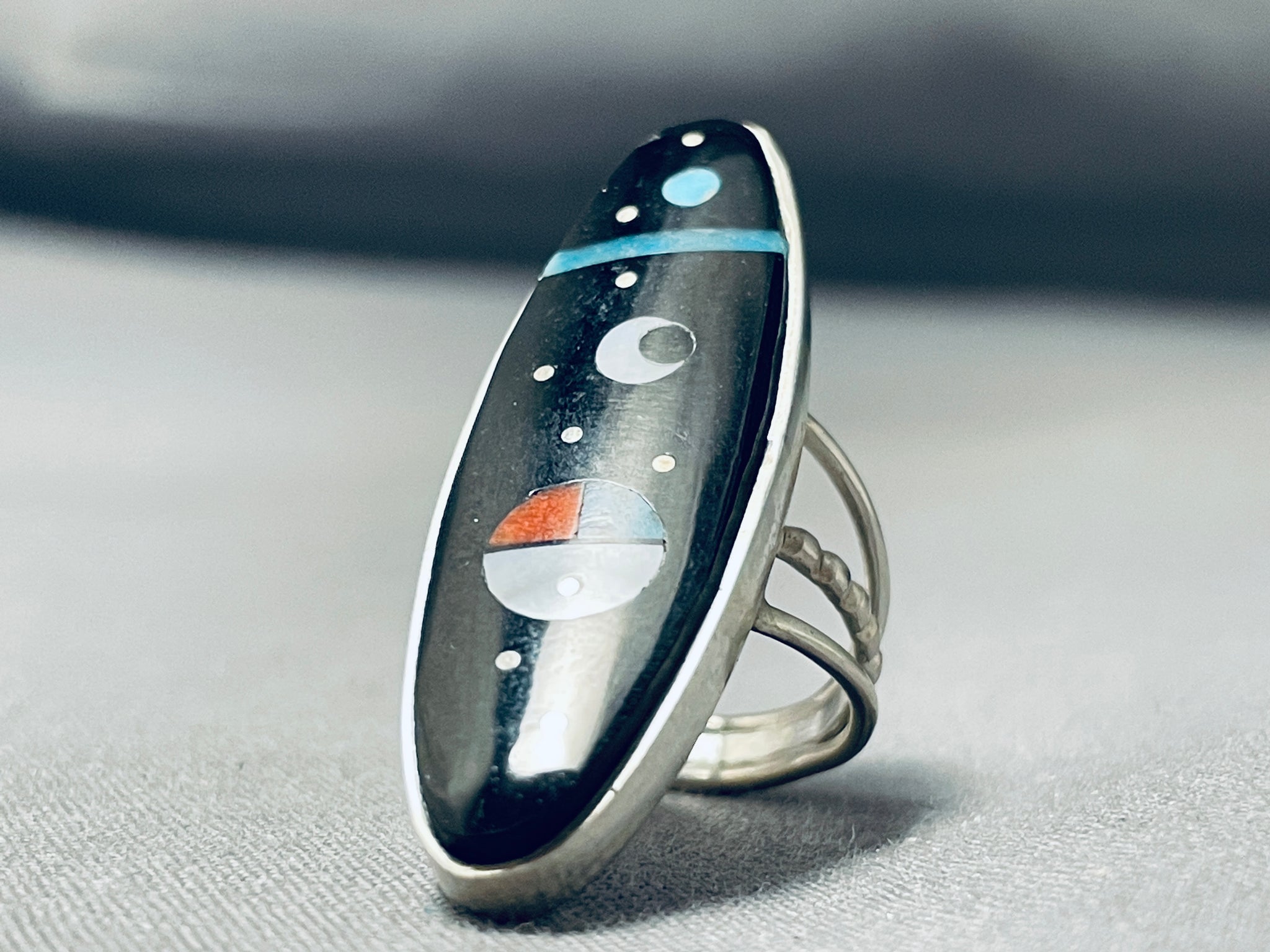 Cosmic Native American Navajo Turquoise Coral Sterling Silver Sunface Ring