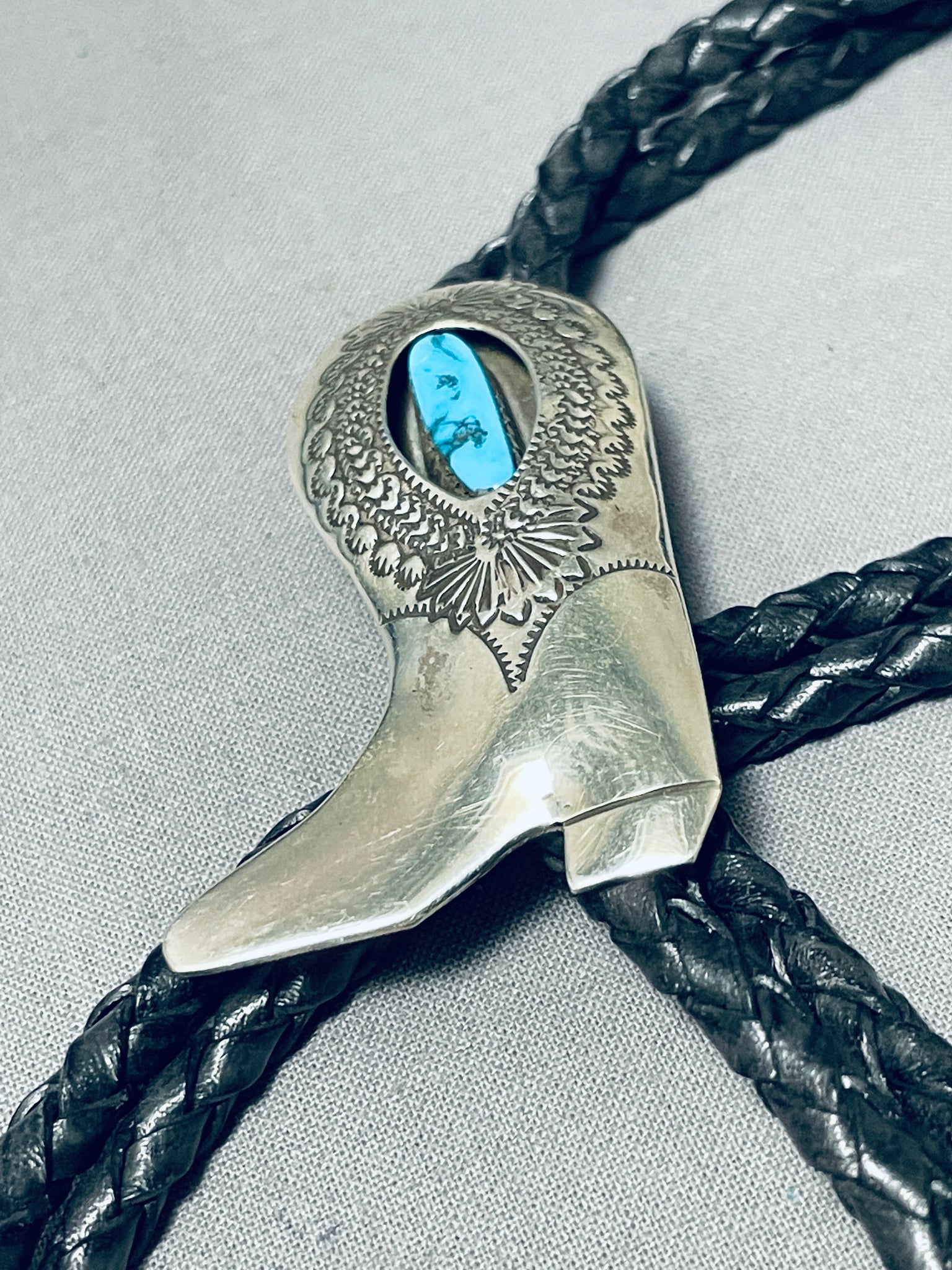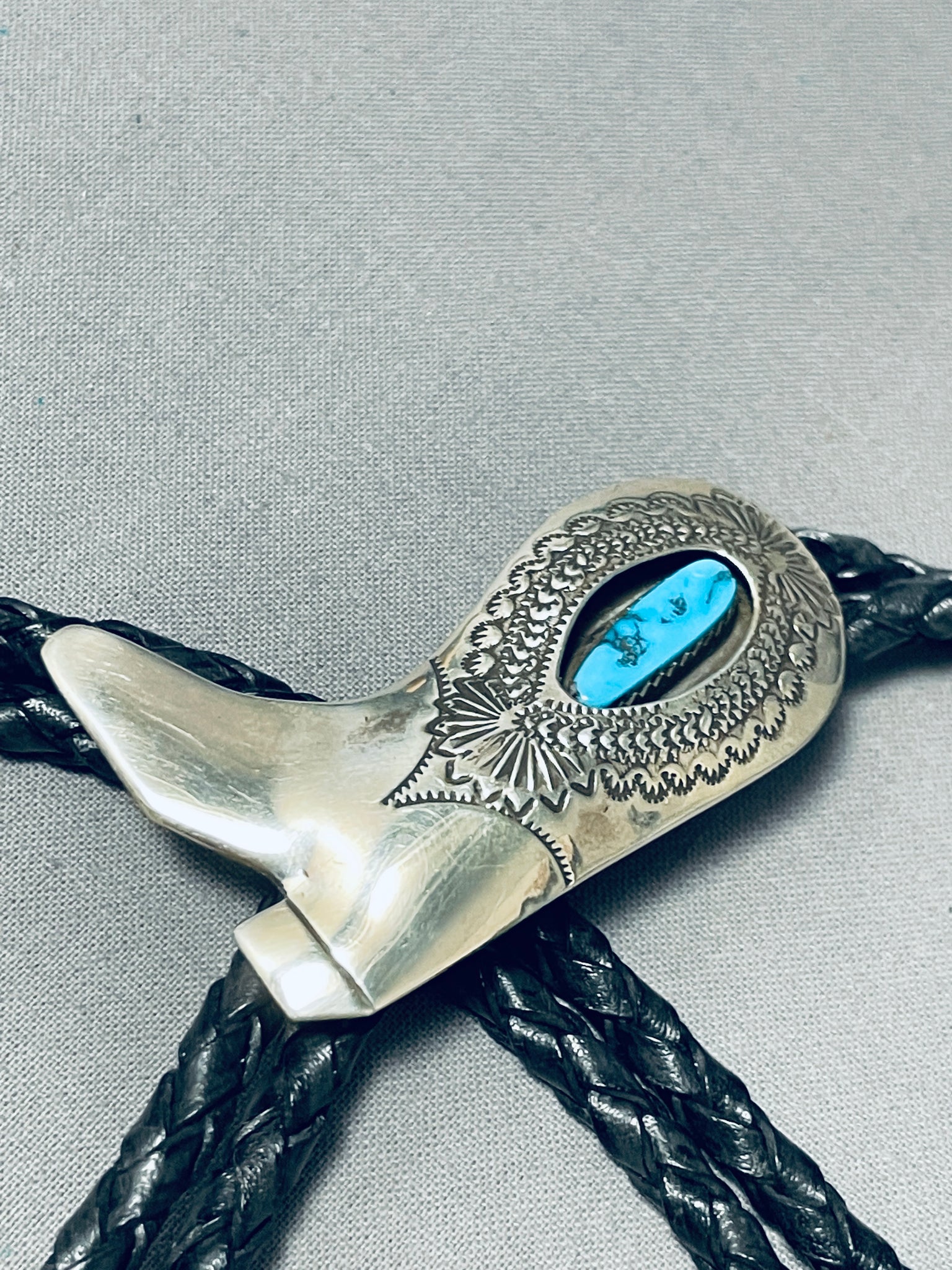 Cowboy Boot!! Vintage Native American Navajo Turquoise Sterling Silver Bolo Tie