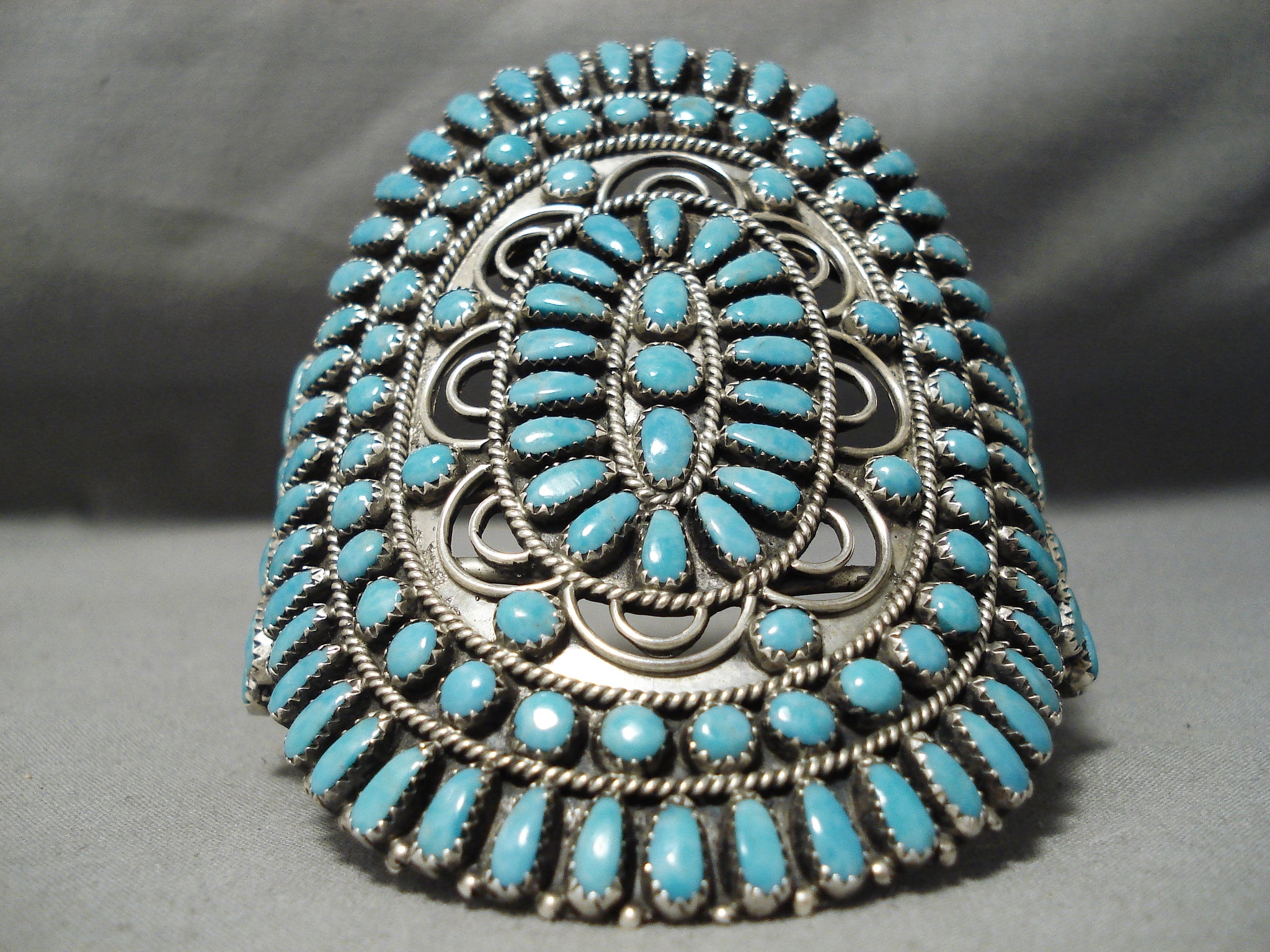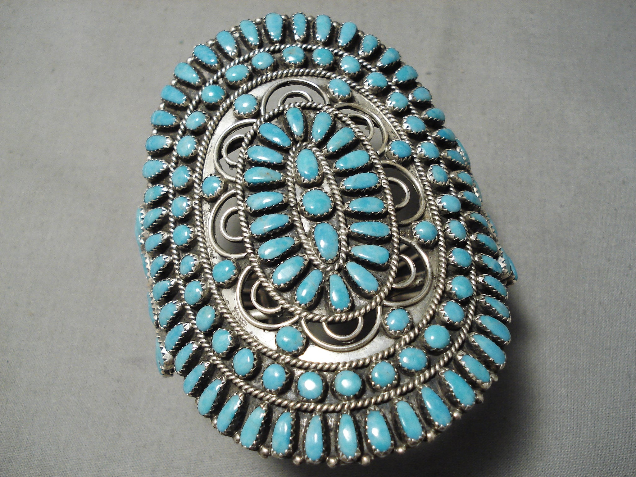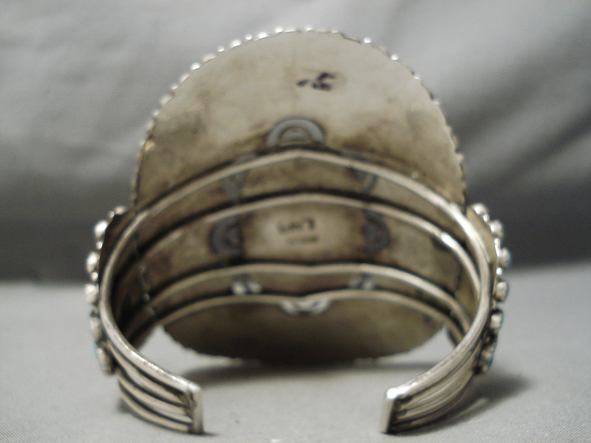 Craziest Vintage Native American Navajo Larry Moses Begay Turquoise Sterling Silver Bracelet