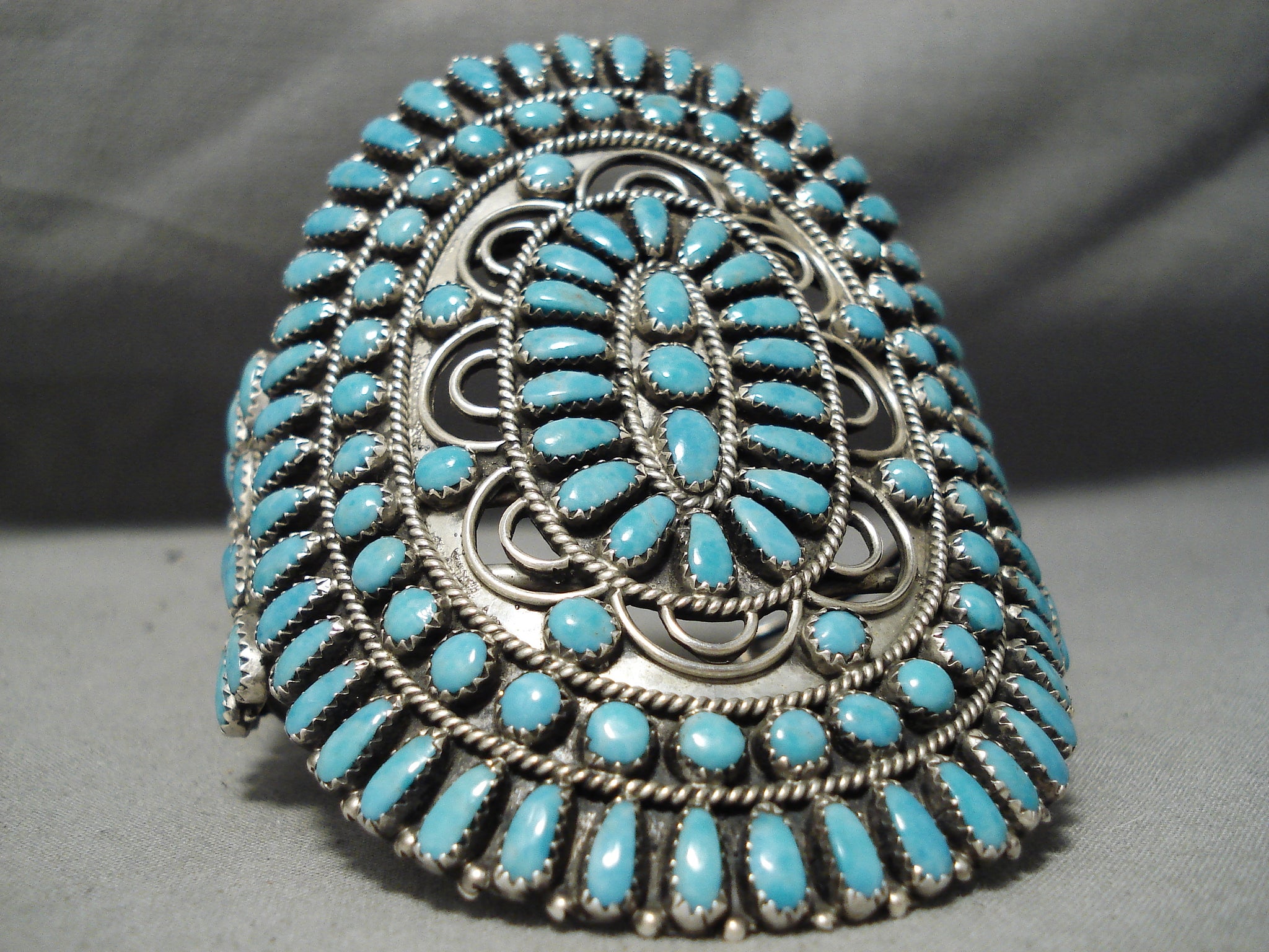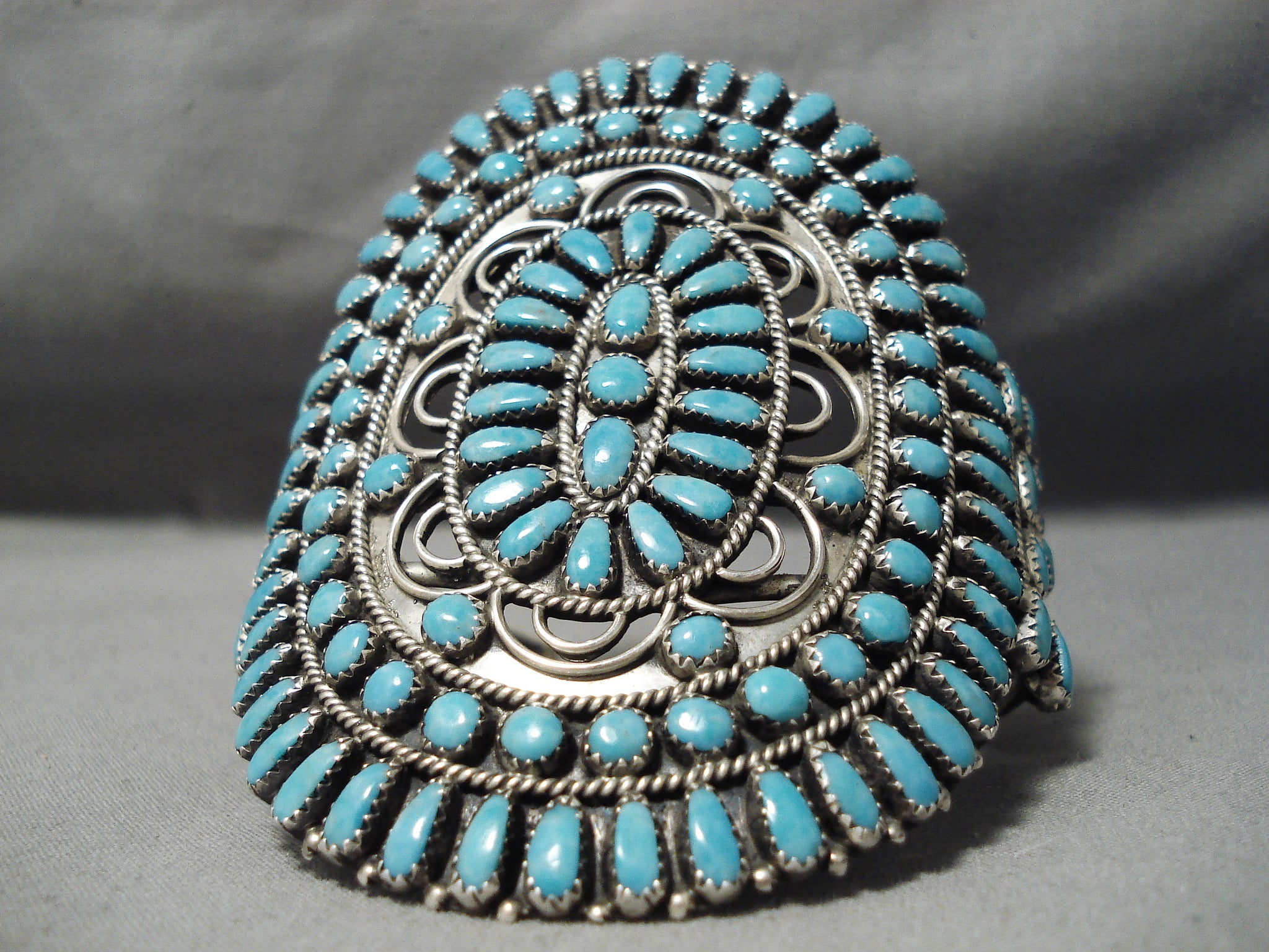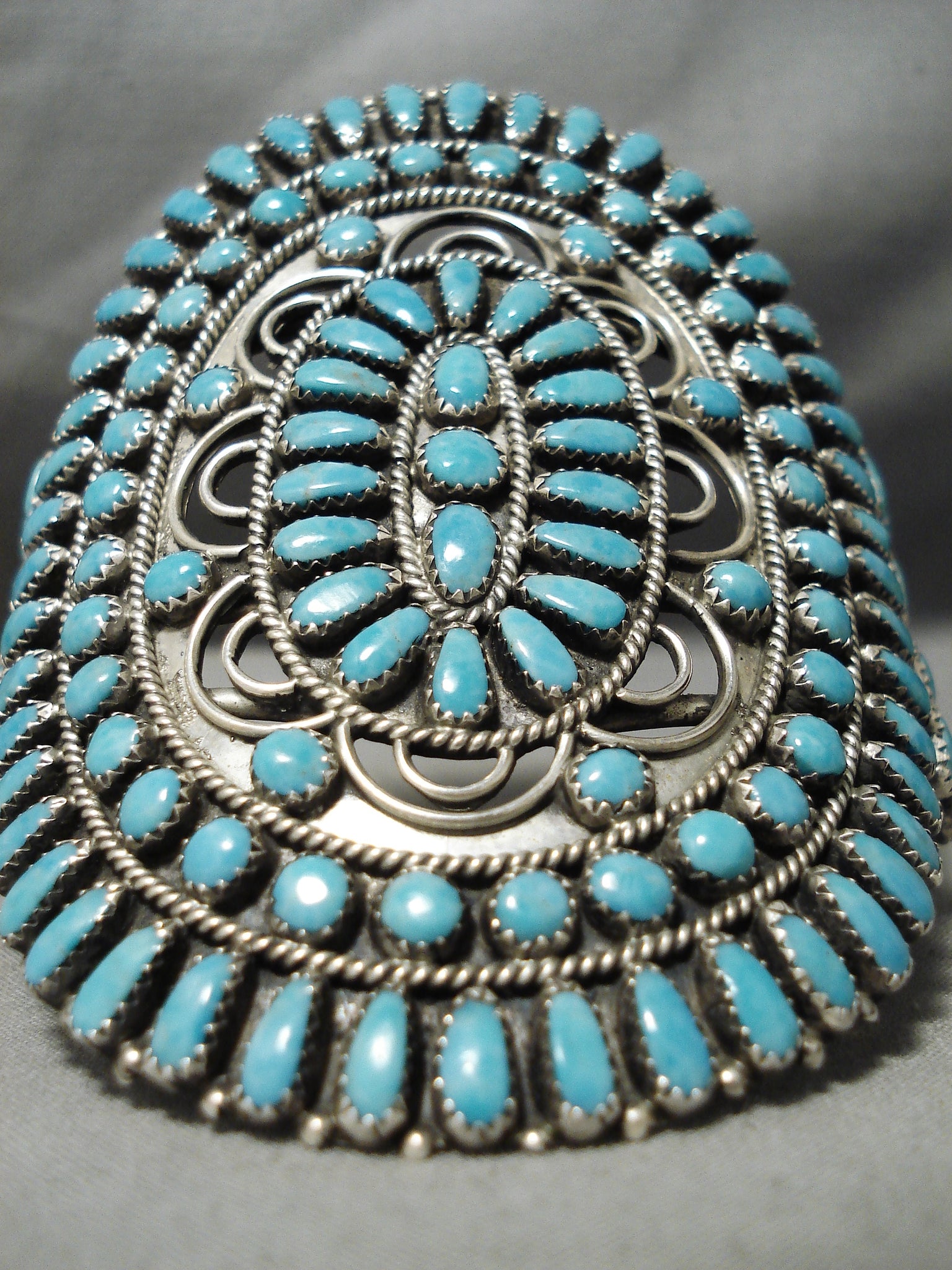 Craziest Vintage Native American Navajo Larry Moses Begay Turquoise Sterling Silver Bracelet
