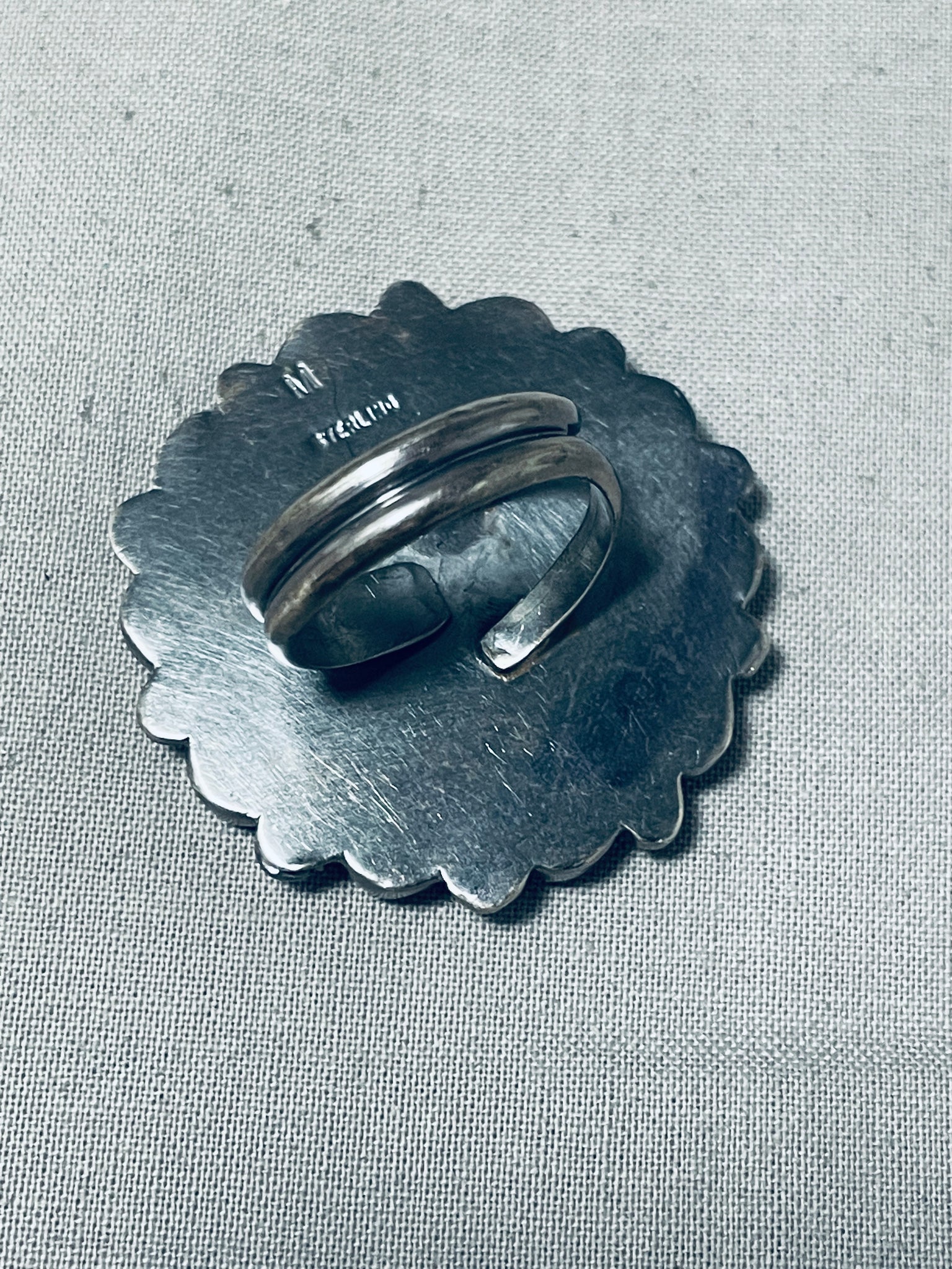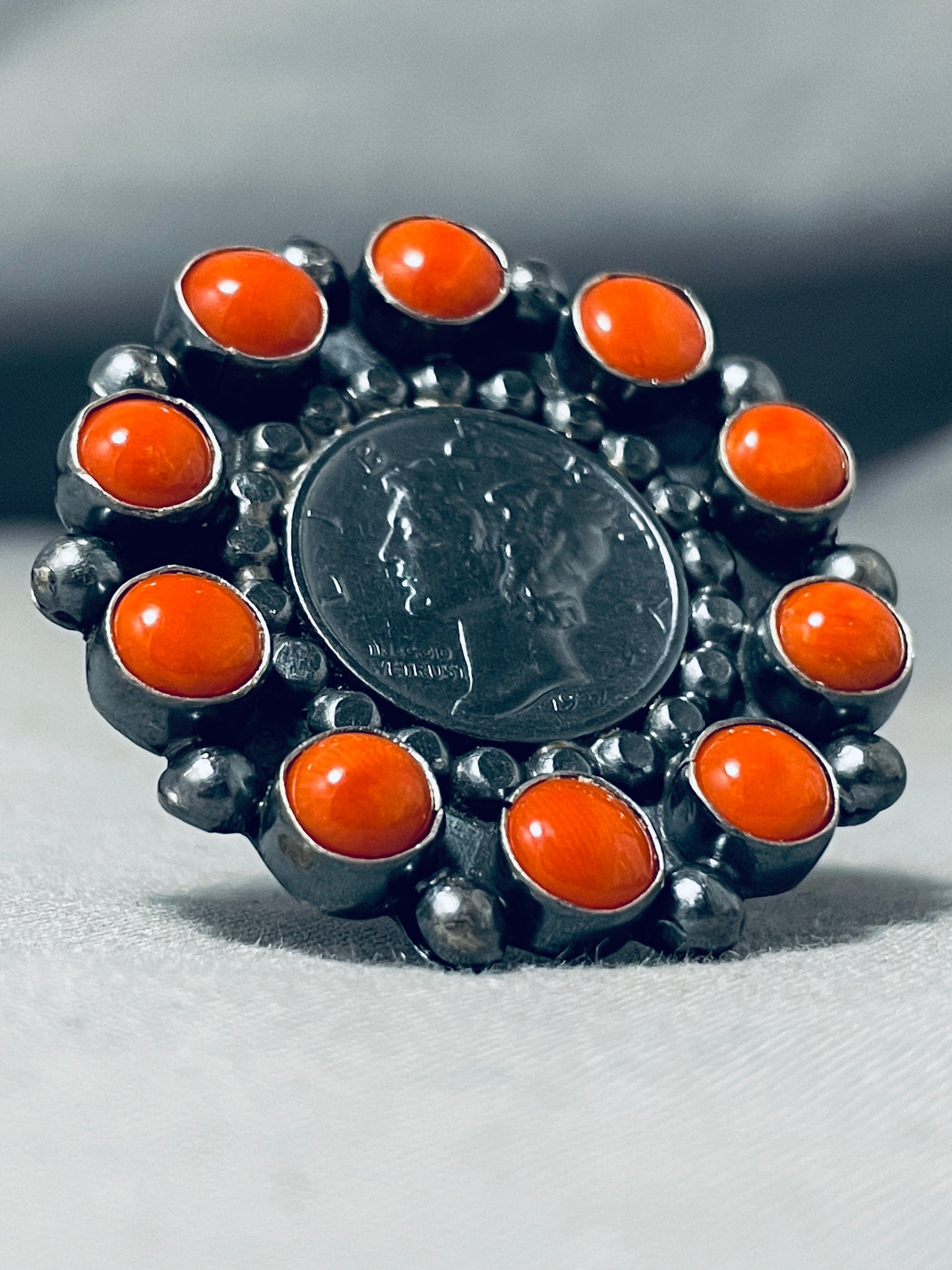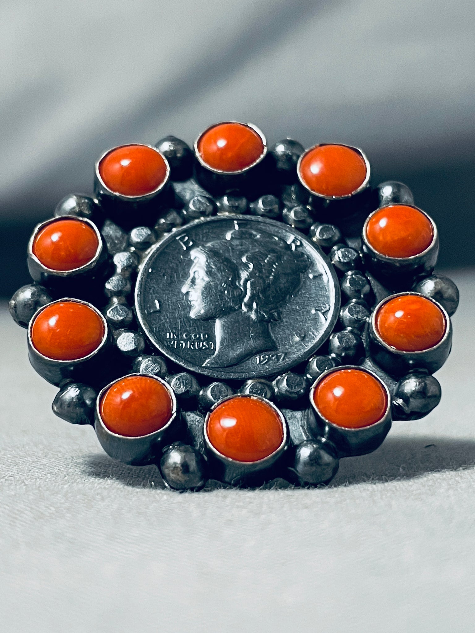Crazy Best Navajo Coral Coin Sterling Silver Native American Ring