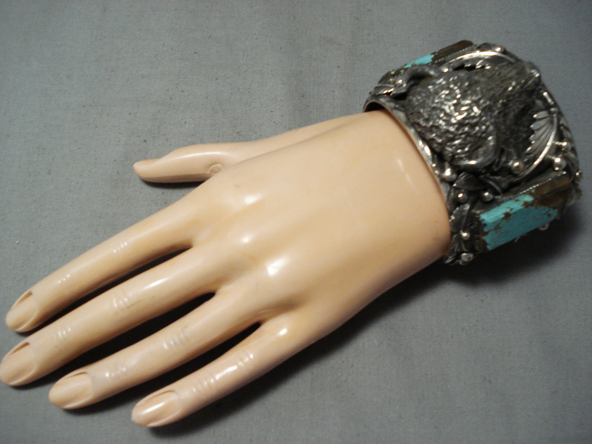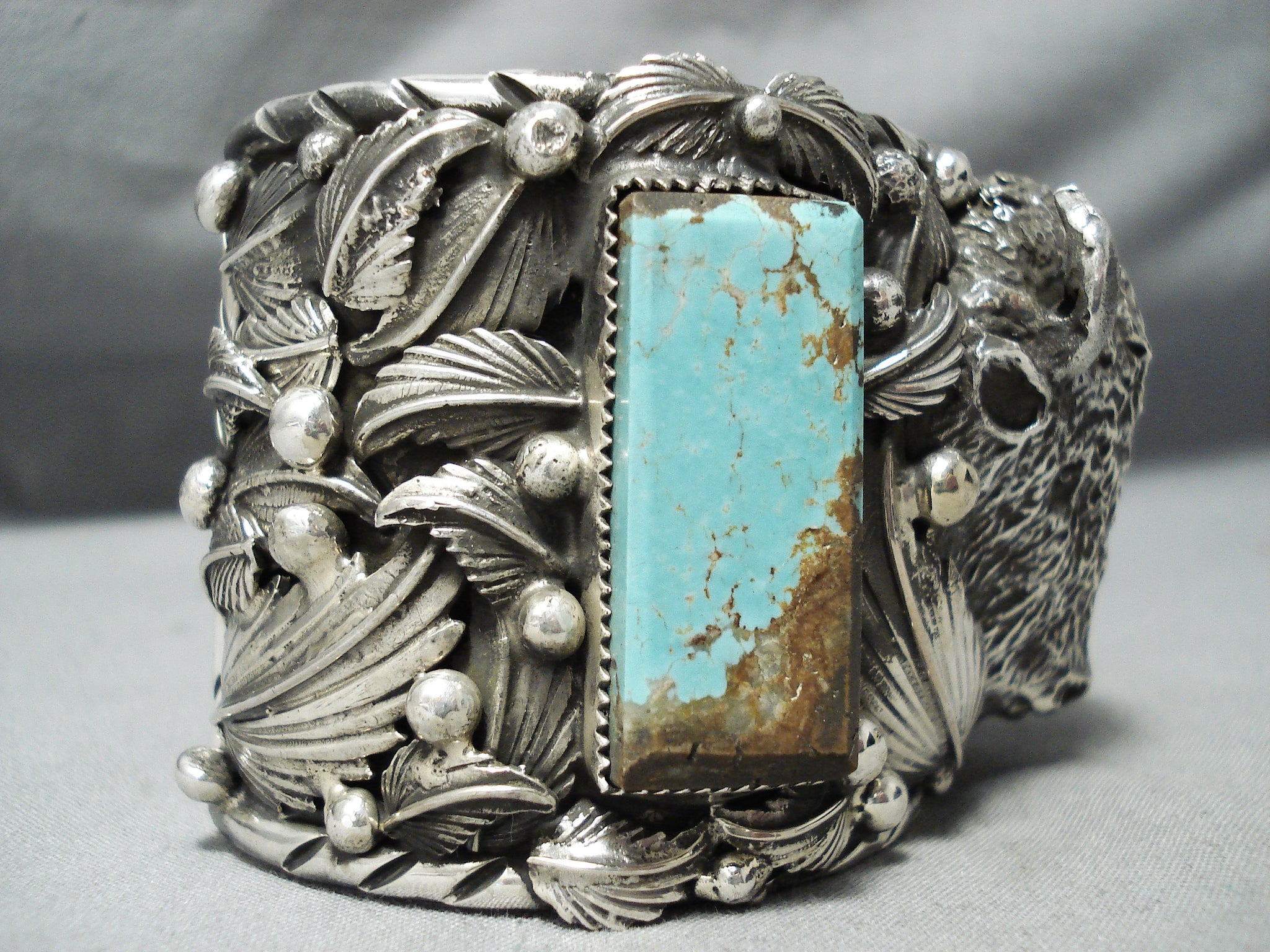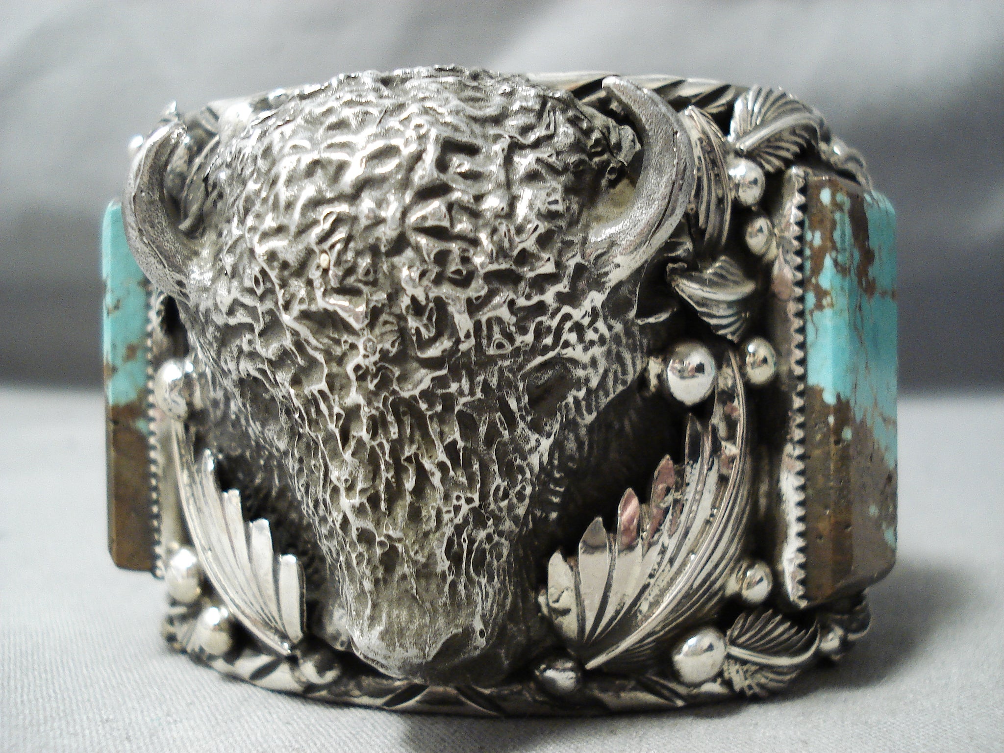 Crazy Buffalo Huge Native American Navajo Turquoise Sterling Silver Bracelet- 210 Grams!