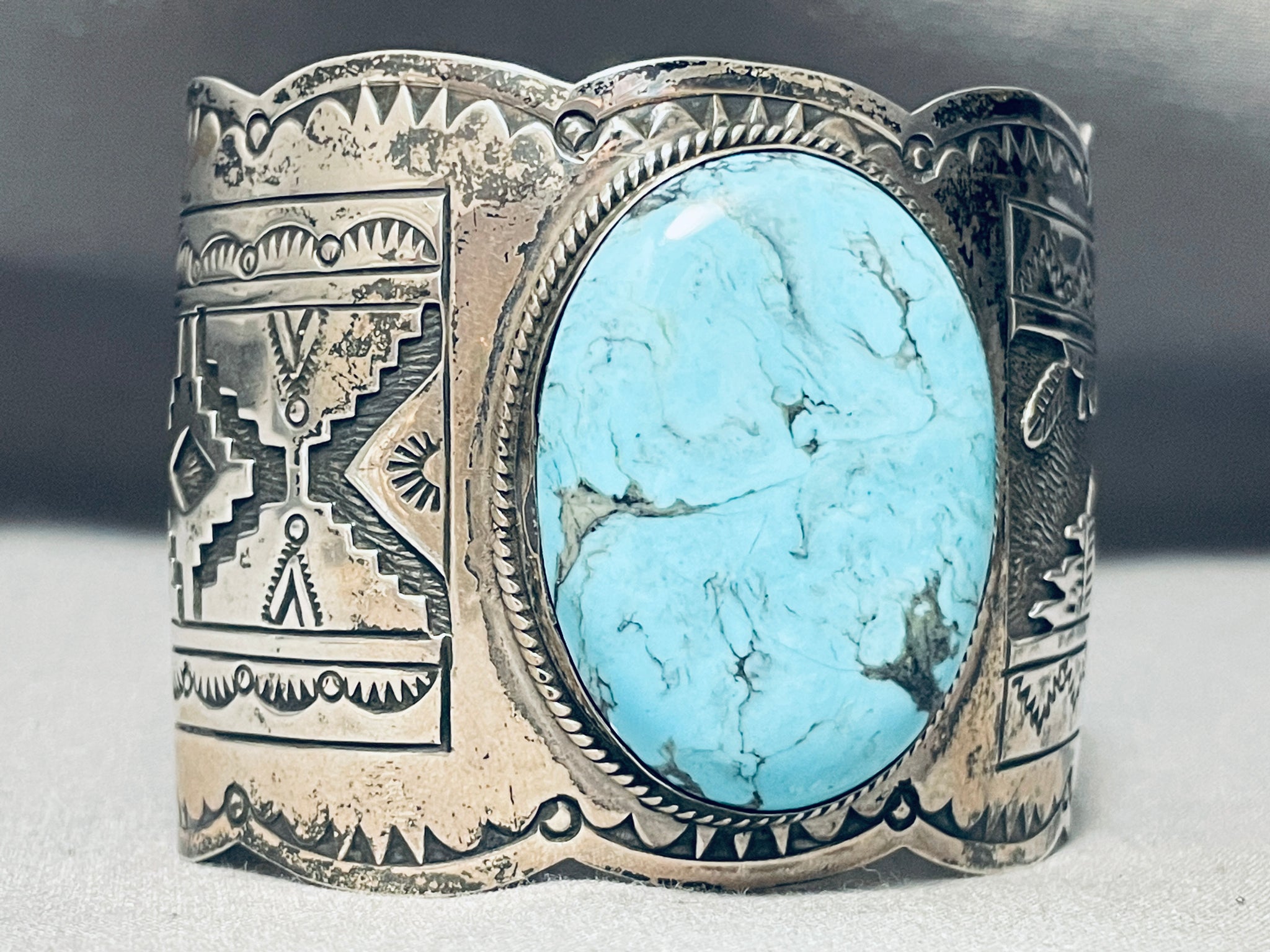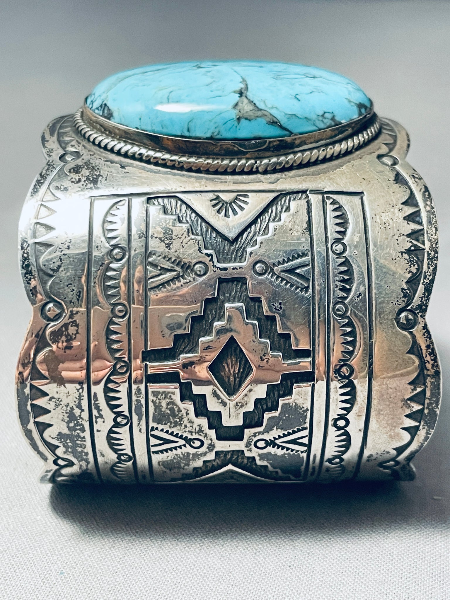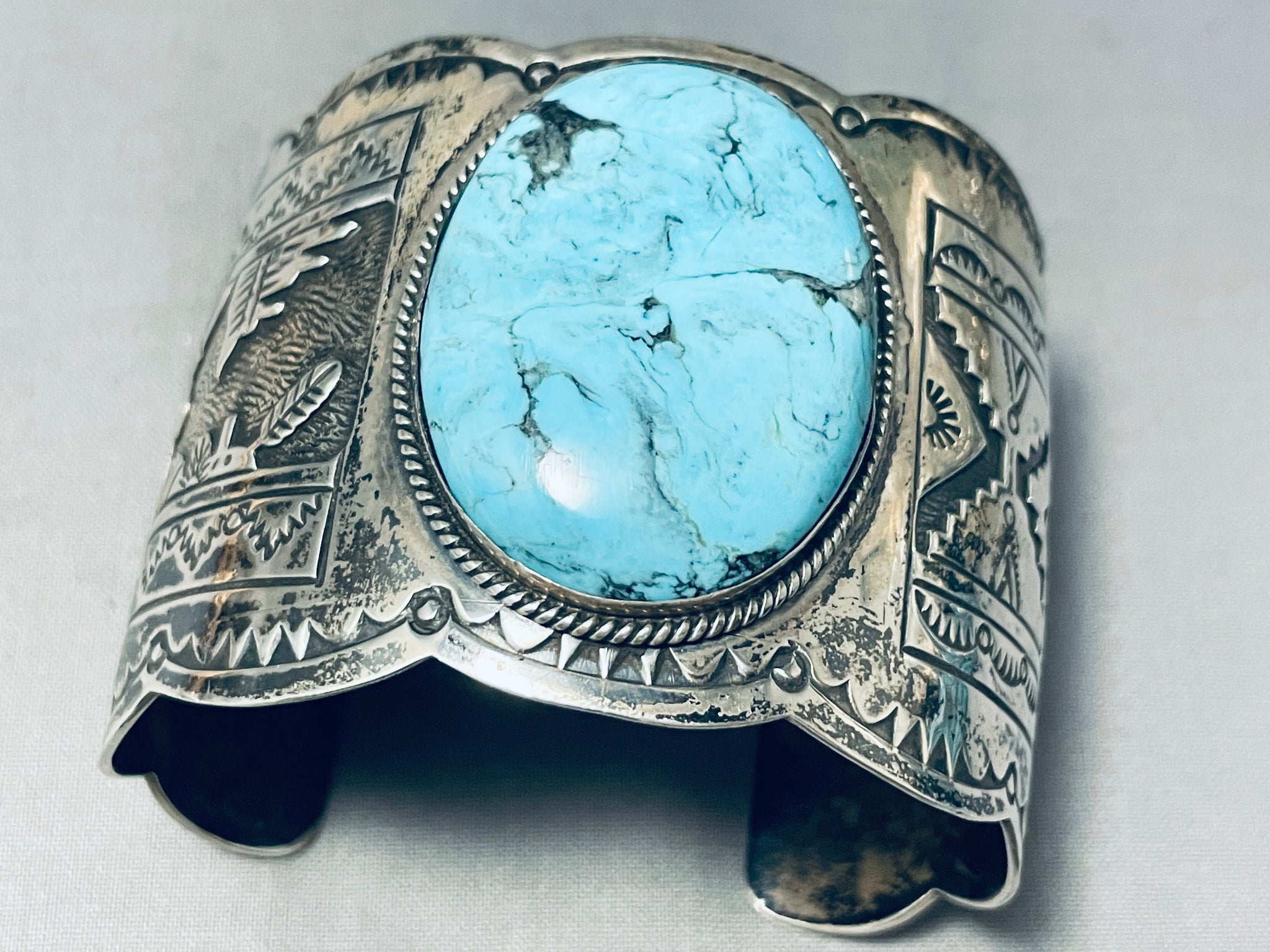 Crazy Workmanship Vintage Native American Navajo Domed Turquoise Sterling Silver Bracelet