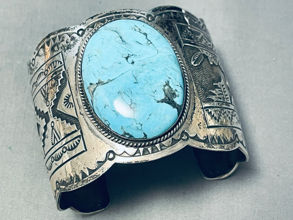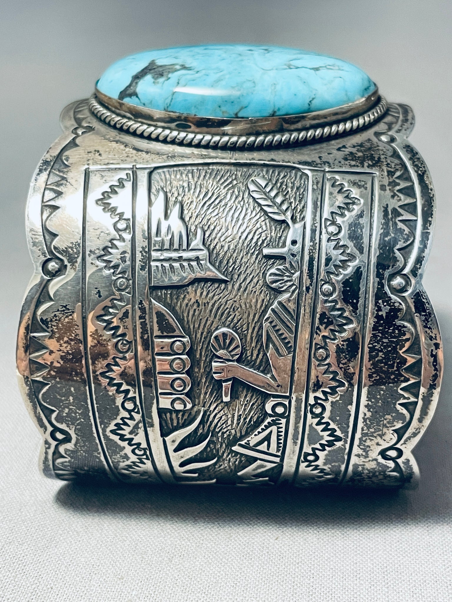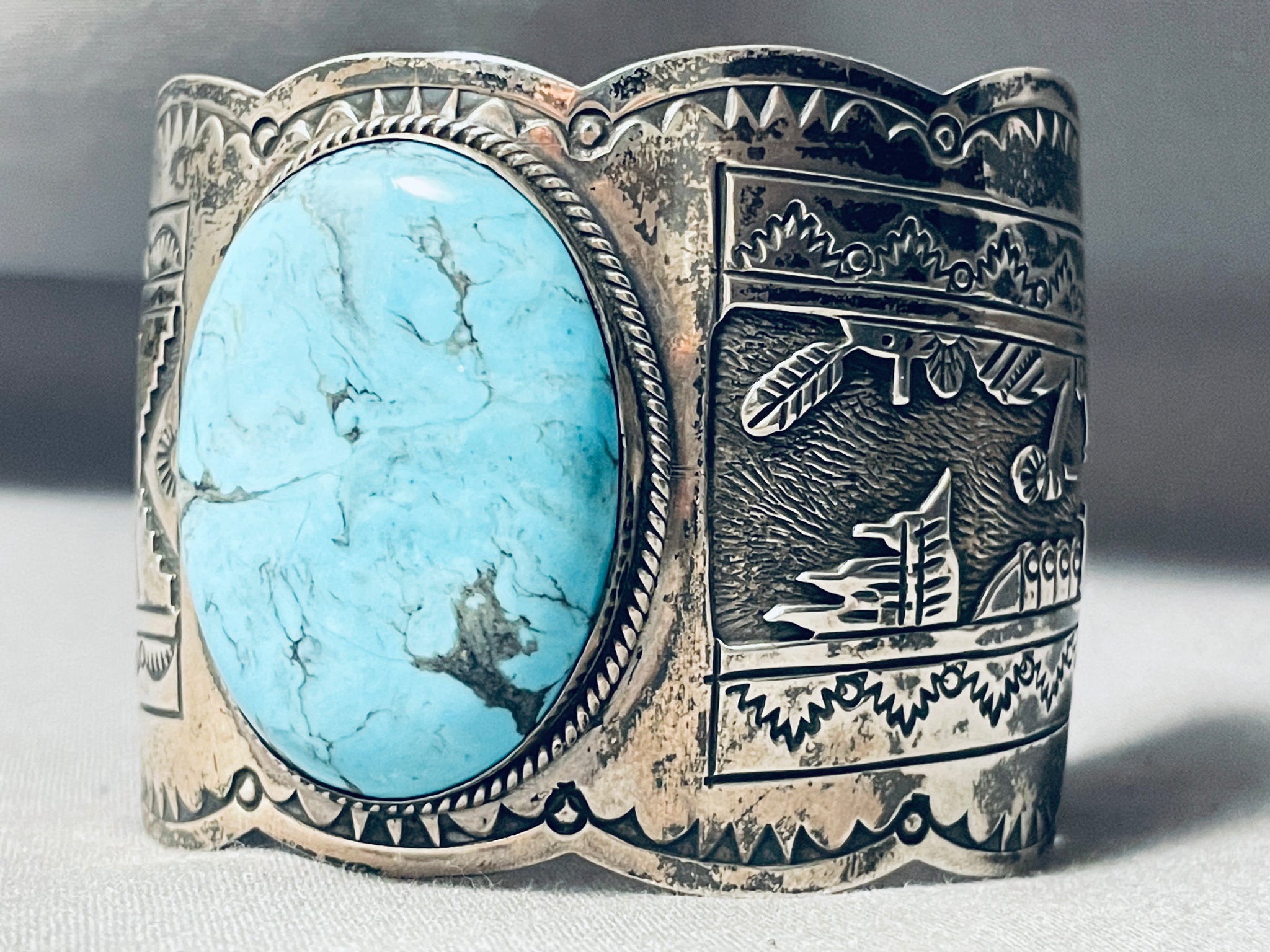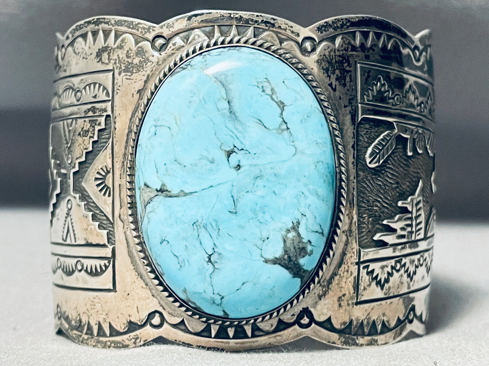 Crazy Workmanship Vintage Native American Navajo Domed Turquoise Sterling Silver Bracelet
