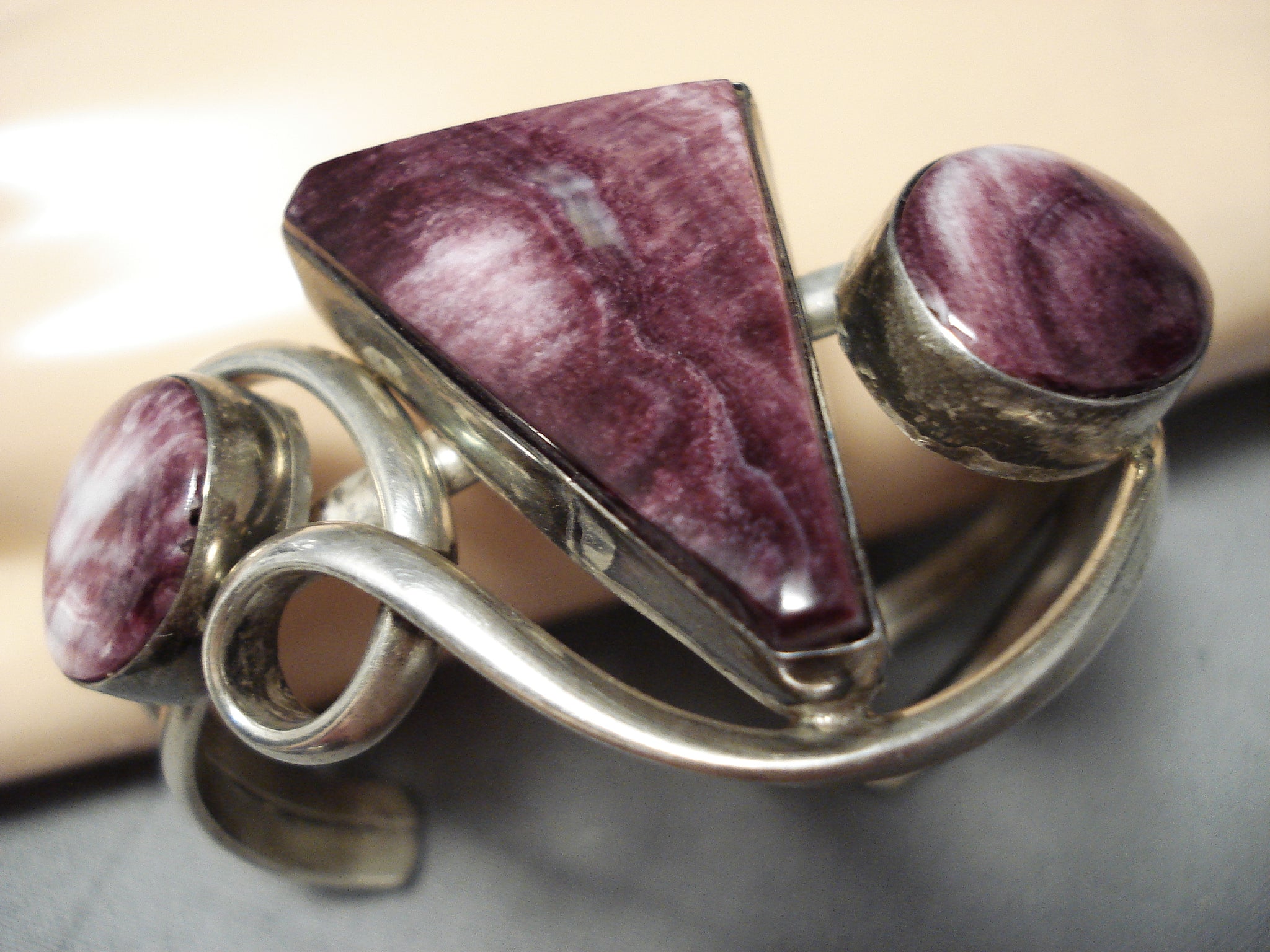 Custom Native American Navajo Purple Spiny Oyster Sterling Silver Bracelet