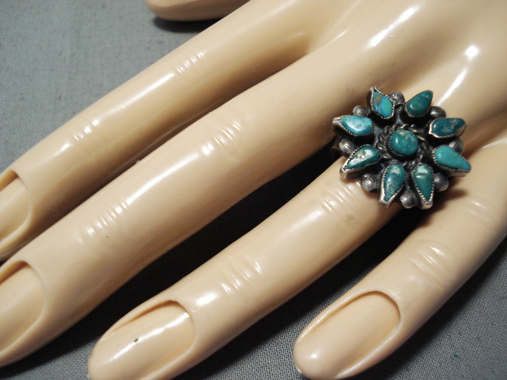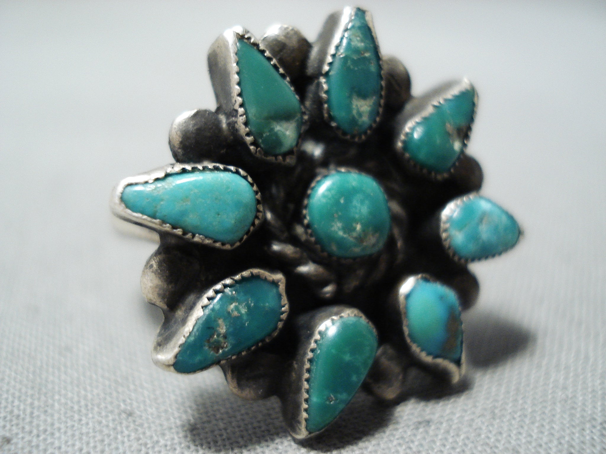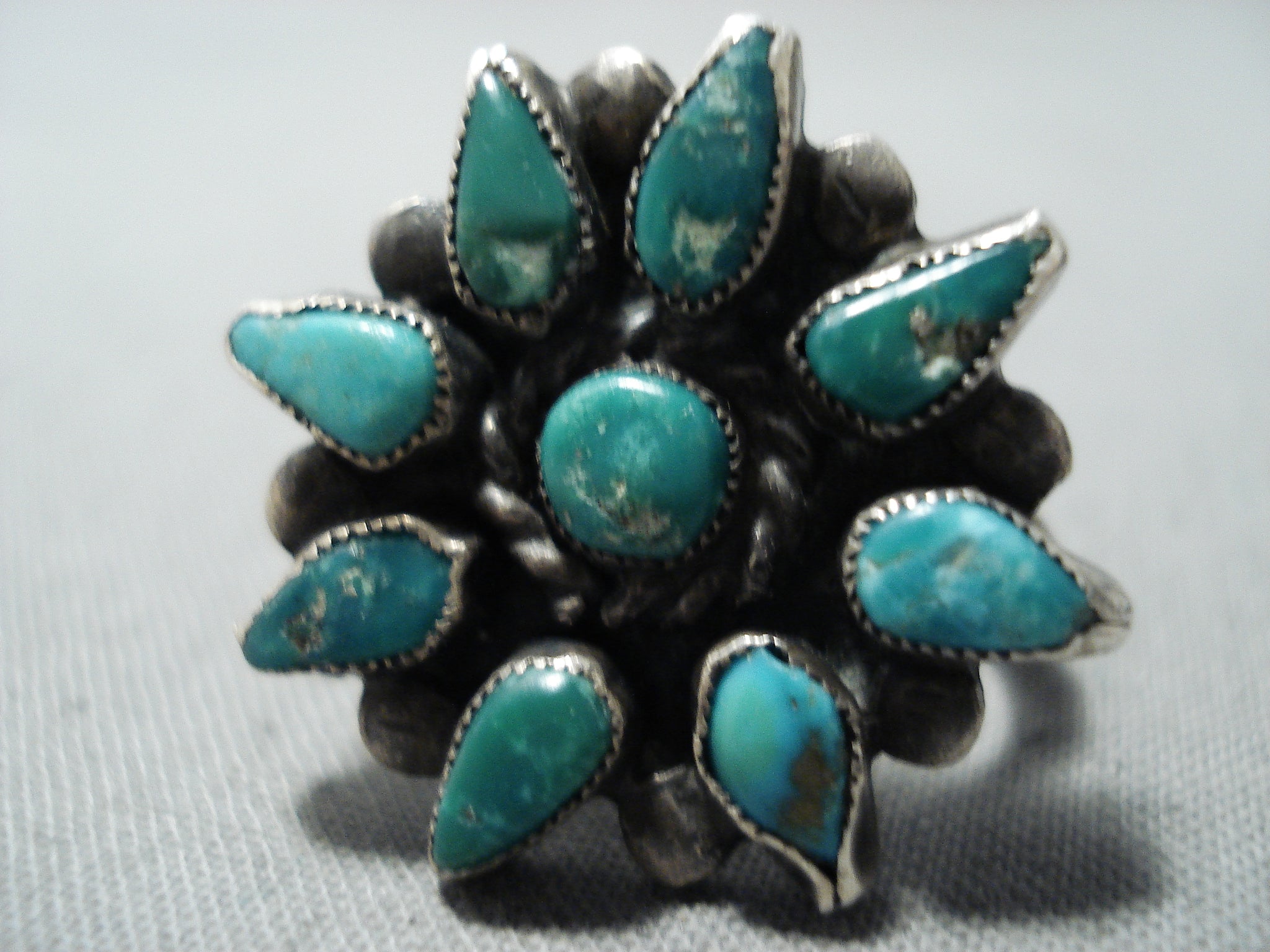 Custom Vintage Native American Navajo Old Kingman Cerillos Turquoise Sterling Silver Ring