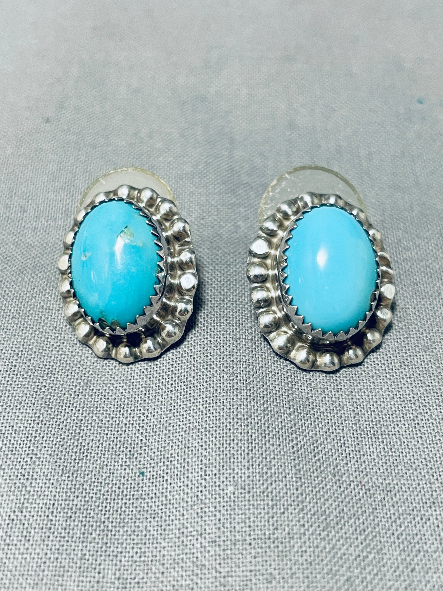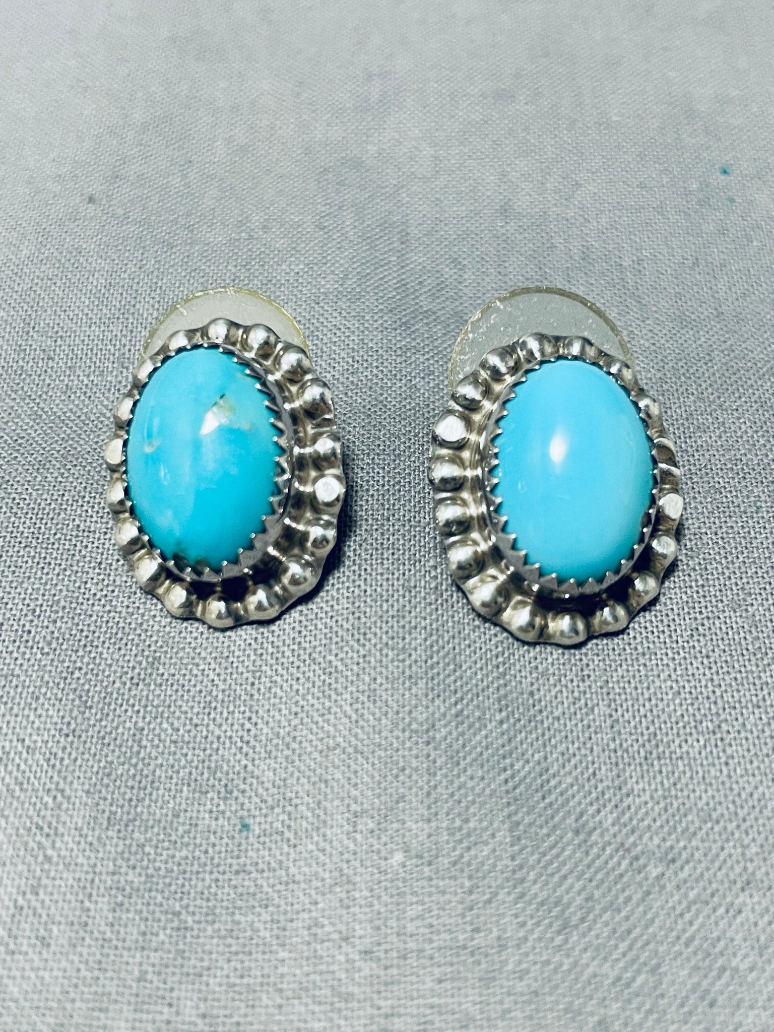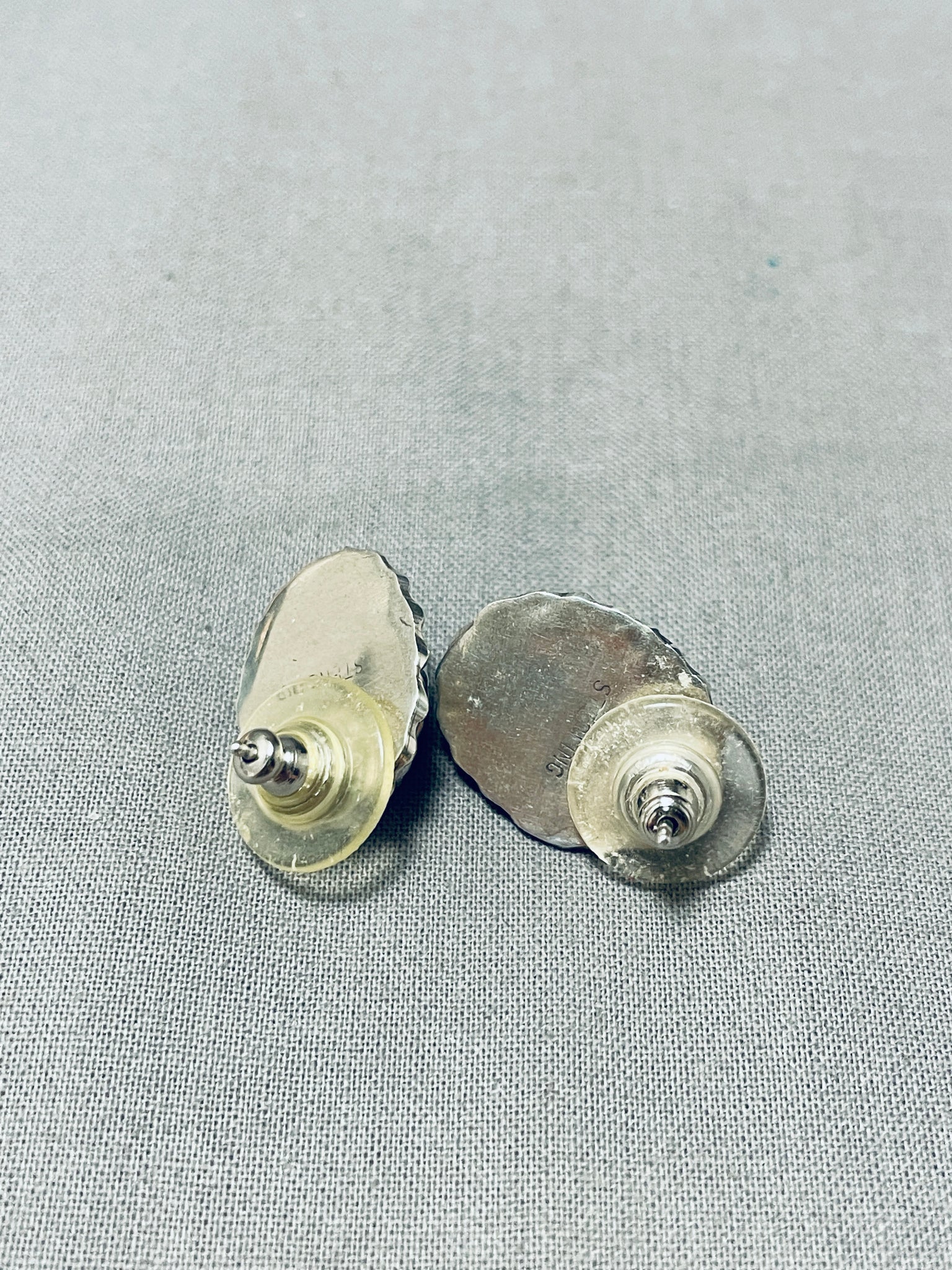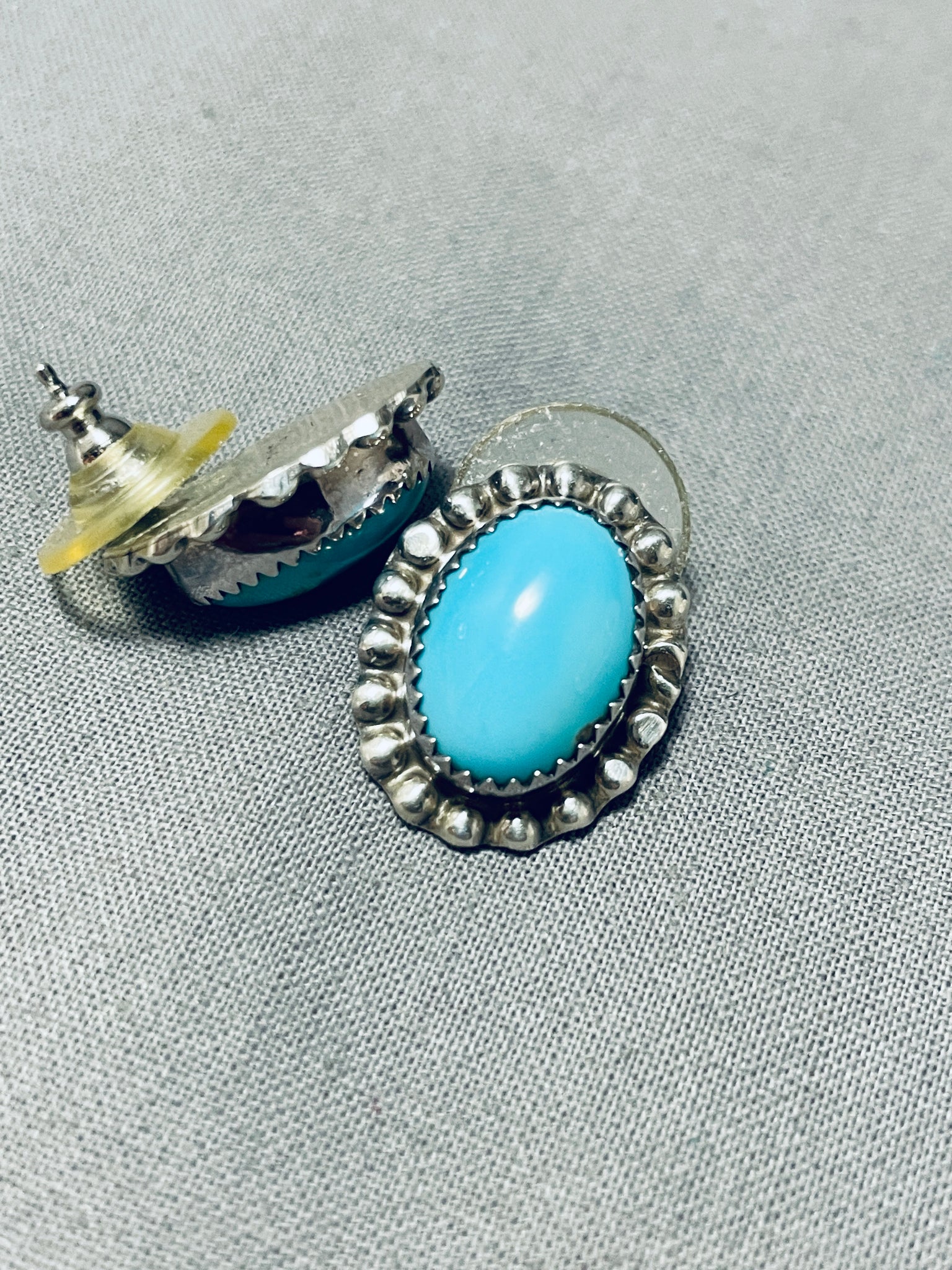 Cute Domed Turquoise Vintage Native American Navajo Sterling Silver Earrings Old