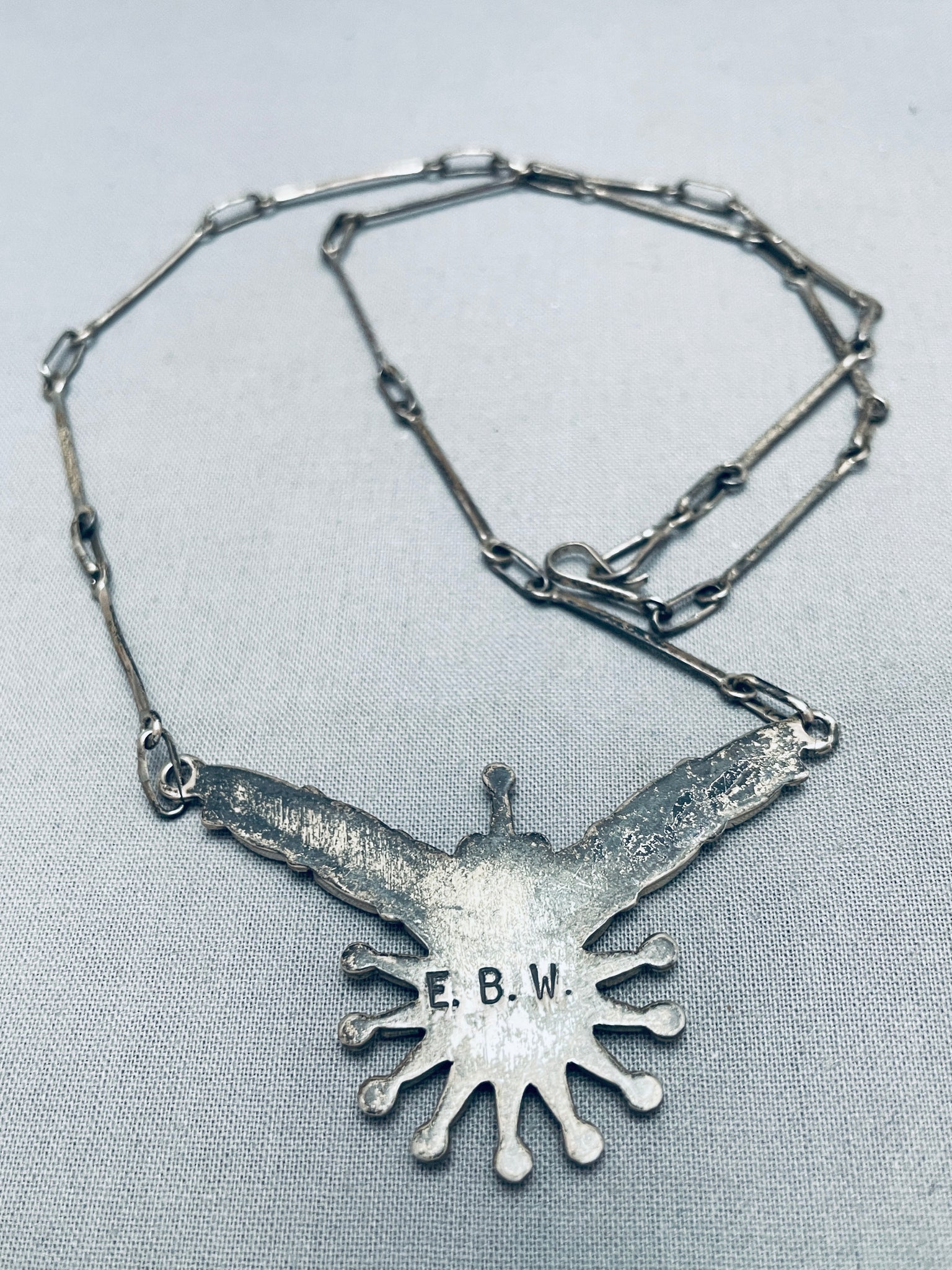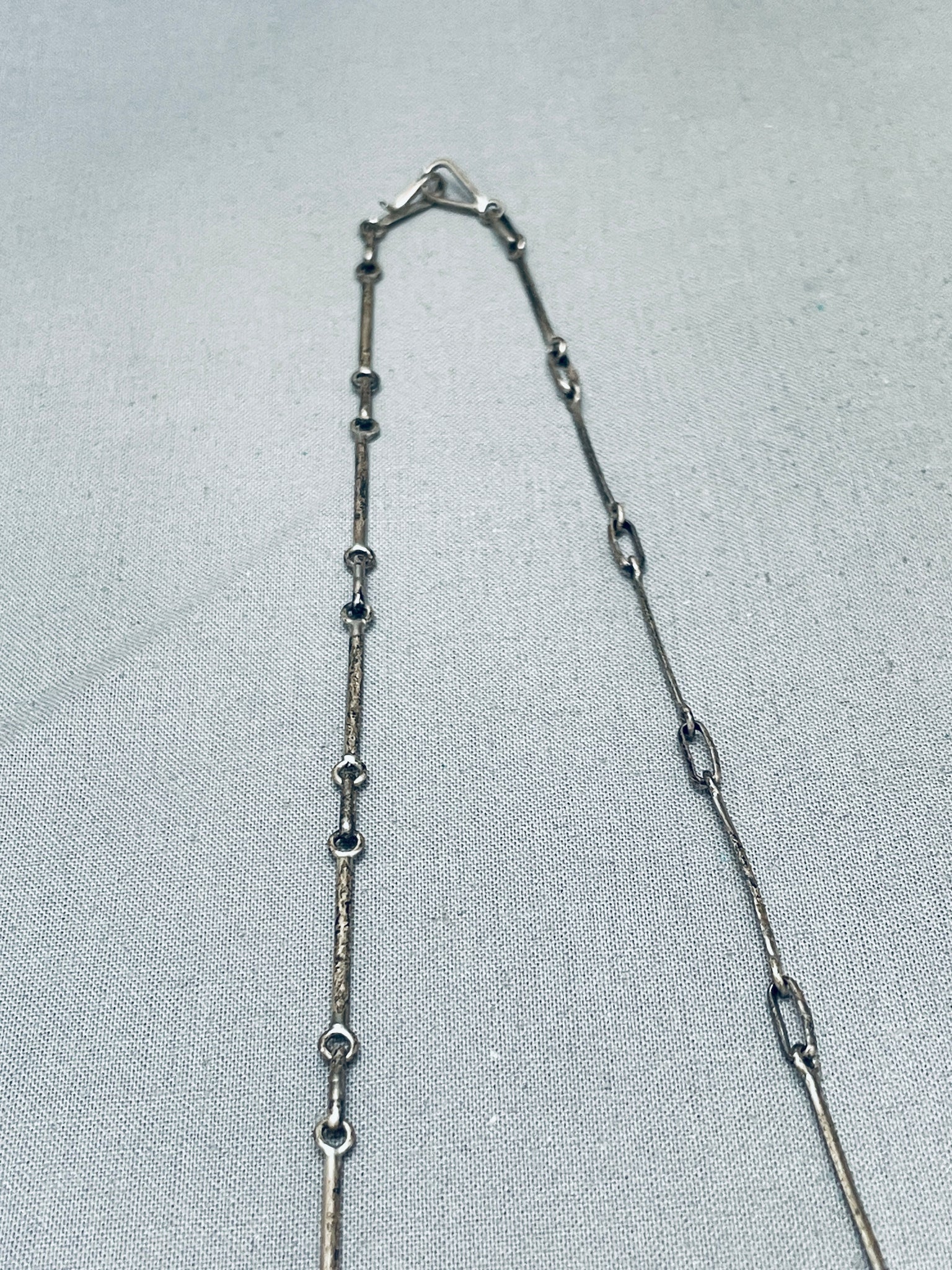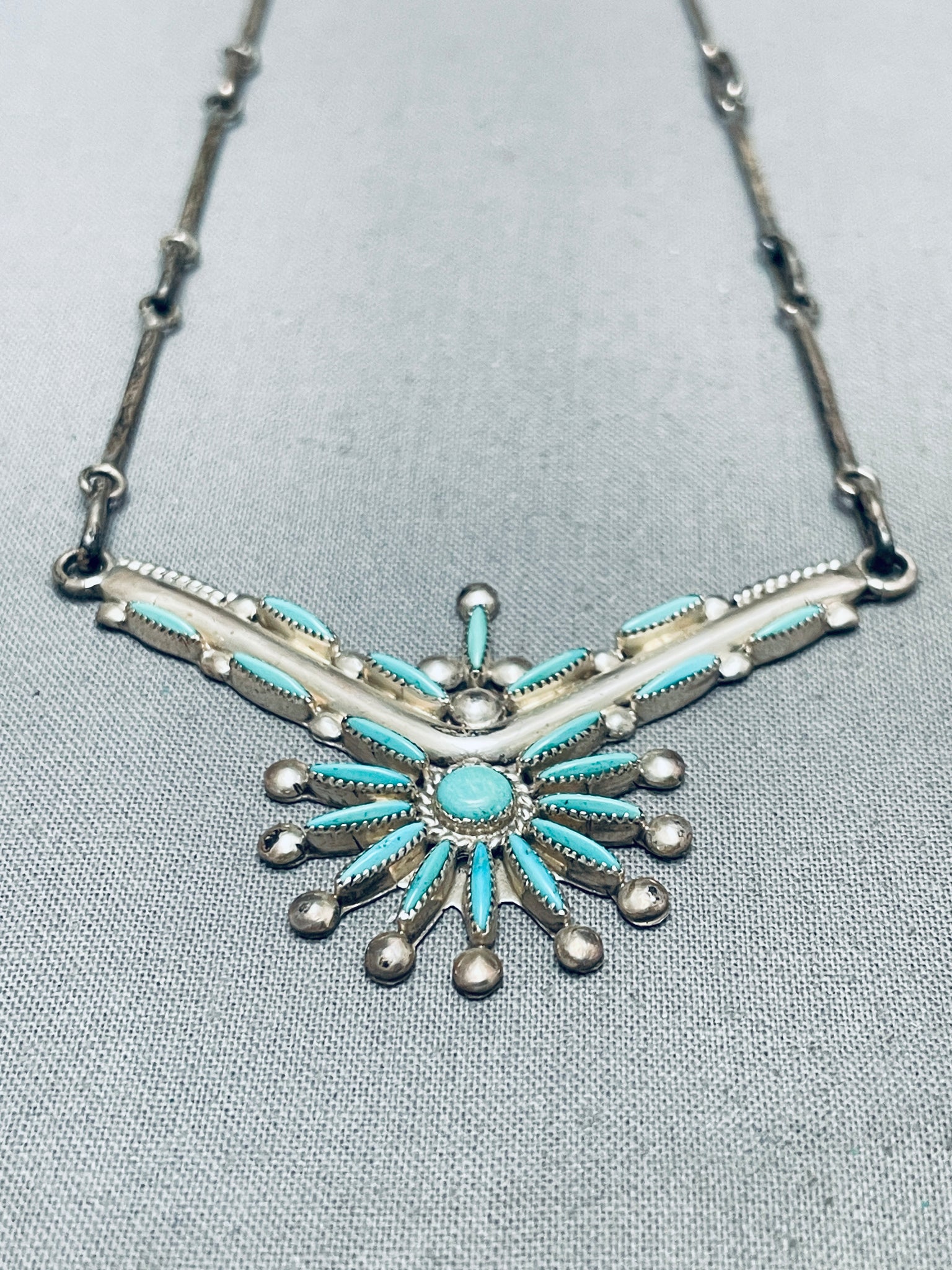 Cute Vintage Native American Zuni Needle Turquoise Sterling Silver Necklace Old