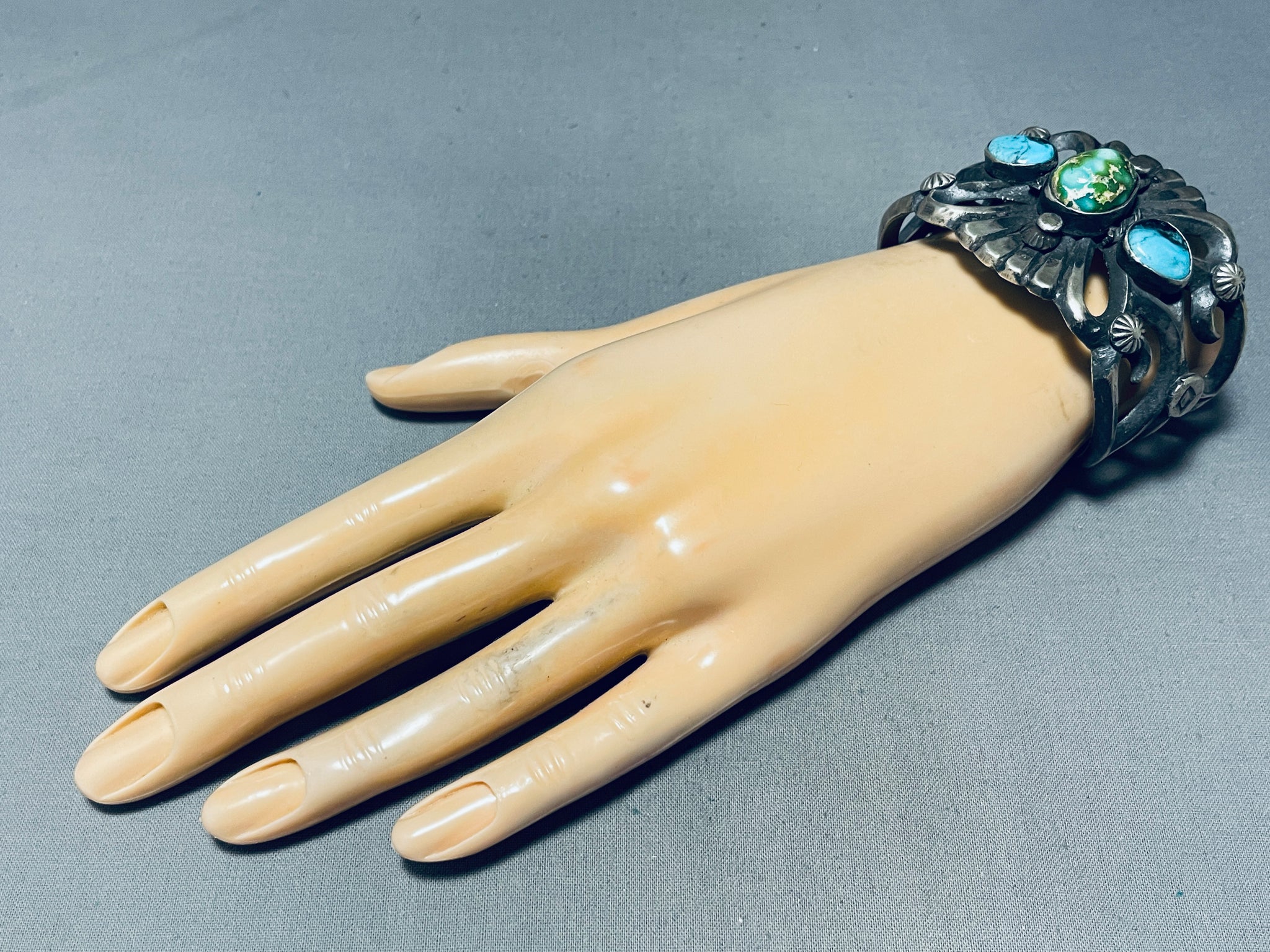 Damale And Blue Gem Vintage Native American Navajo Turquoise Sterling Silver Bracelet