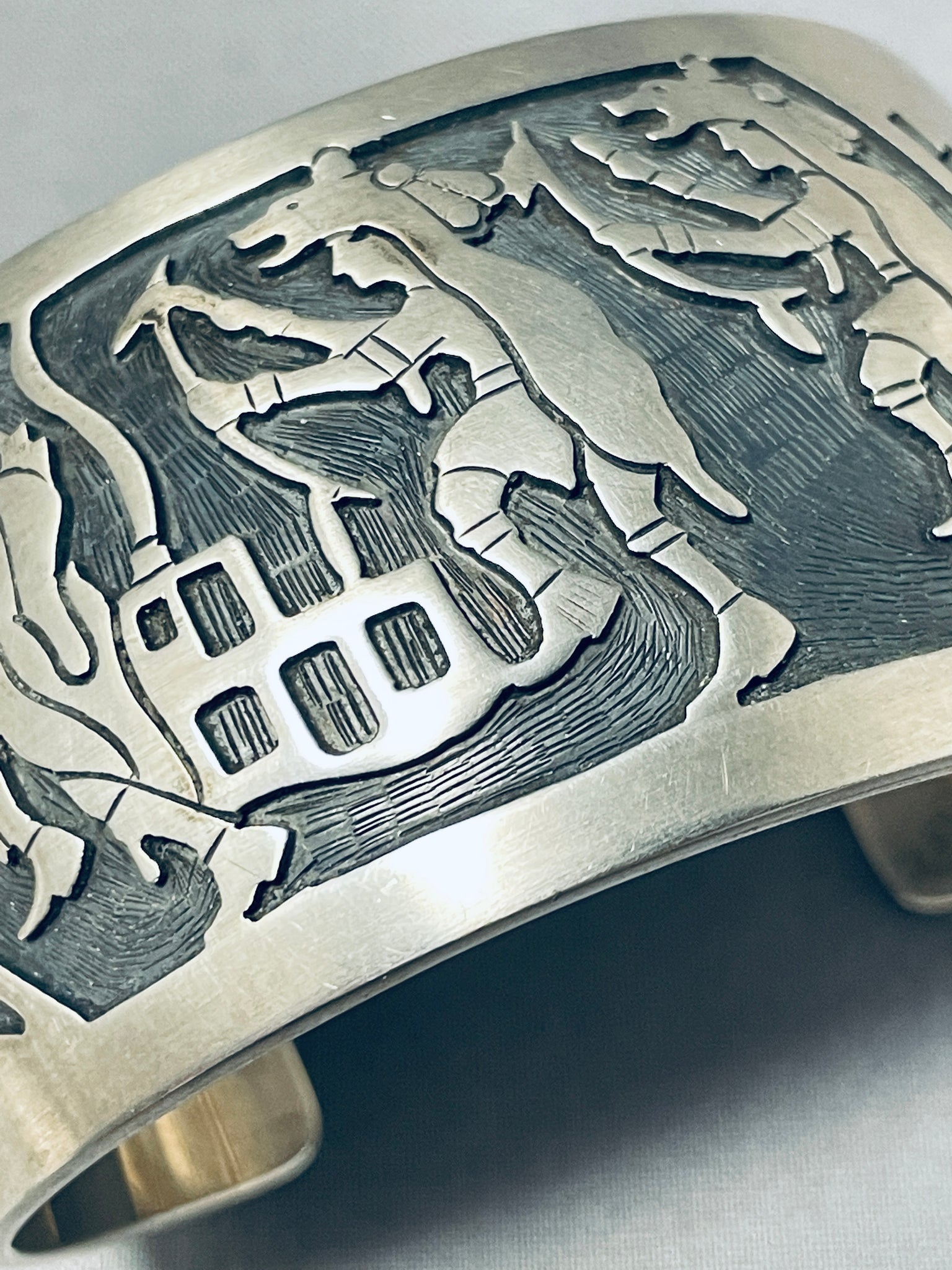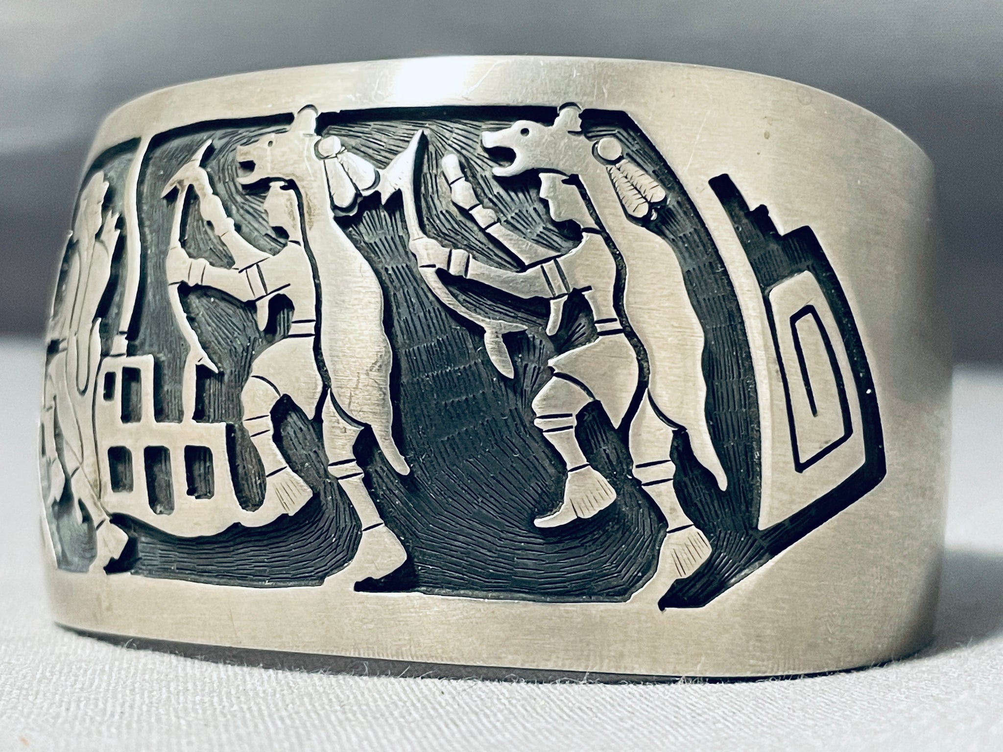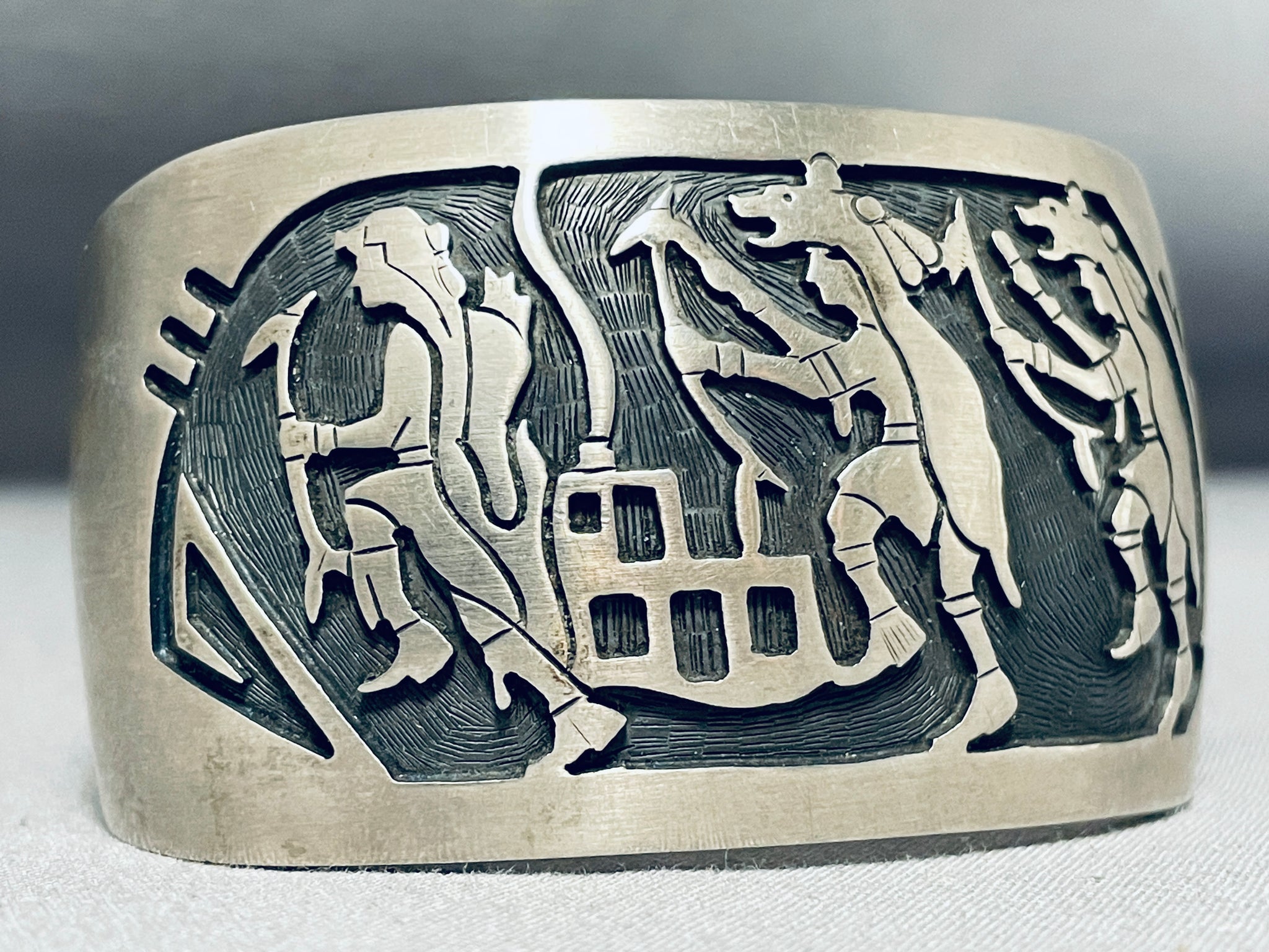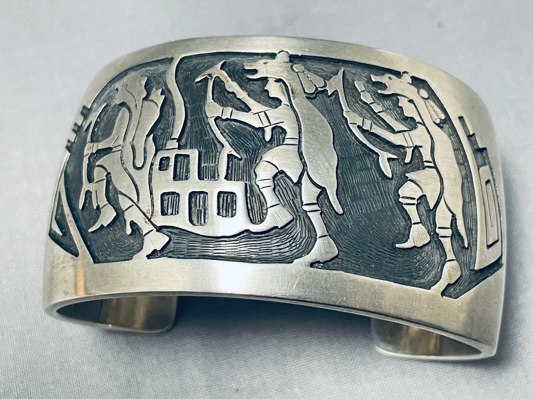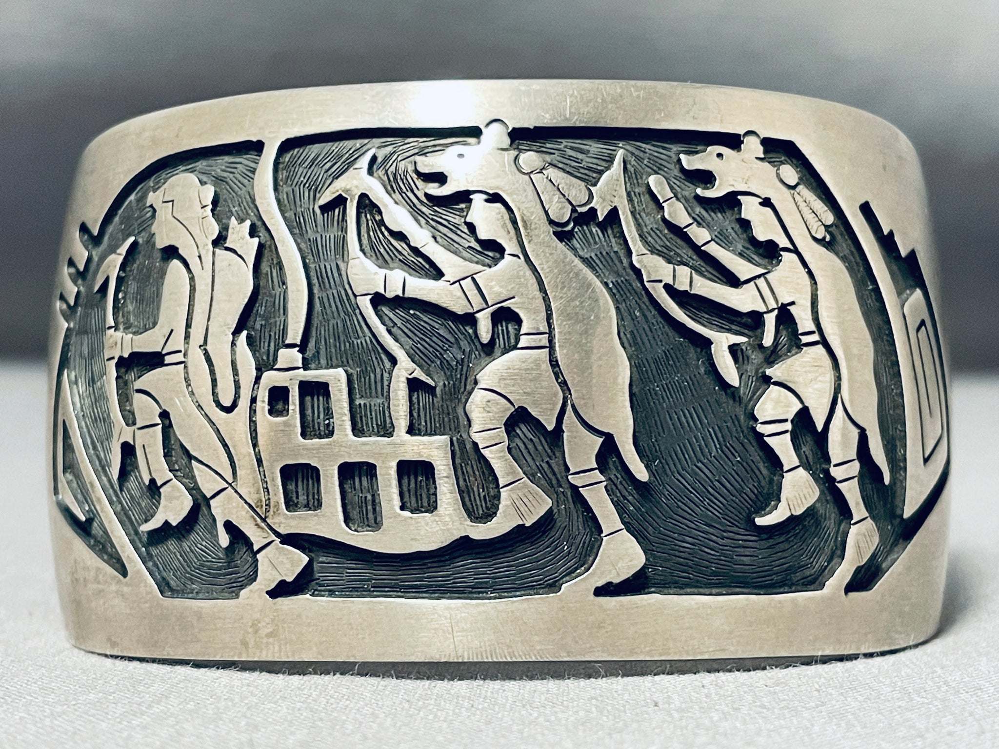 Dancing Kachina Signed Vintage Native American Navajo Sterling Silver Bracelet