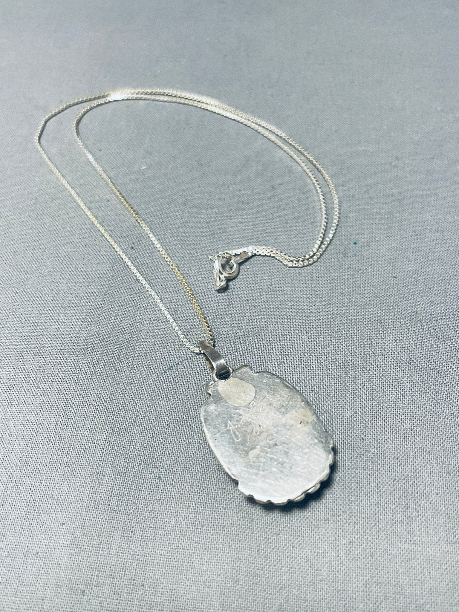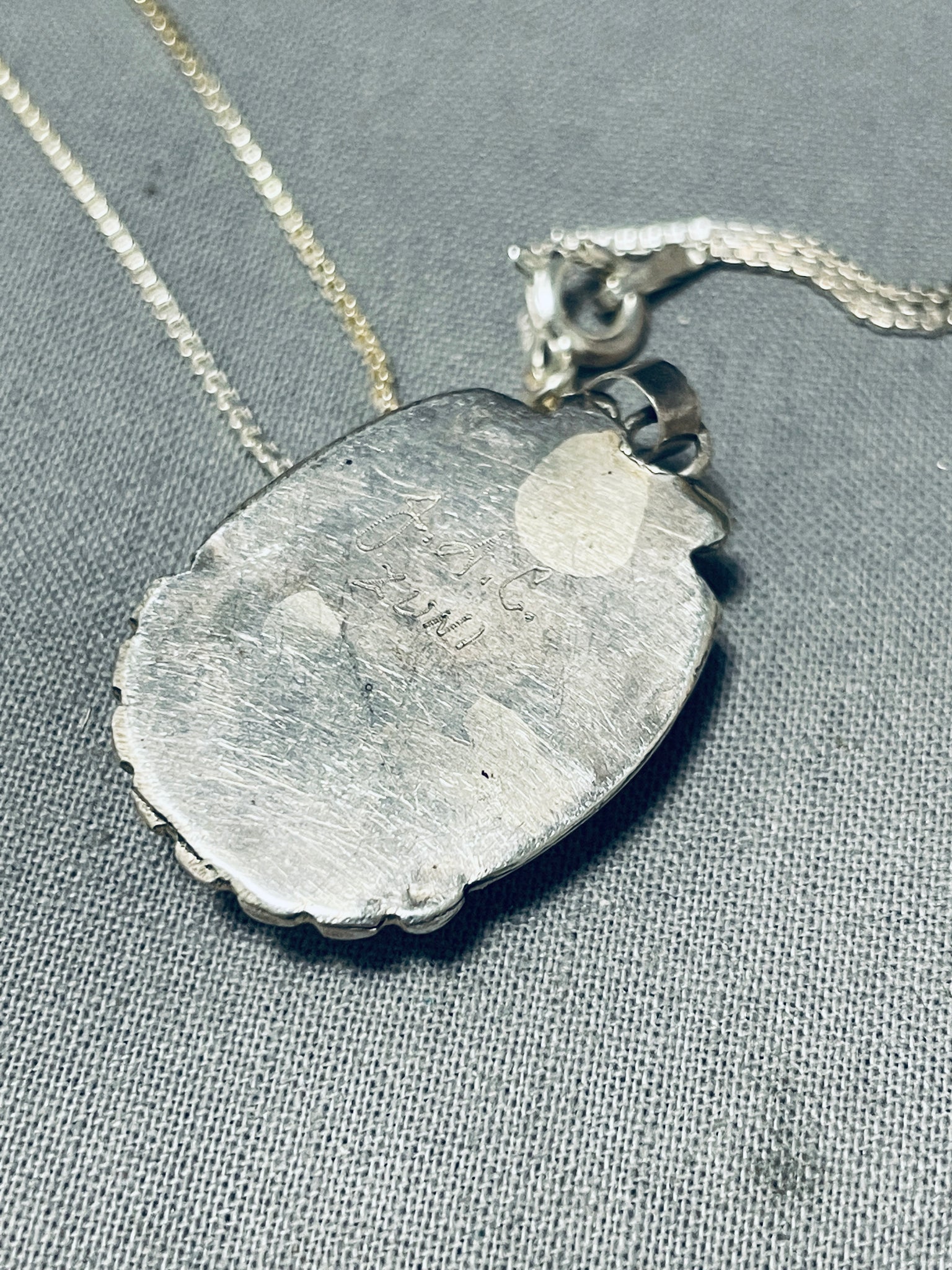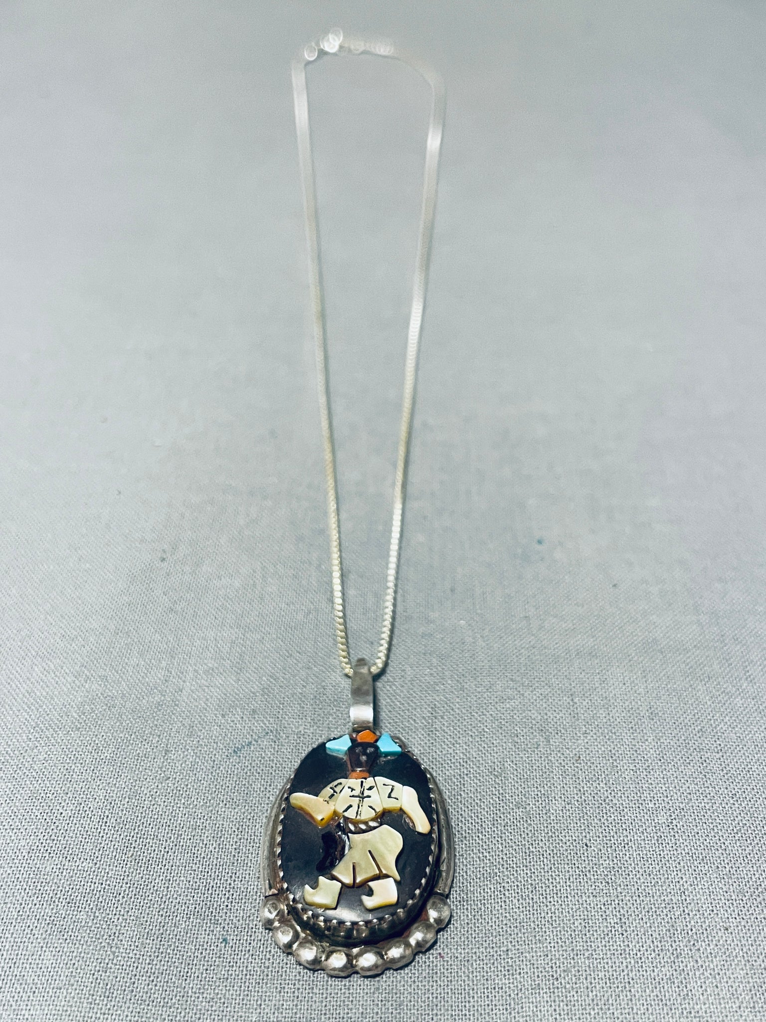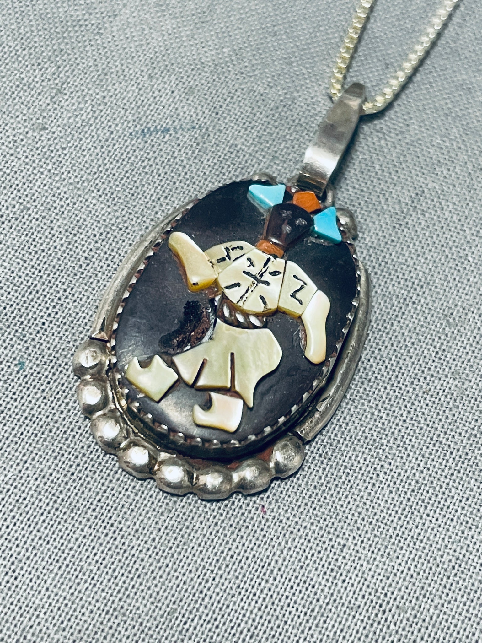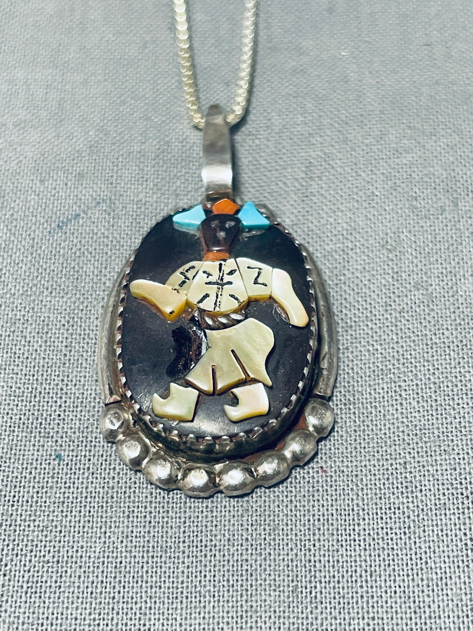 Dancing Kachina Vintage Native American Zuni Turquoise Sterling Silver Inlay Necklace