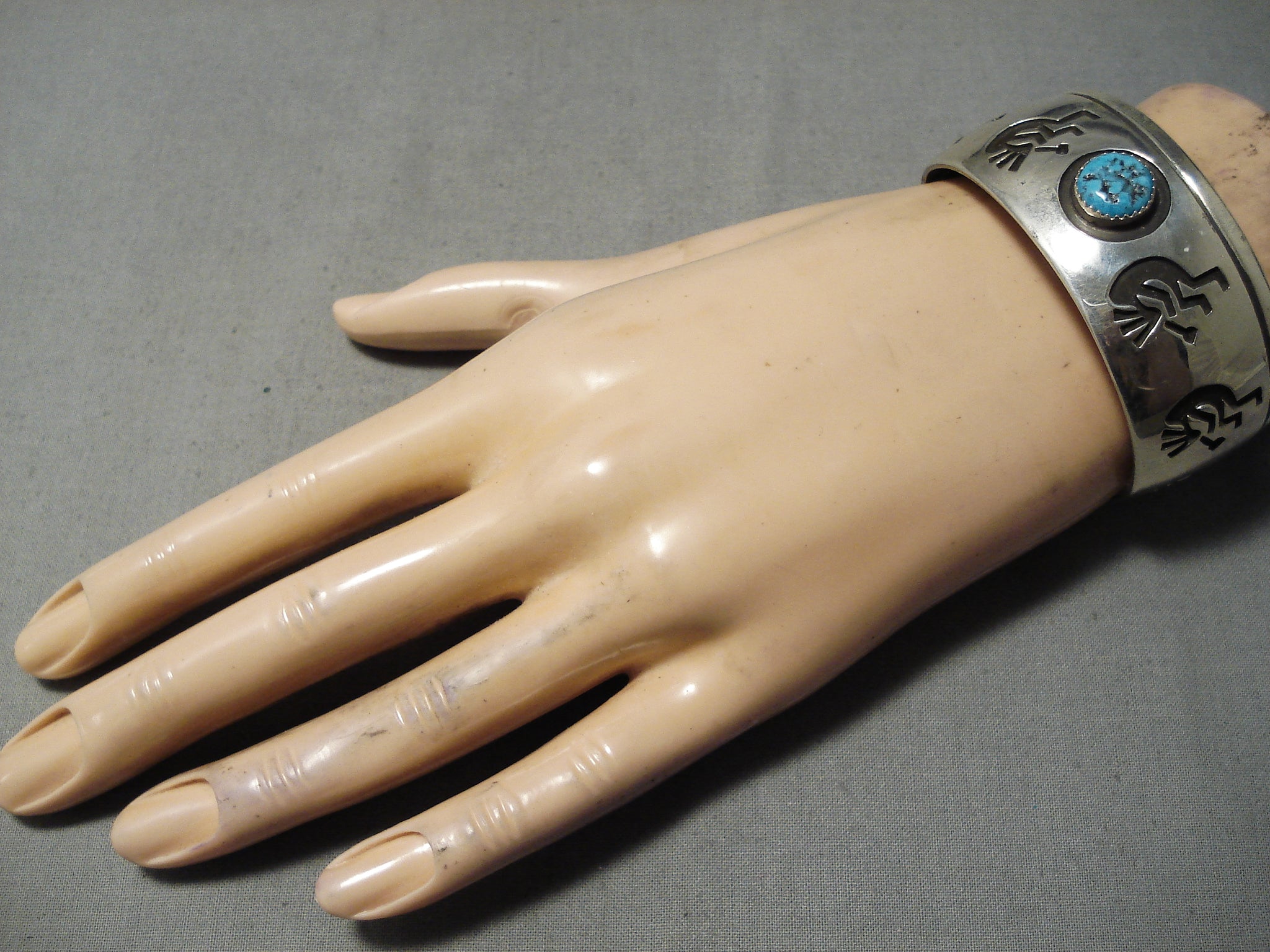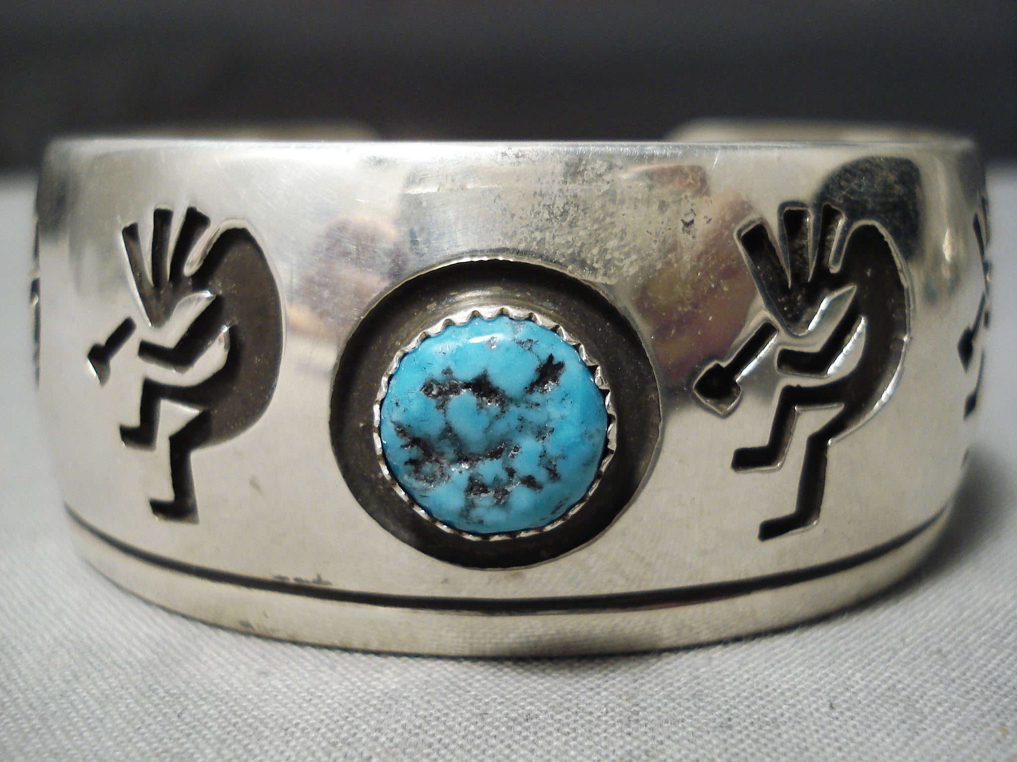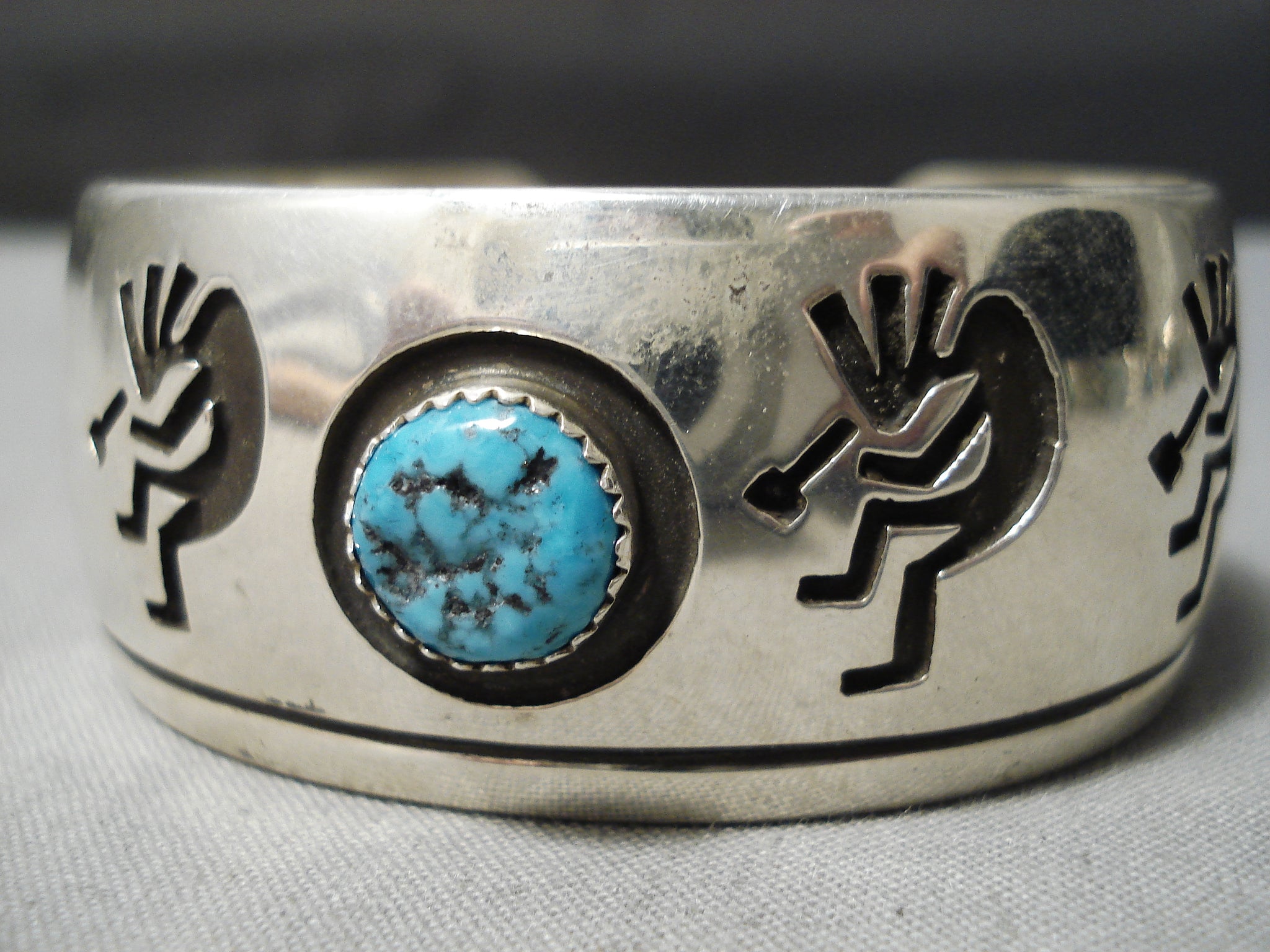 Dancing Kokopelli Vintage Native American Navajo Turquoise Sterling Silver Bracelet