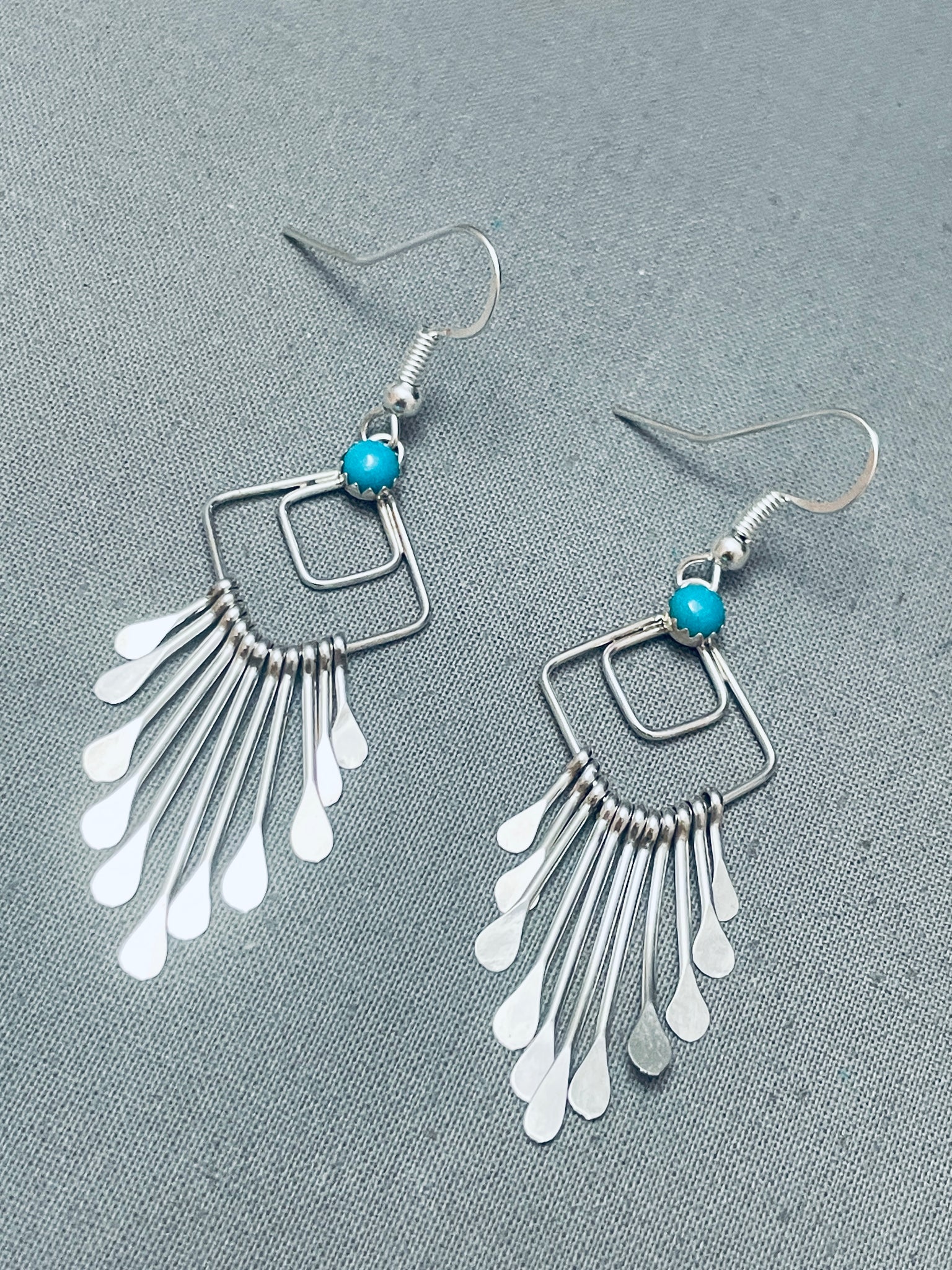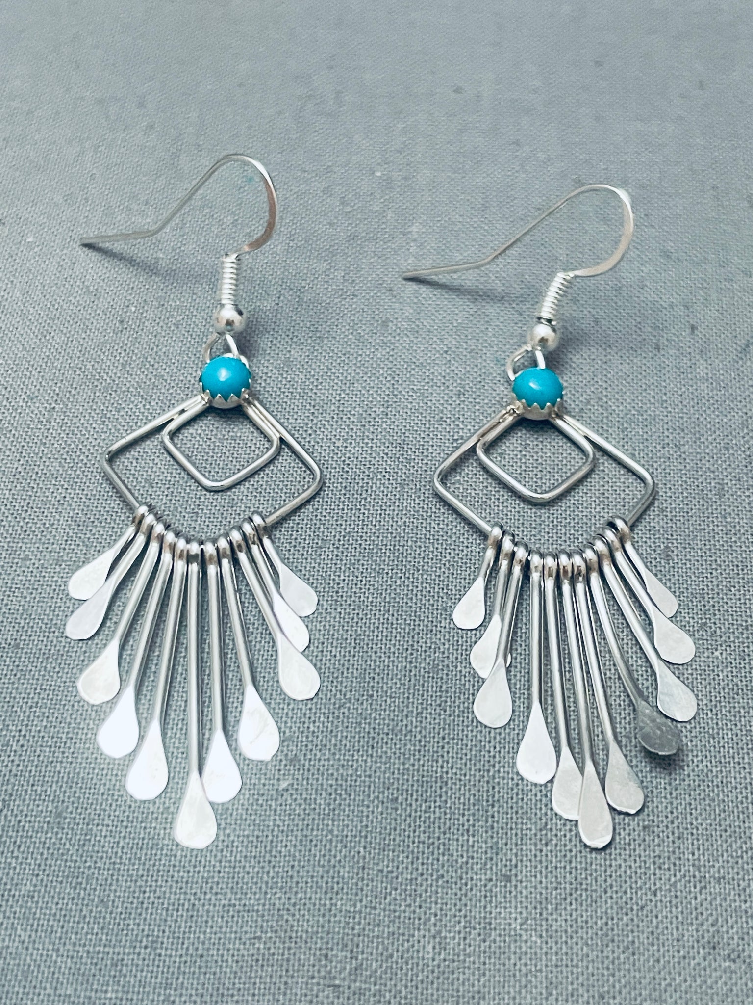 Dangle Chandelier Vintage Navajo Turquoise Sterling Silver Earrings