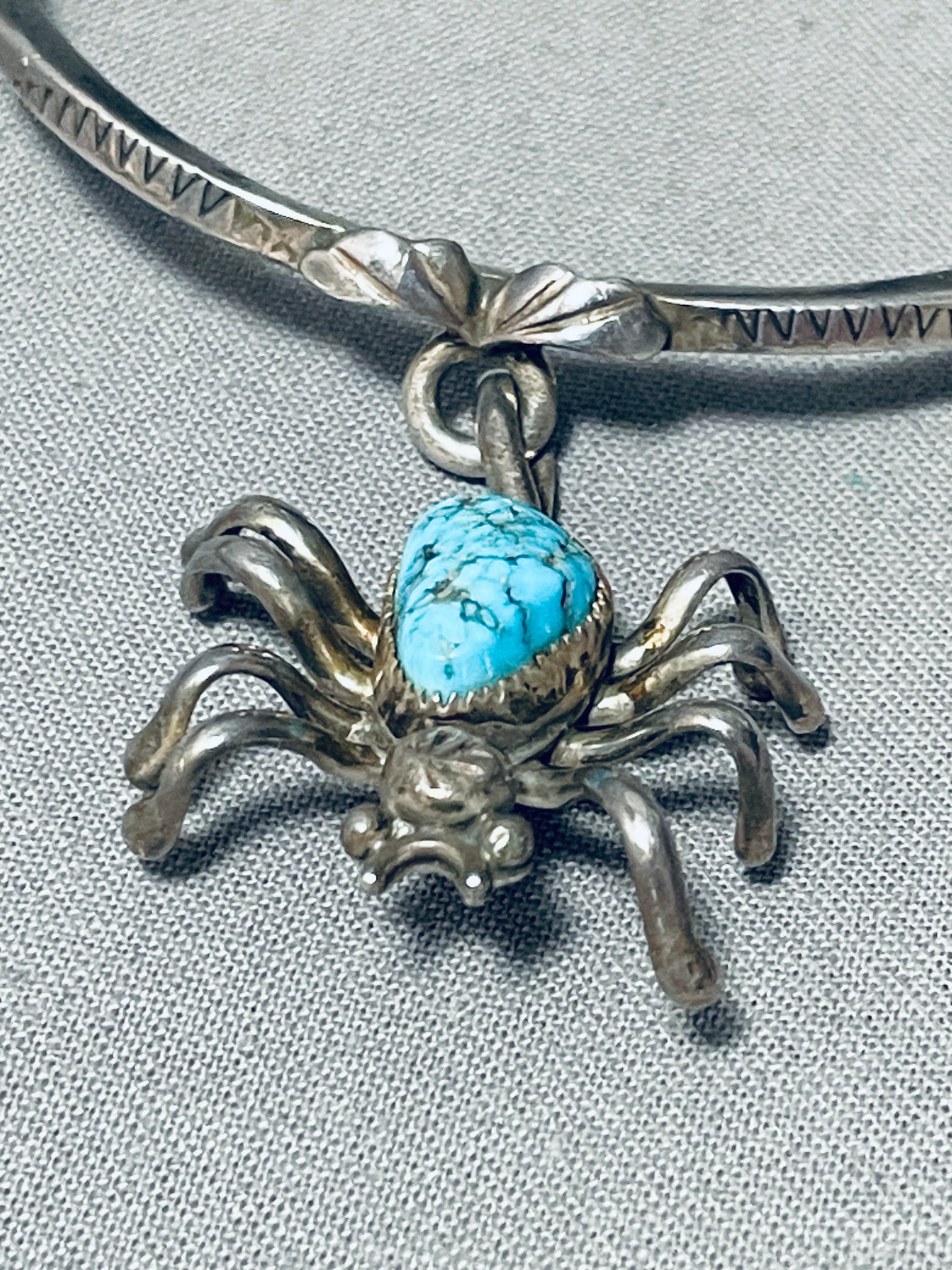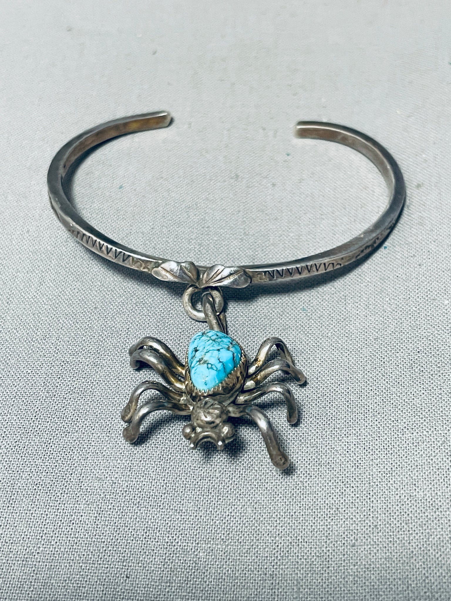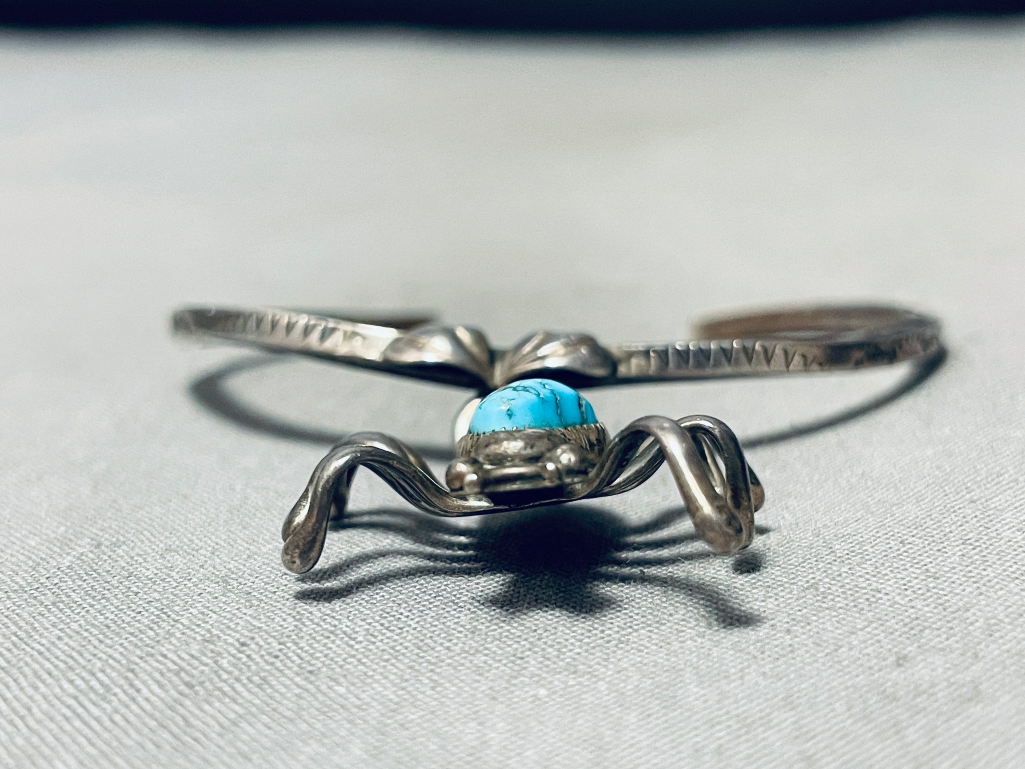 Dangling Spider!! Vintage Native American Navajo Turquoise Sterling Silver Bracelet