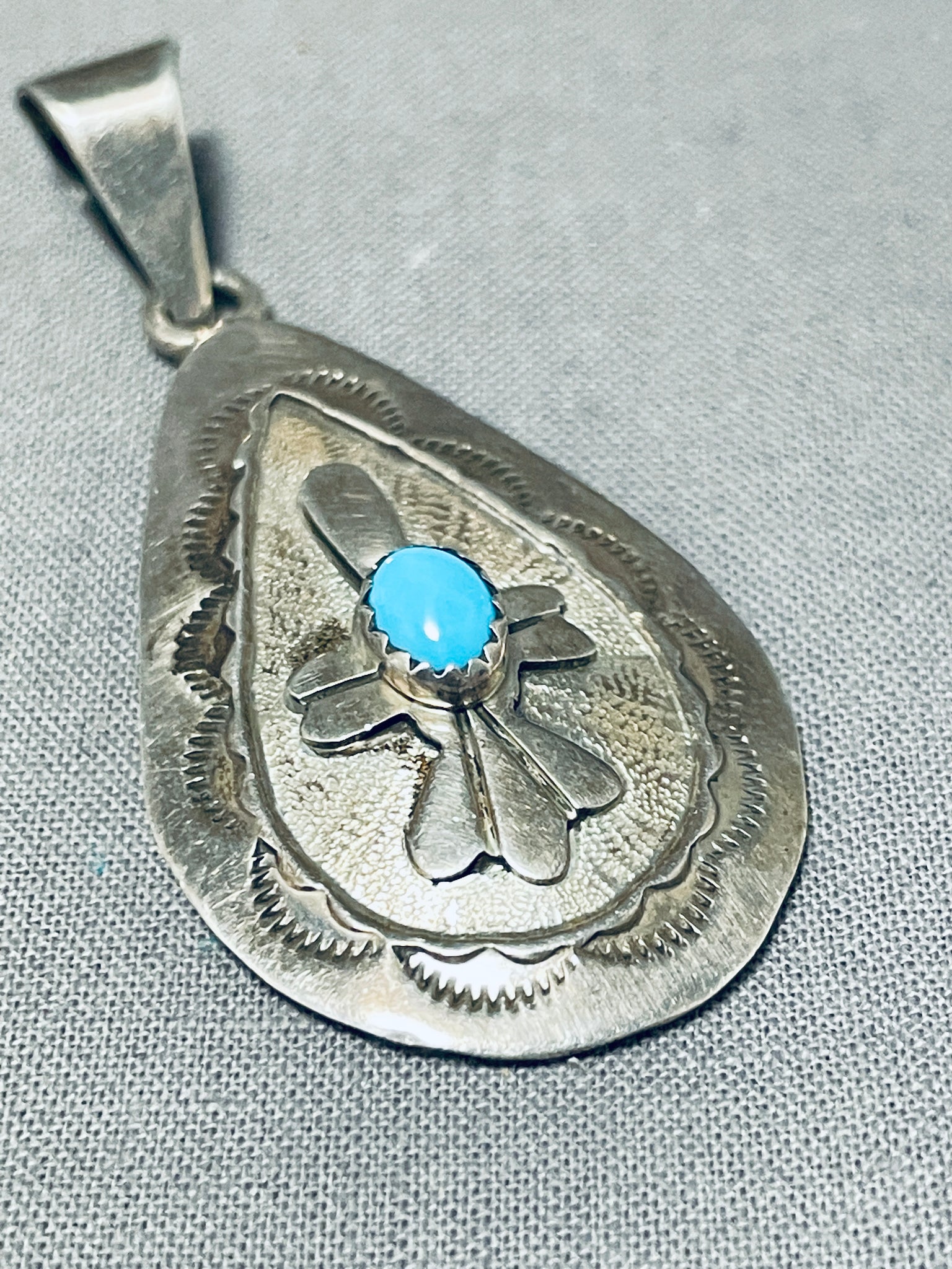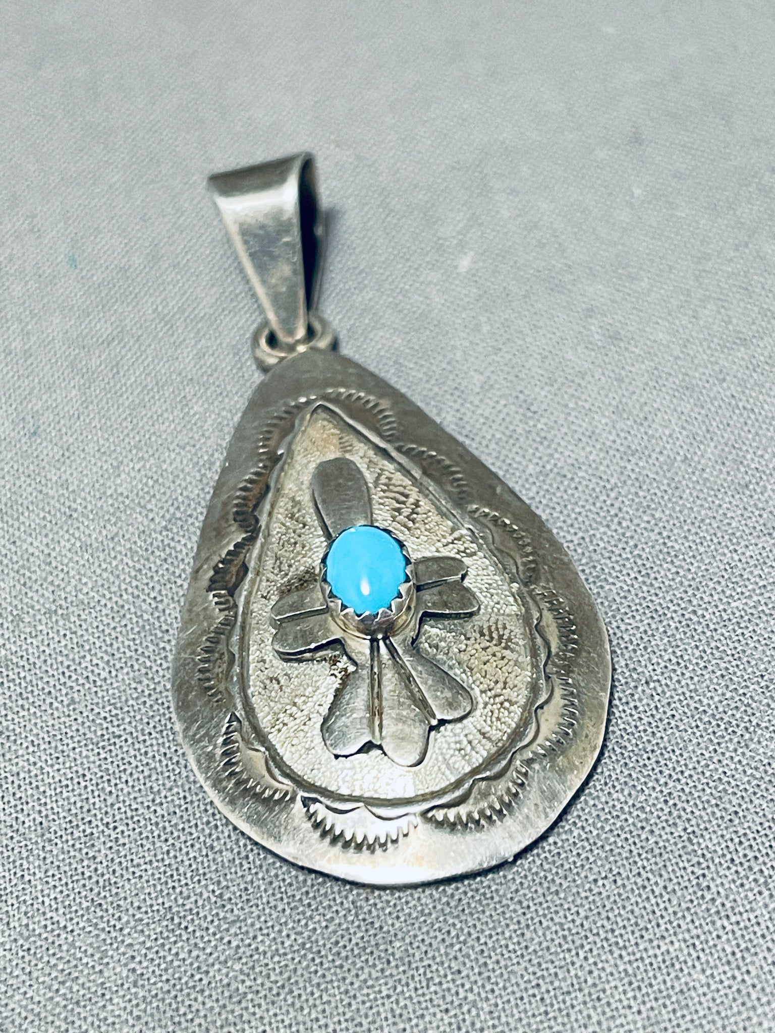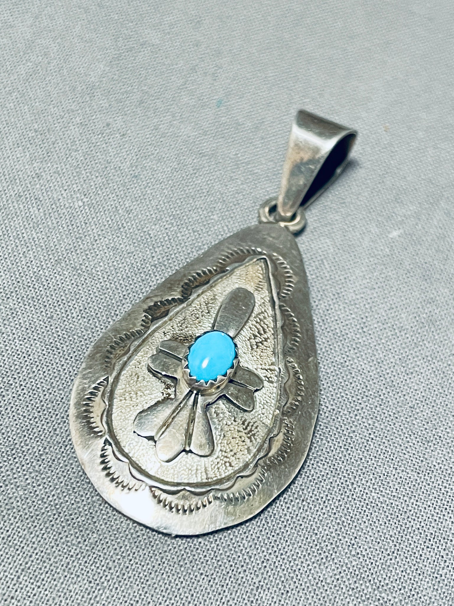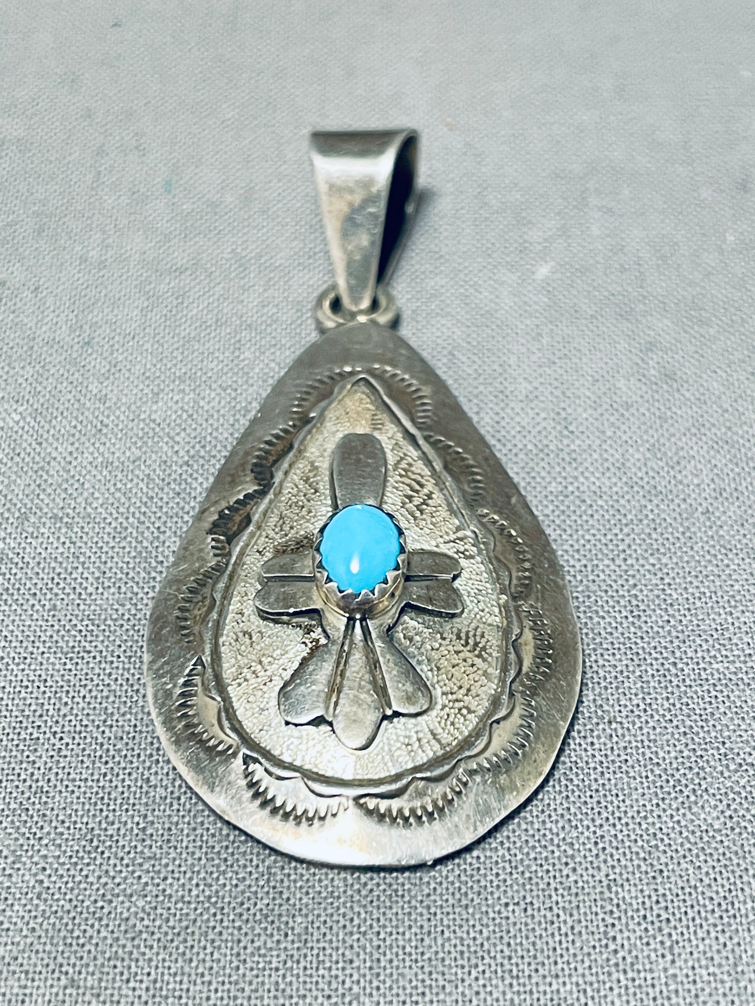 Danny Mike Vintage Native American Navajo Turquoise Sterling Silver Signed Pendant