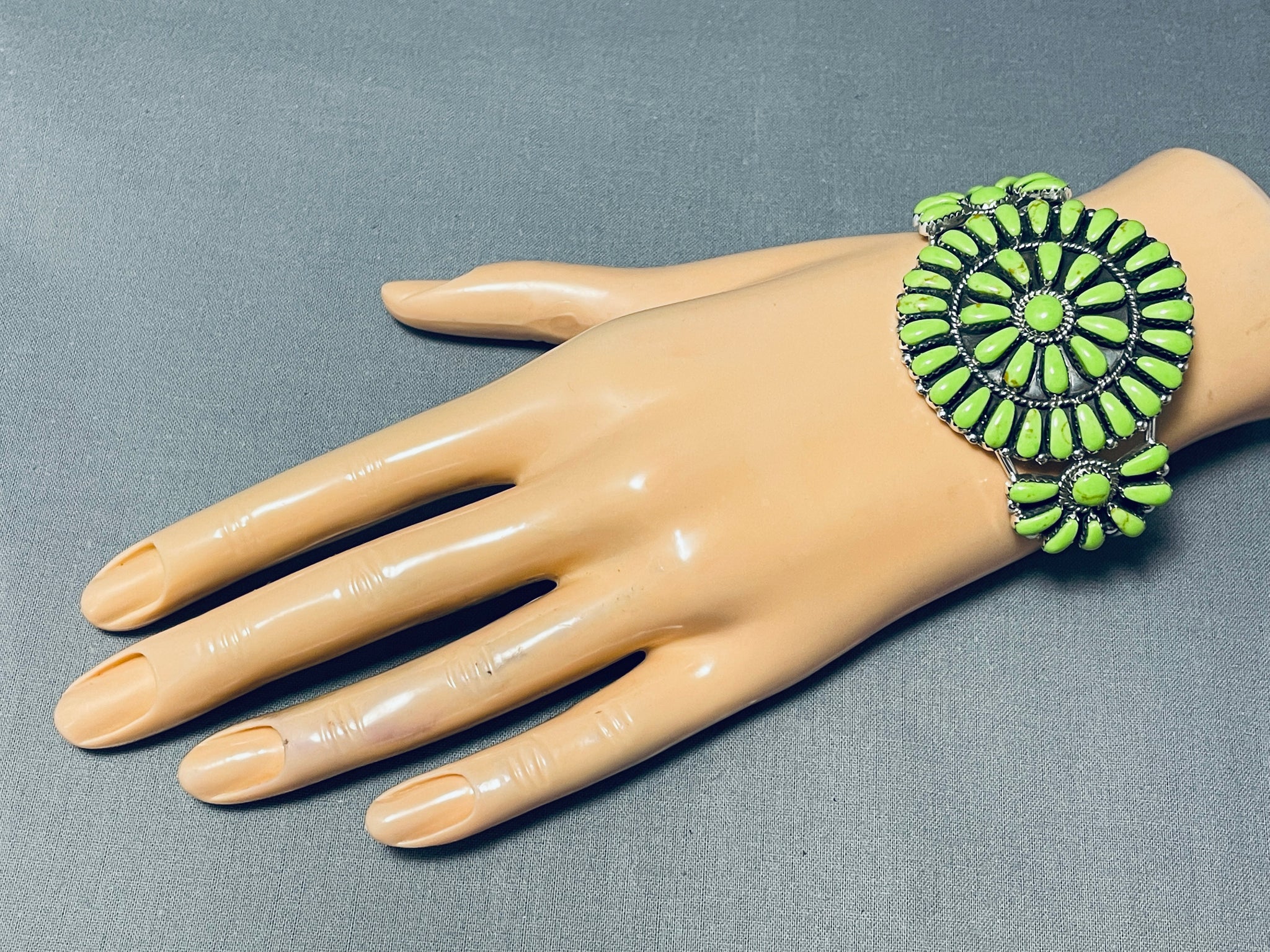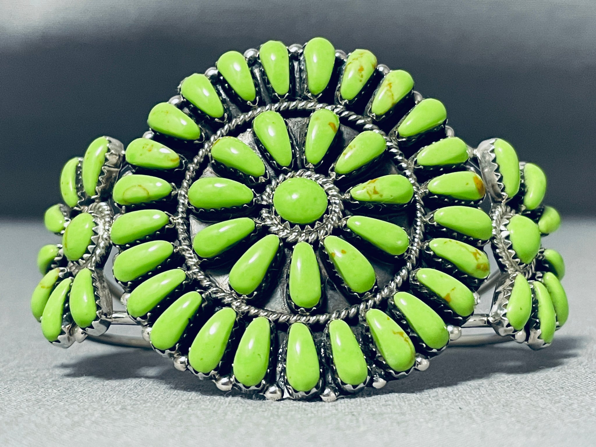 Dav Benally Amazing Native American Navajo Gaspeite Sterling Silver Bracelet Cuff