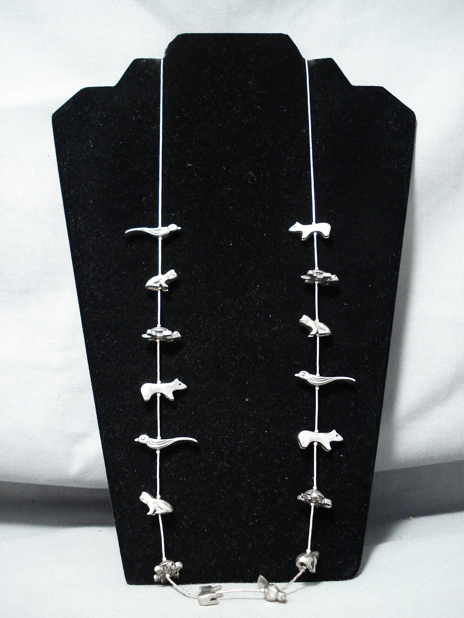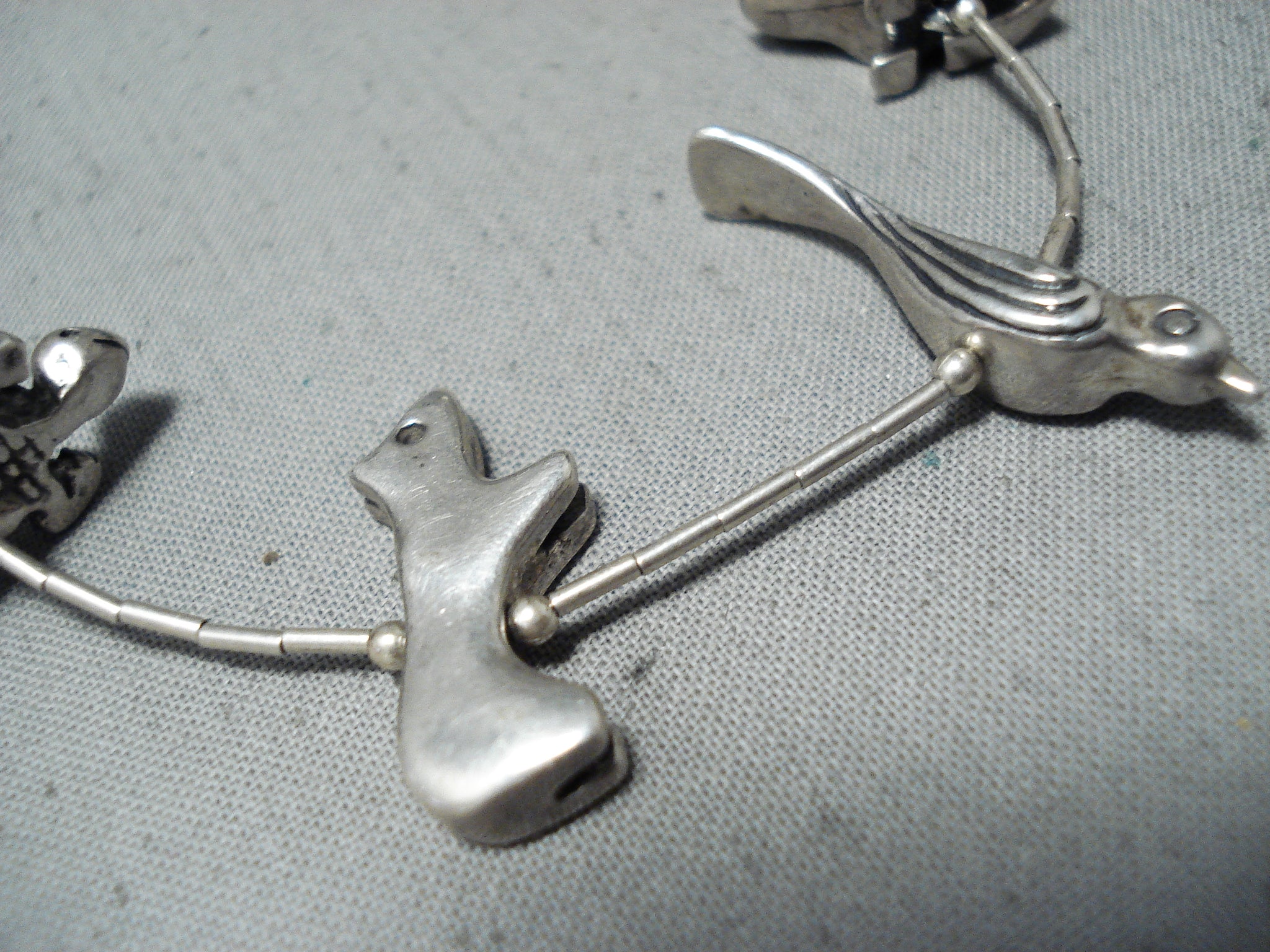 Dazzling Heavy Vintage Zuni Native American Sterling Silver Fetish Necklace Old