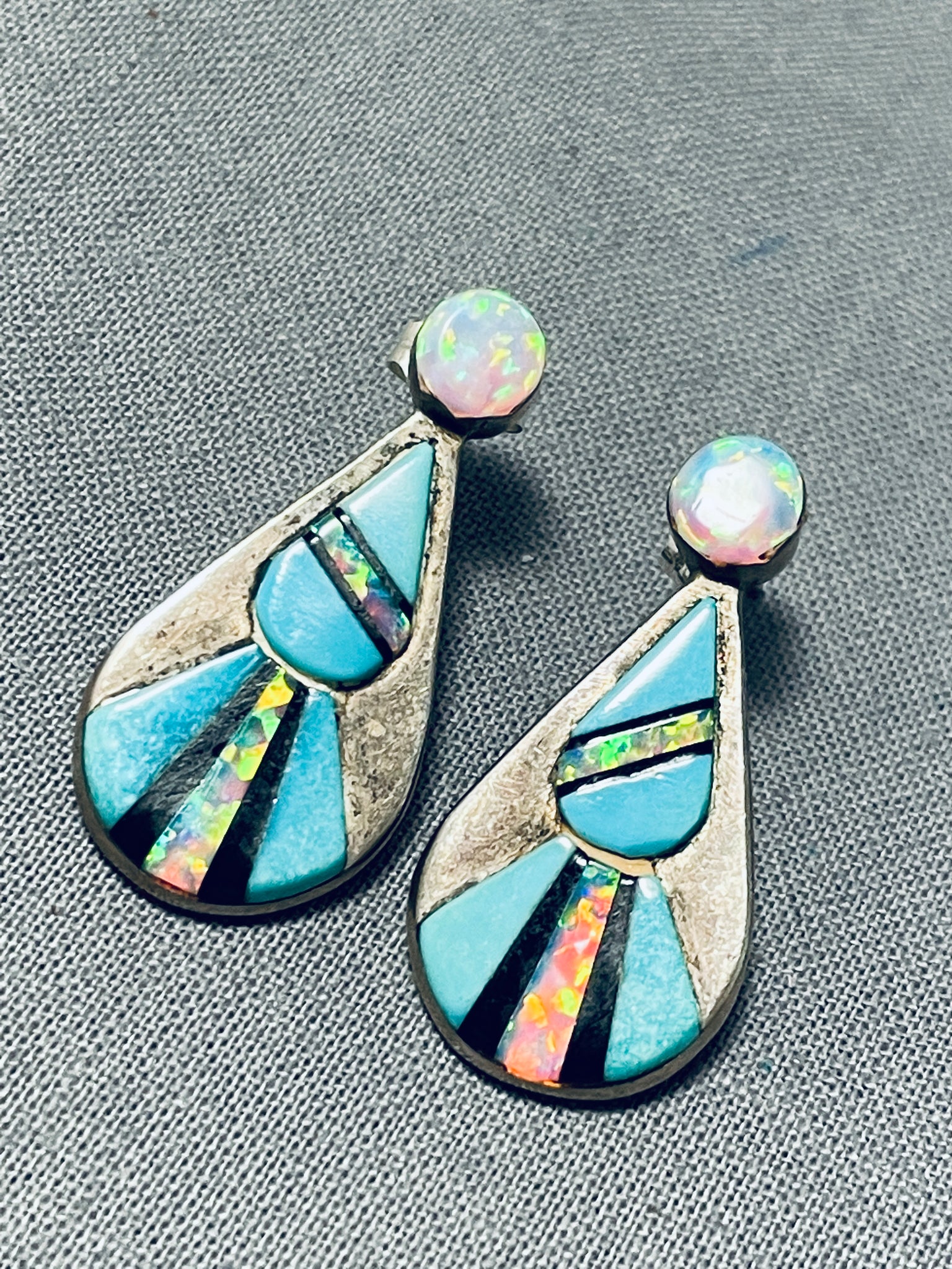 Dazzling Native American Navajo Blue Gem Turquoise Synthetic Opal Sterling Silver Earrings