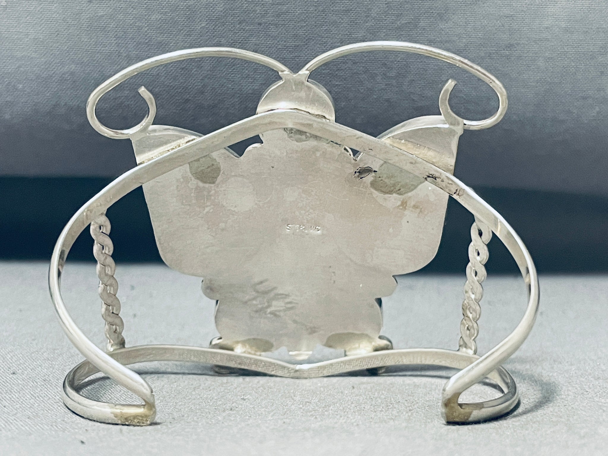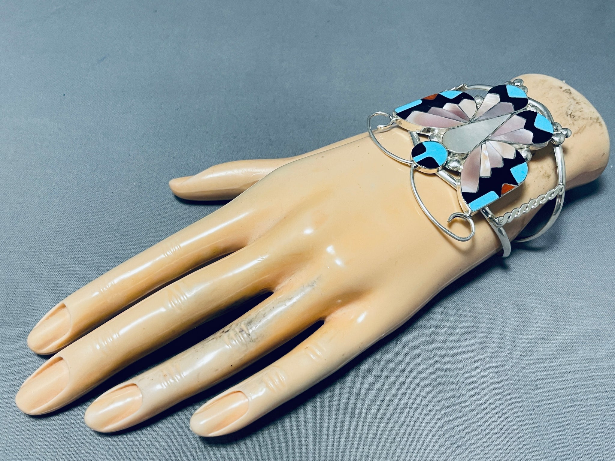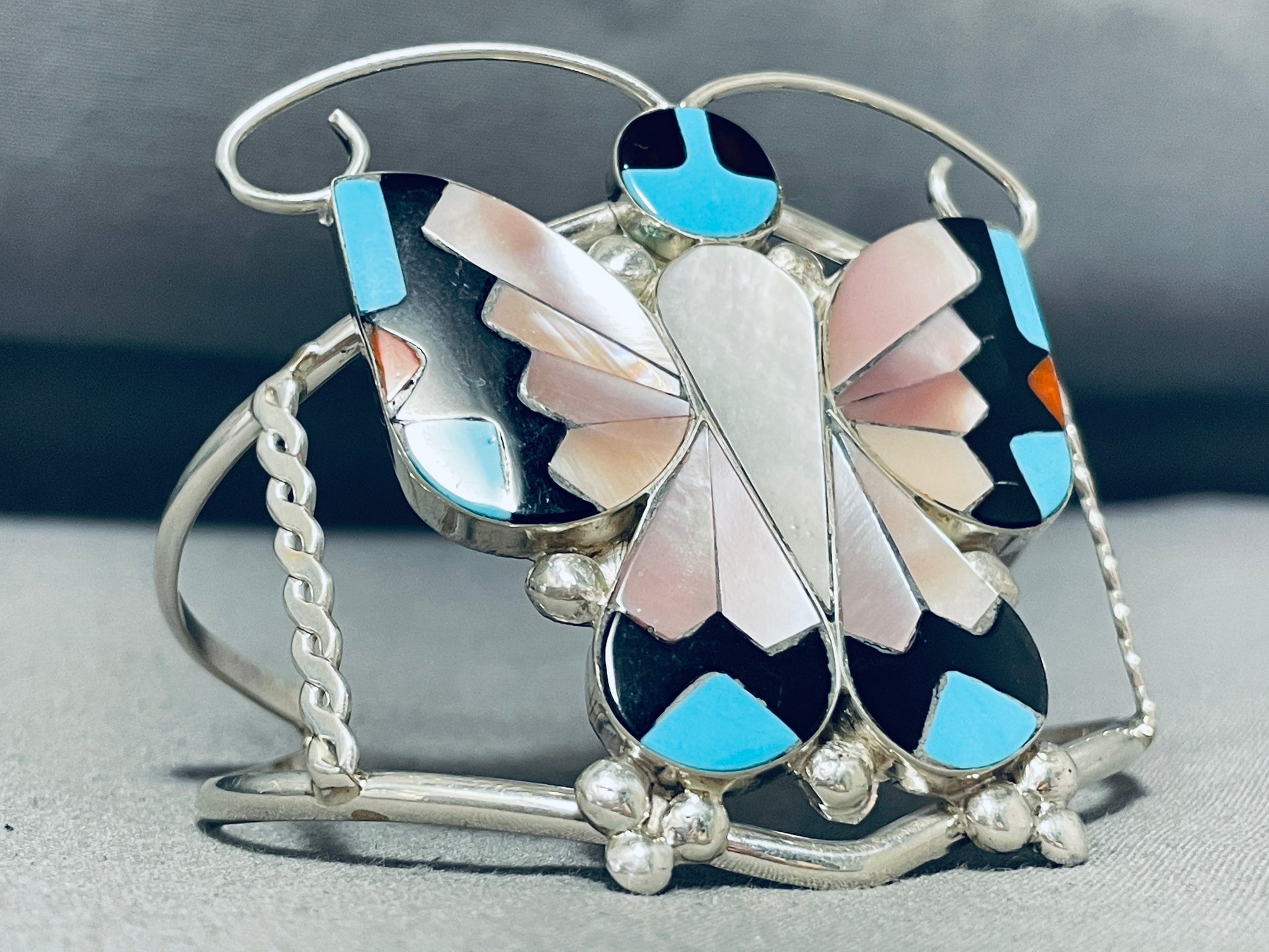 Dazzling Native American Zuni Inlay Sleeping Beauty Turquoise Sterling Silver Butterfly Cuff