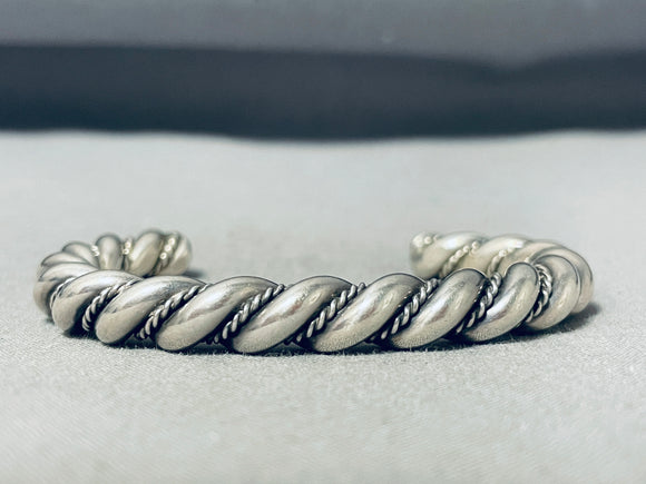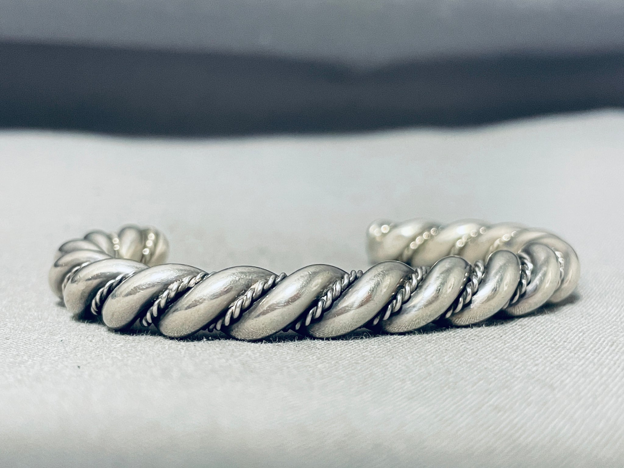 Dazzling Thicker Heavy Vintage Native American Navajo Sterling Silver Bracelet