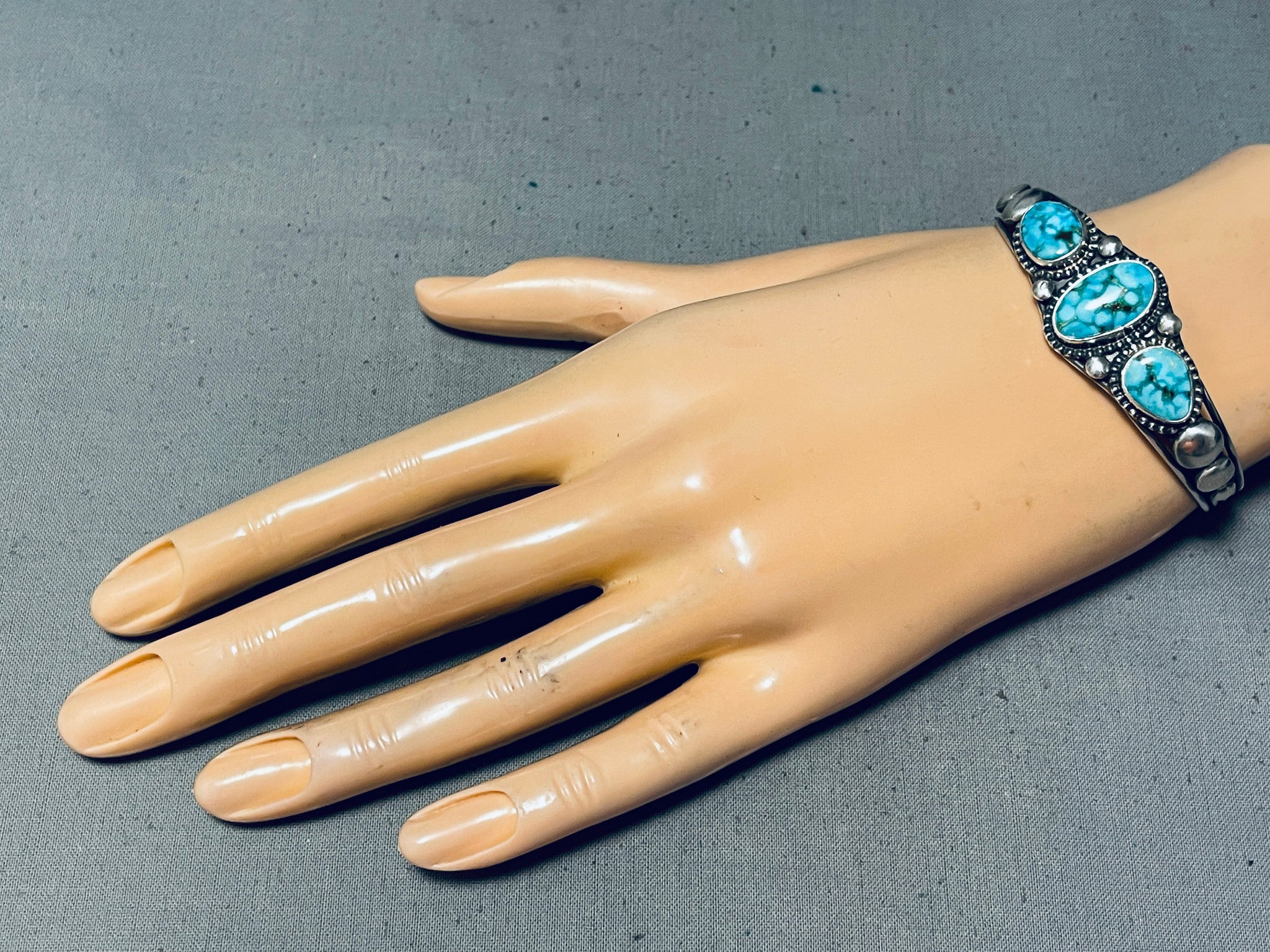 Dazzling Verdy Jake Native American Navajo Spiderweb Turquoise Sterling Silver Bracelet