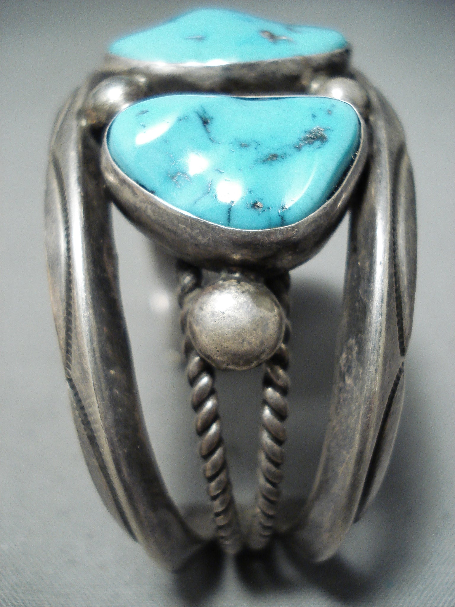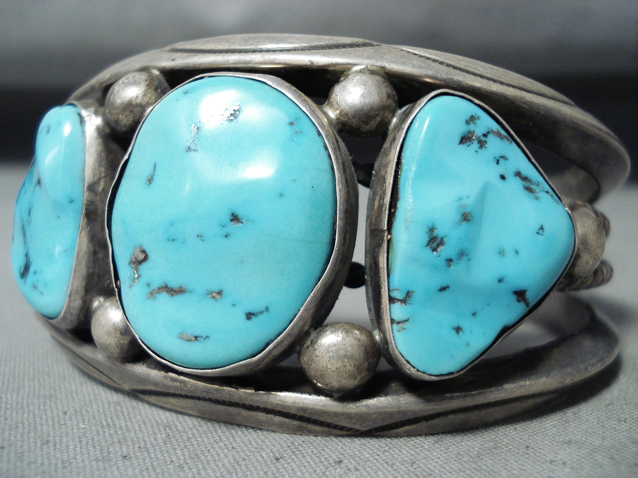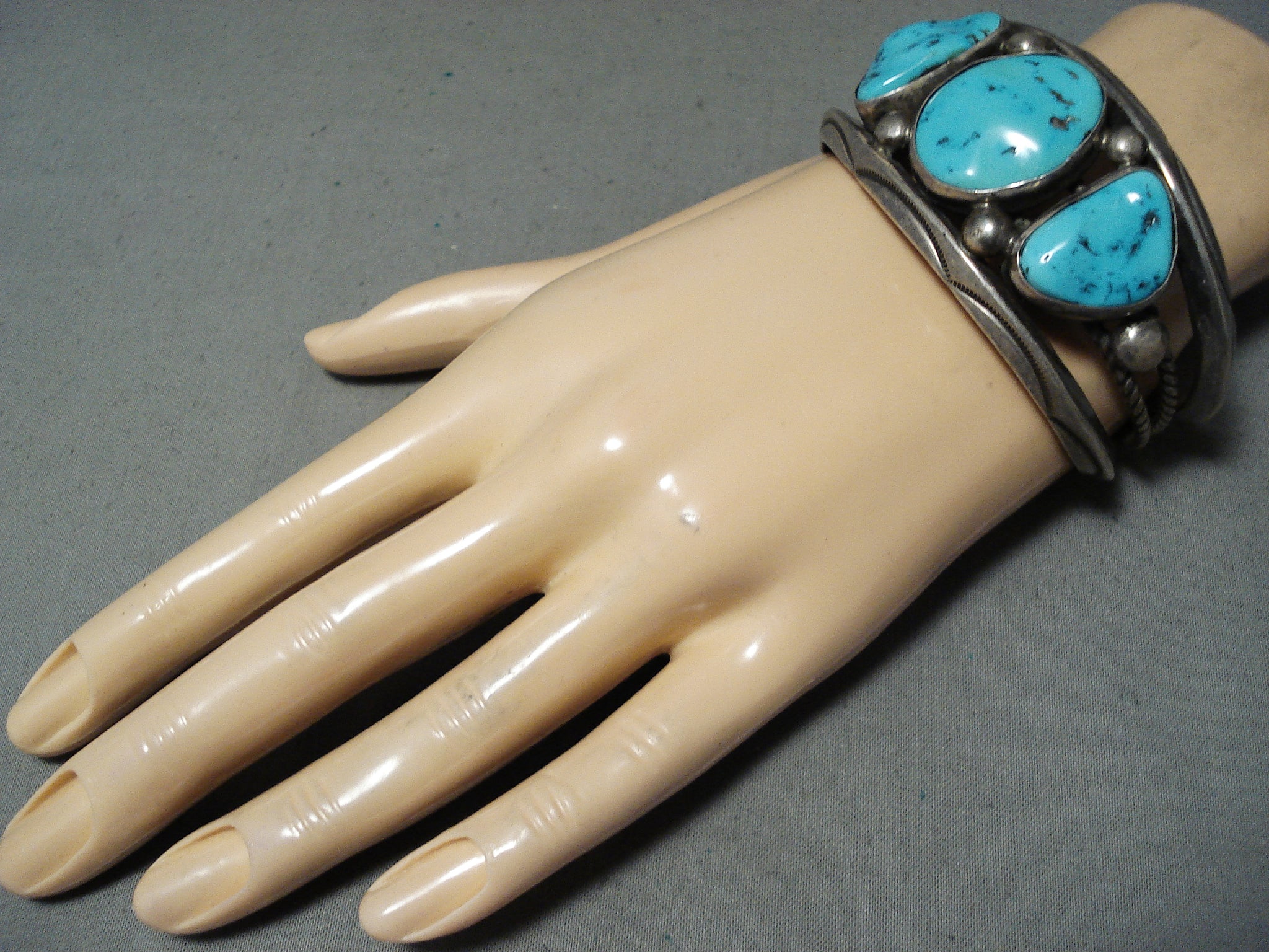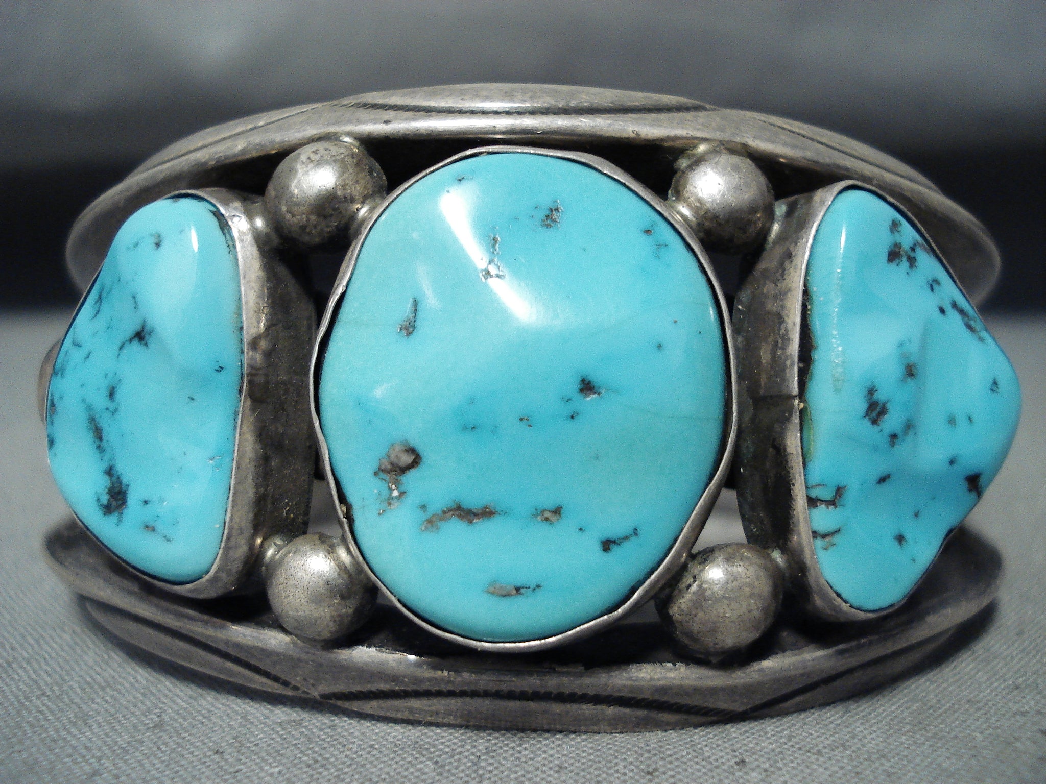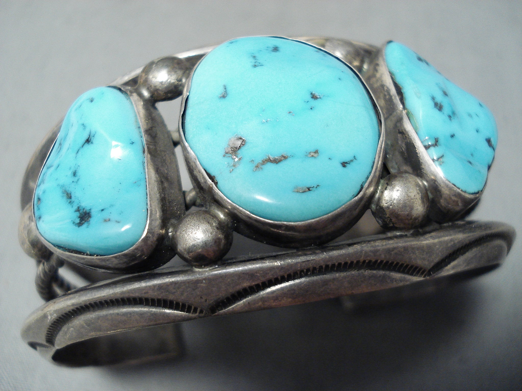 Dazzling Vintage Native American Navajo Morenci Turquoise Sterling Silver Bracelet