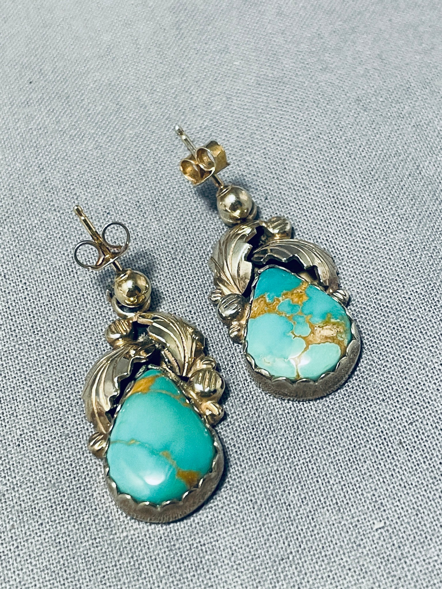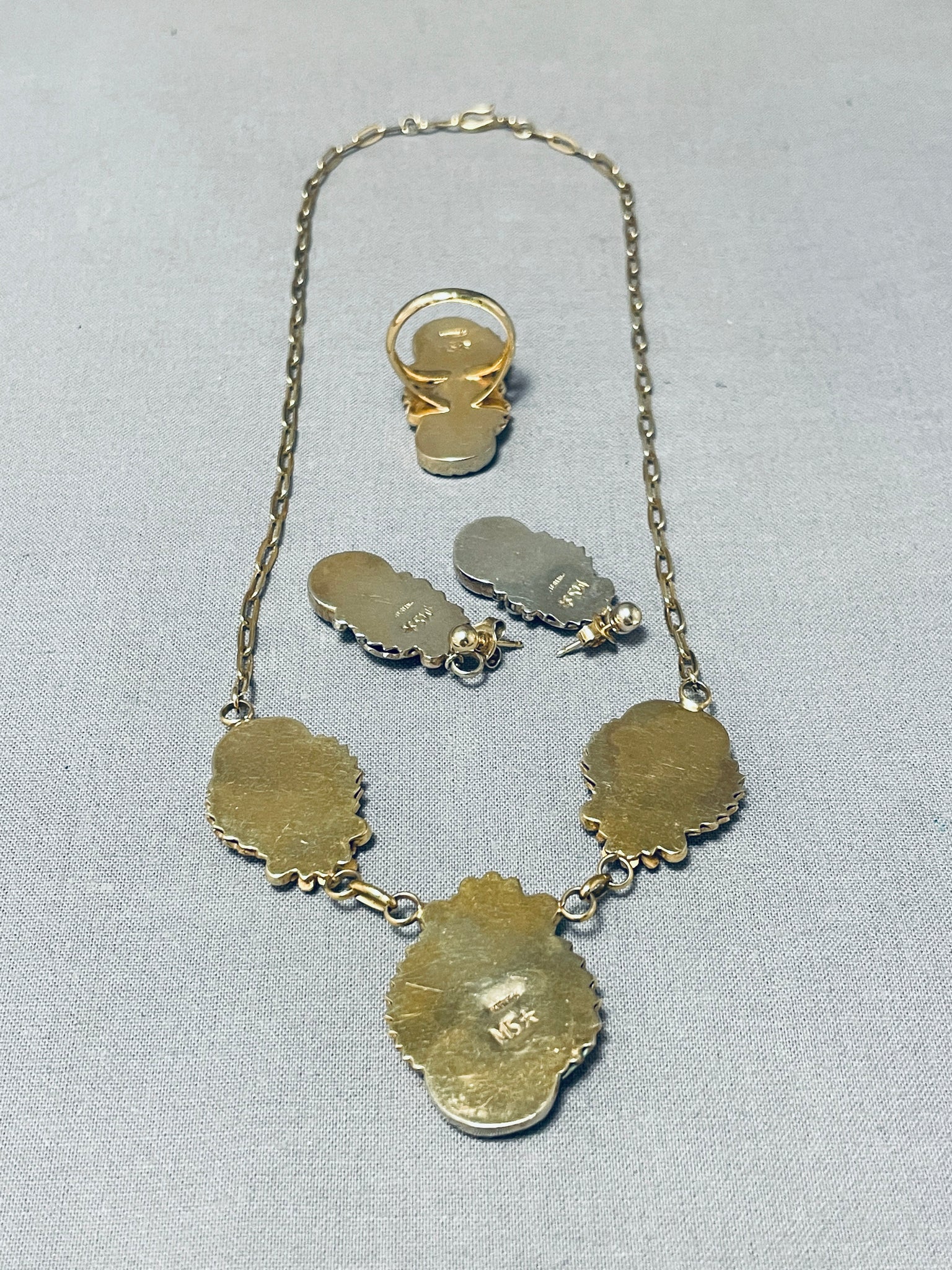 Dazzling Vintage Native American Navajo Royston Turquoise Gold Filled Necklace Ring Earring Set