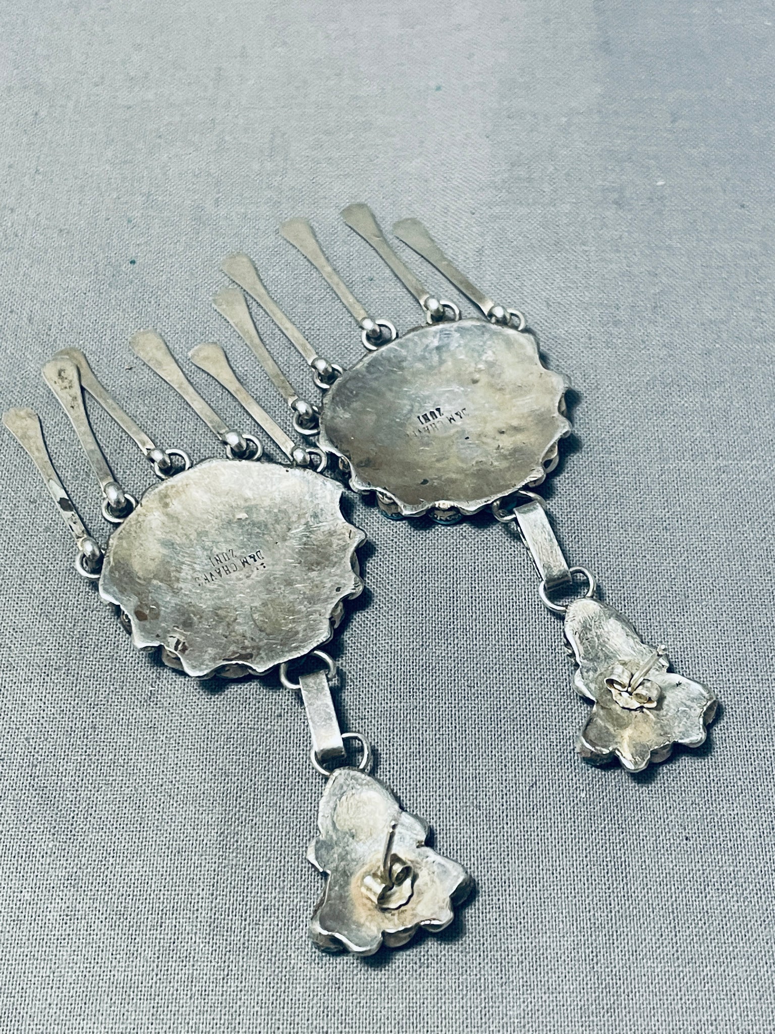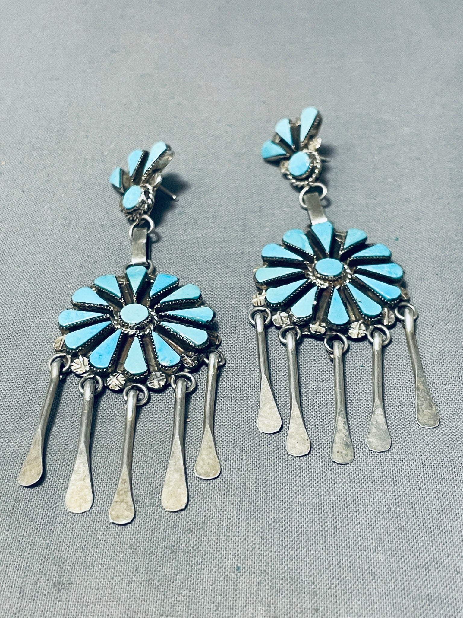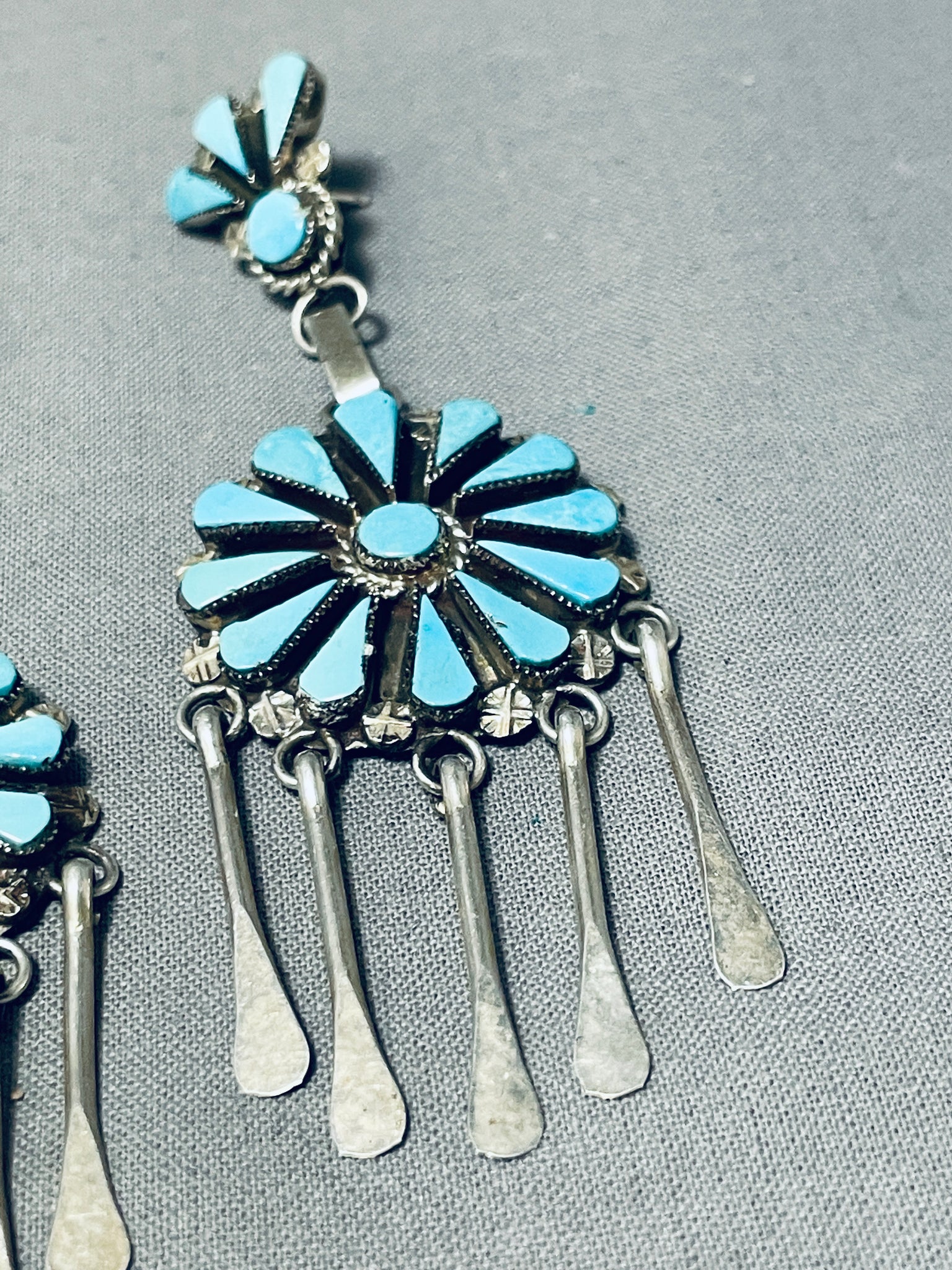 Dazzling Vintage Native American Zuni Blue Gem Turquoise Sterling Silver Dream Catcher Earrings