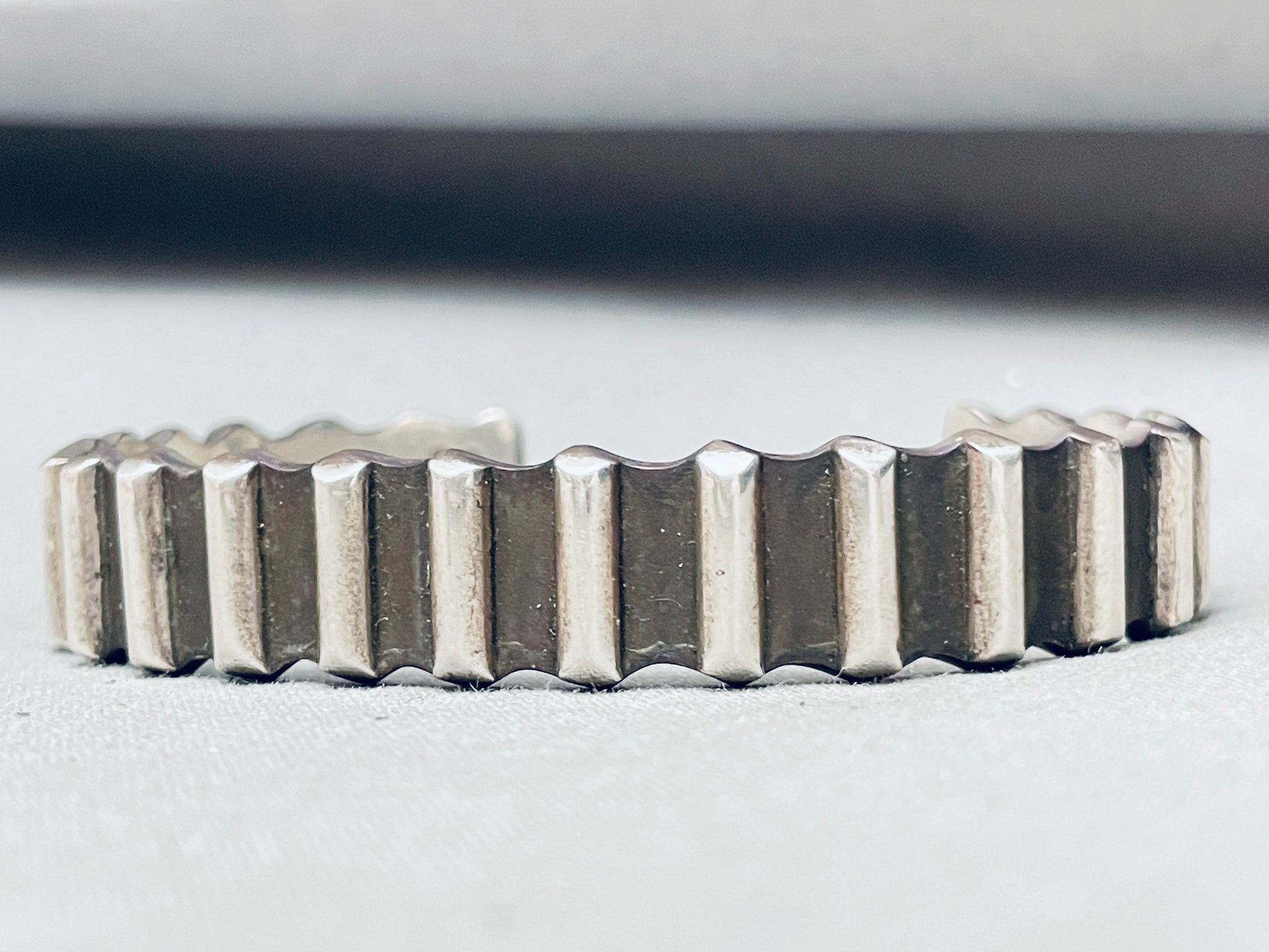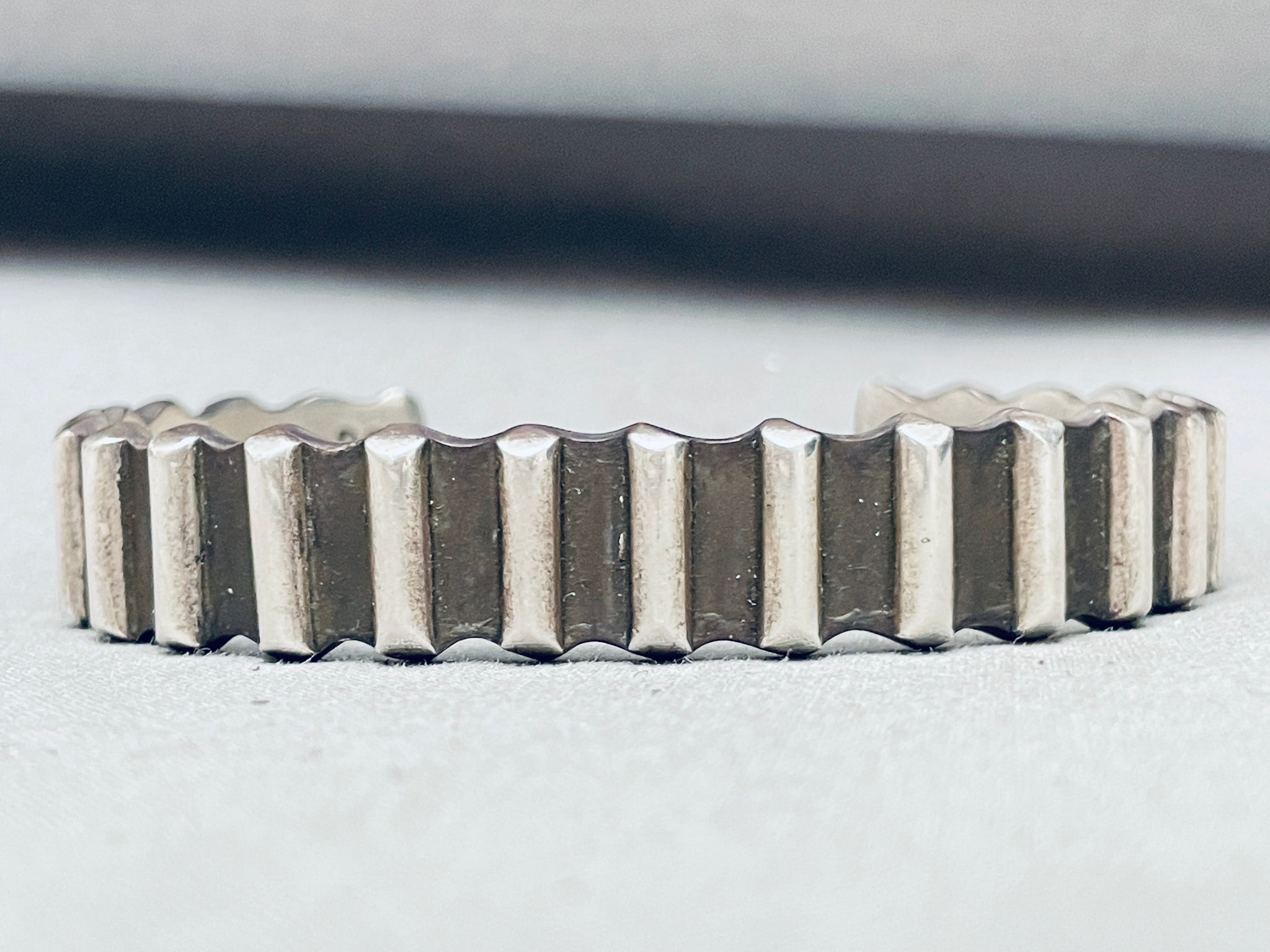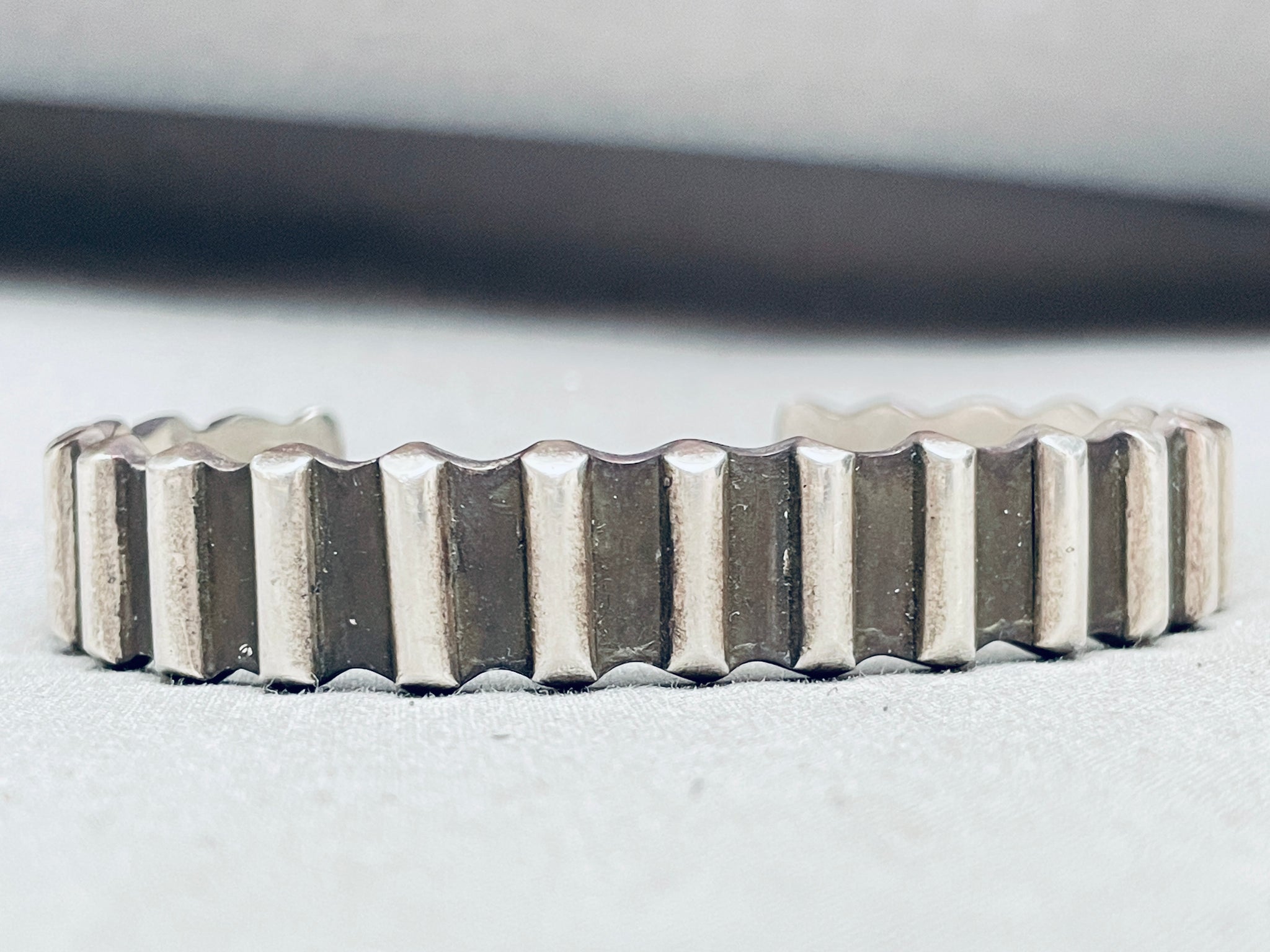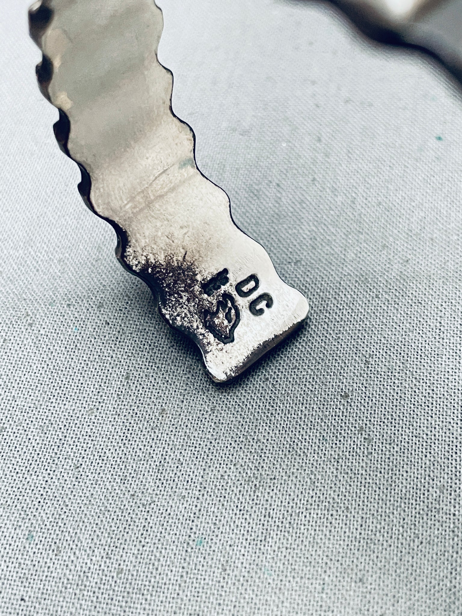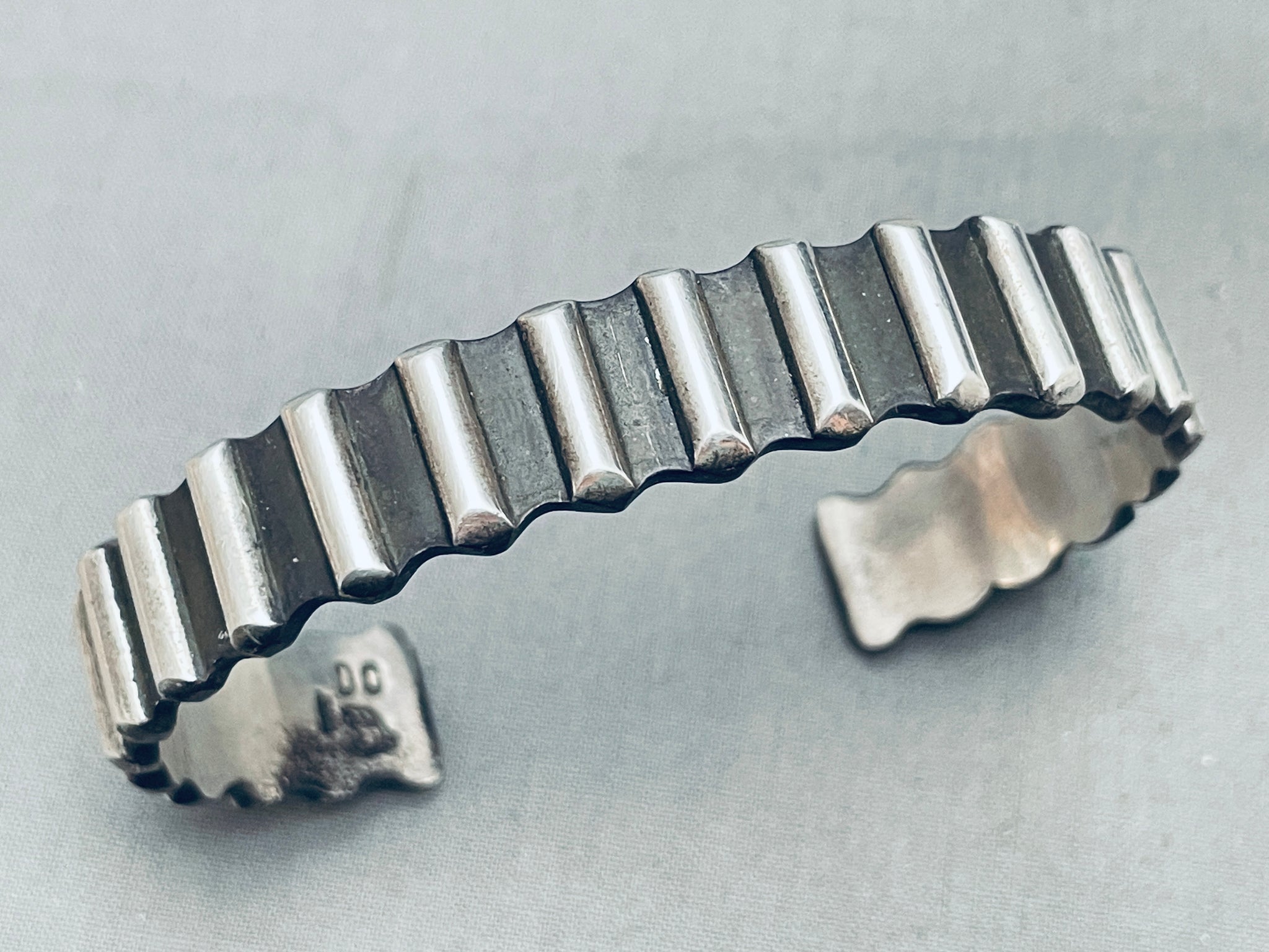 Del Chatter Vintage Native American Navajo Hand Tooled Sterling Silver Bracelet