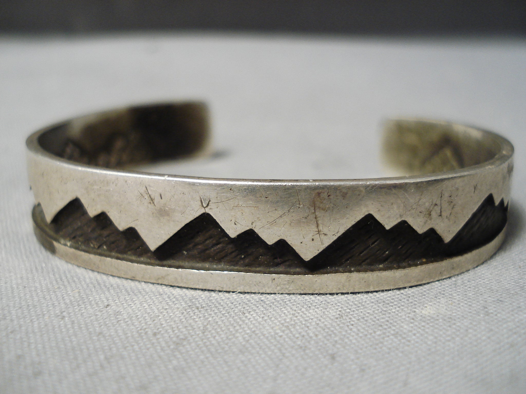 Desert Mountain Vintage Native American Navajo Sterling Silver Hand Wrought Bracelet