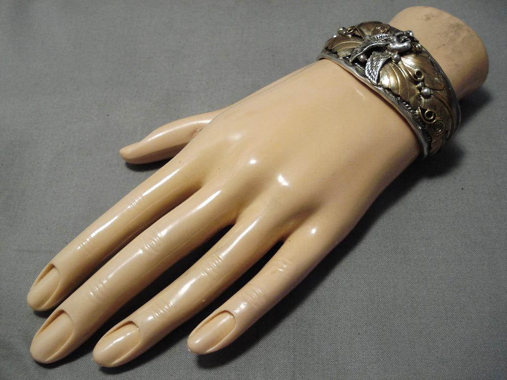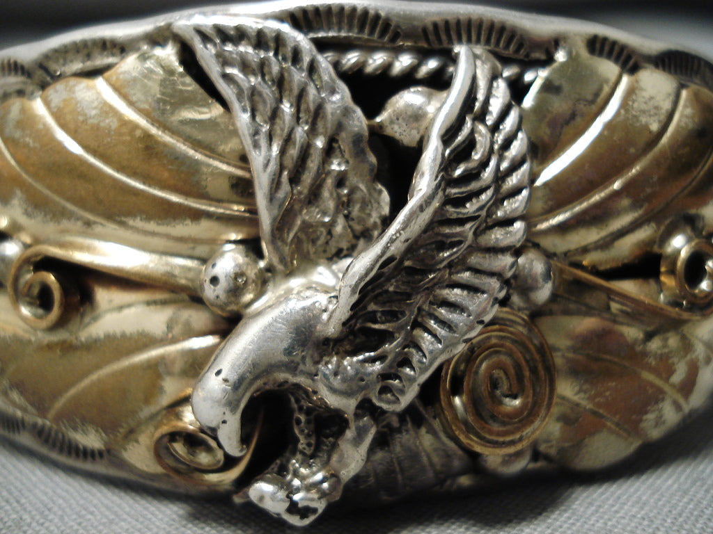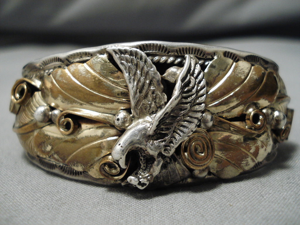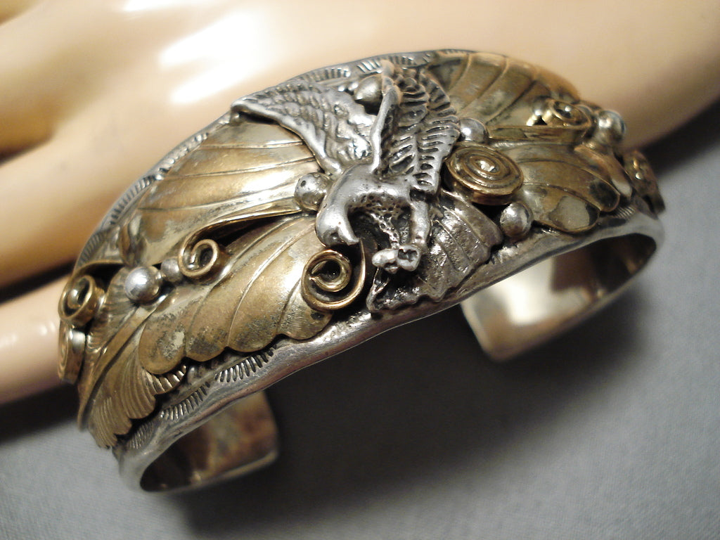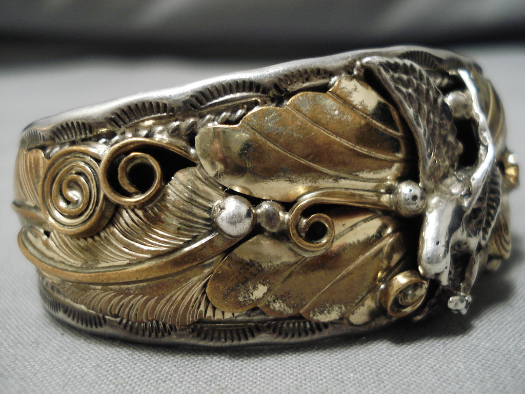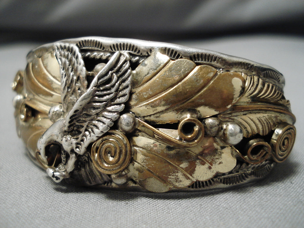Detailed And Important!! Vintage Native American Navajo Gold Sterling Silver Allen Chee Bracelet