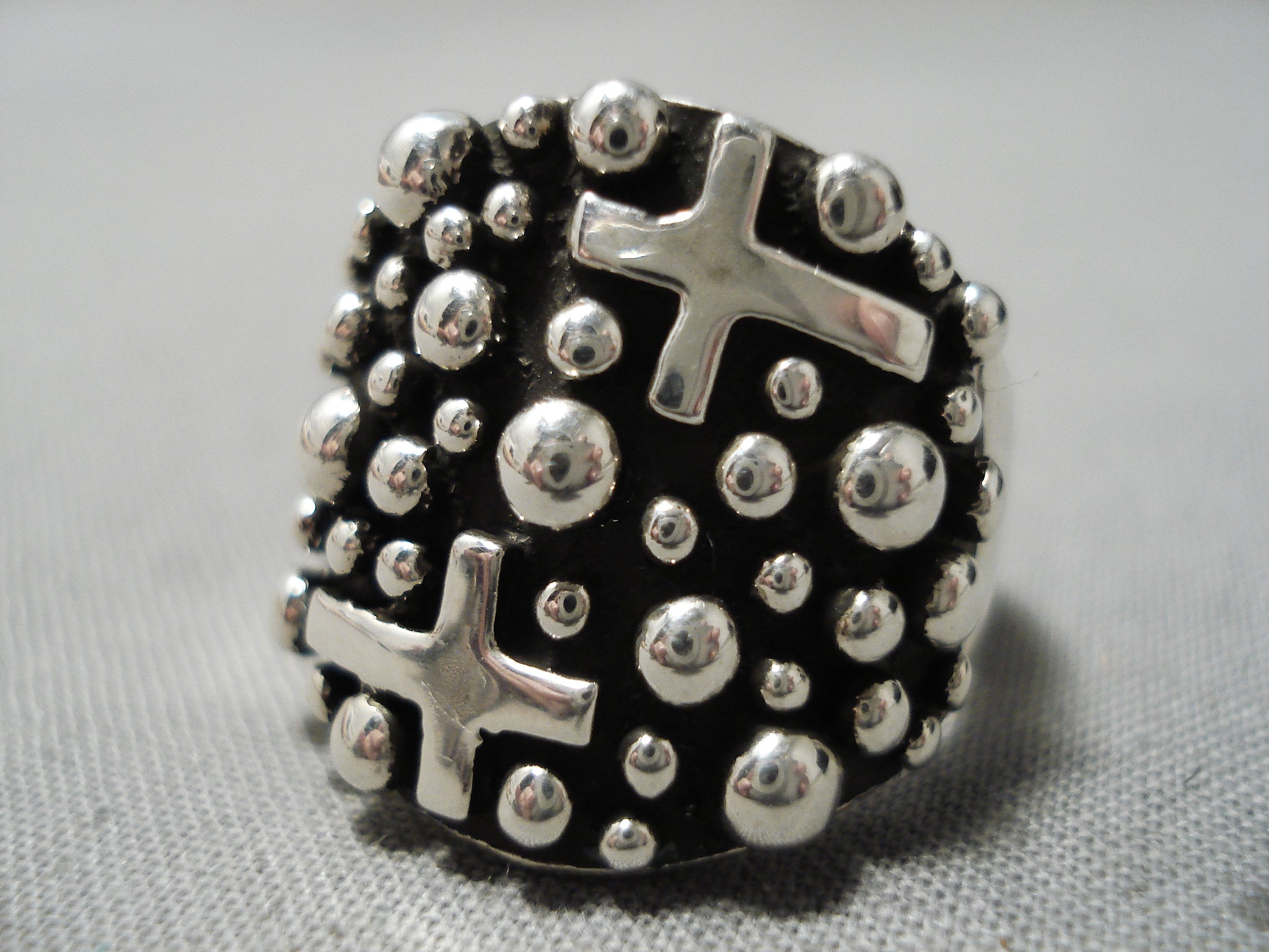 Detailed Crosses Native American Navajo Sterling Silver Christian Ring